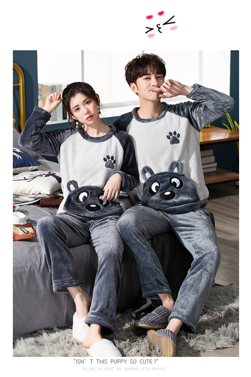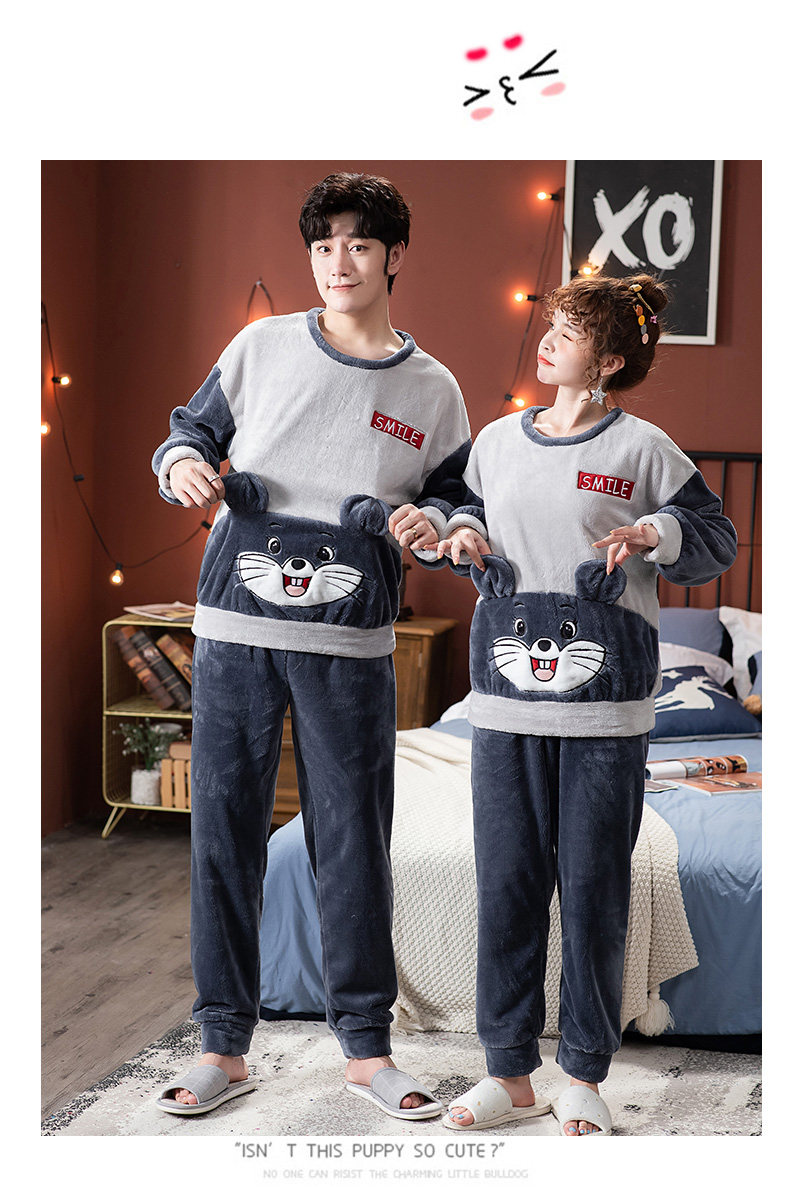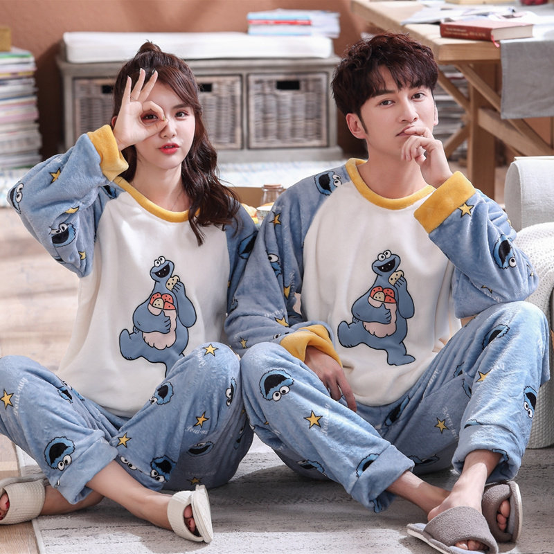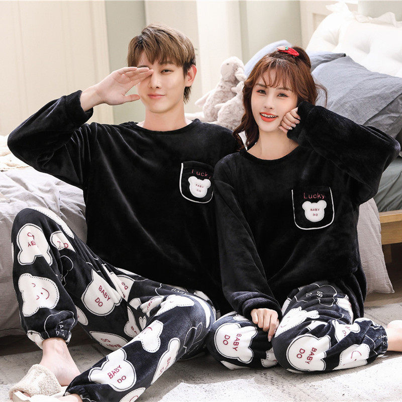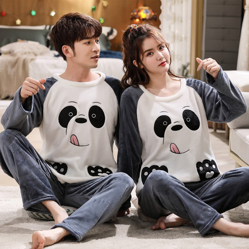 Демисезонная фланелевая милая пижама подходит для мужчин и женщин, демисезонный утепленный коралловый бархатный комплект, для влюбленных, в корейском стиле
