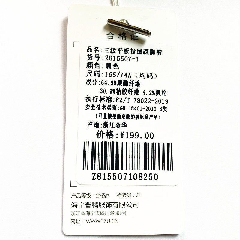 3ZU FOOLFRONT SHOW Z815507-1 Осень и зимний нагрев четвертого уровня 450 грамм плюс брюки с брюками Z832502-1