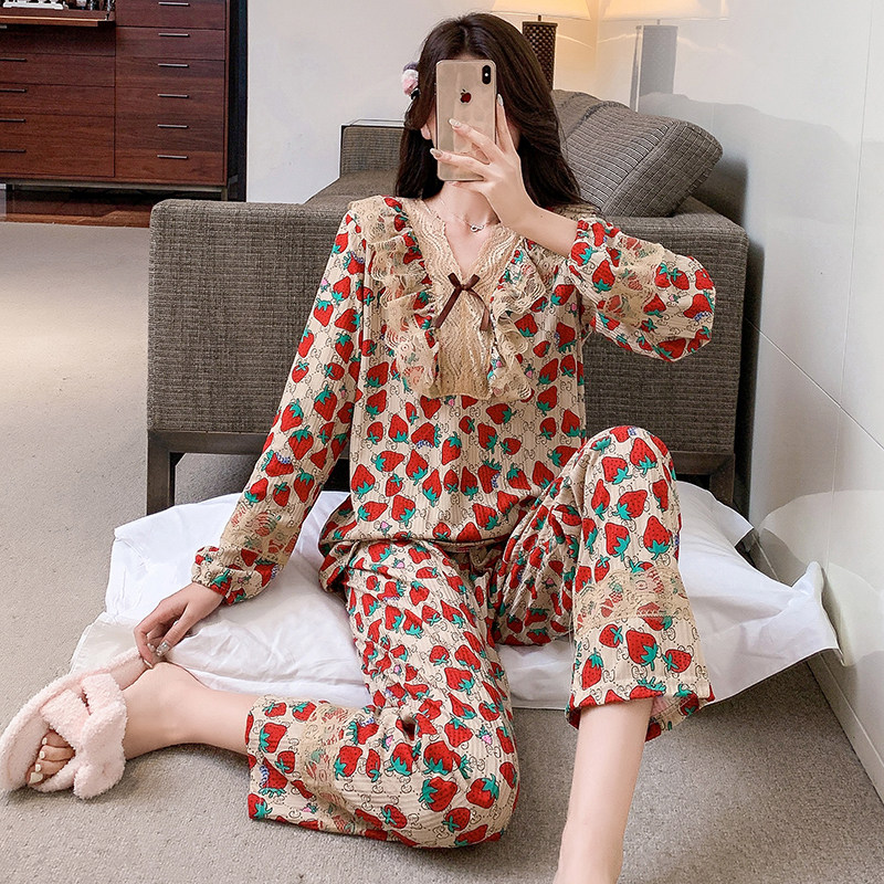 Осенняя пижама, хлопковый милый лонгслив, осенний демисезонный комплект, популярно в интернете, 2021 года