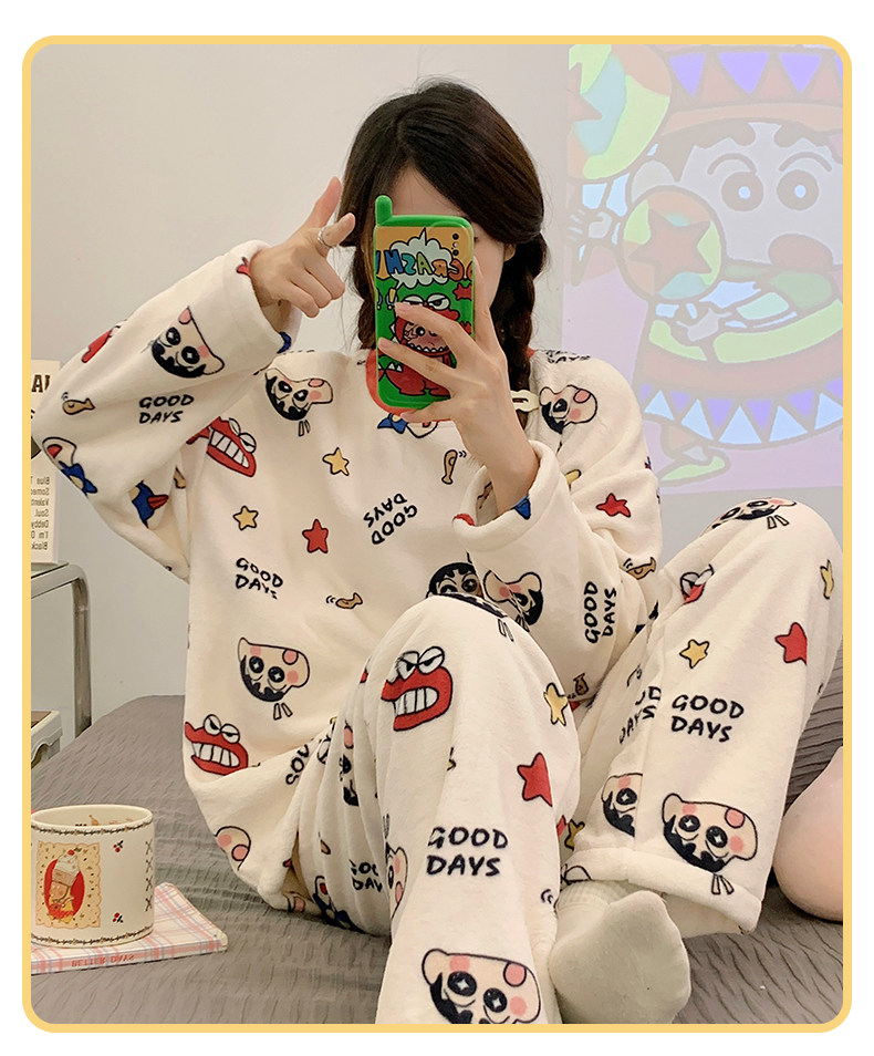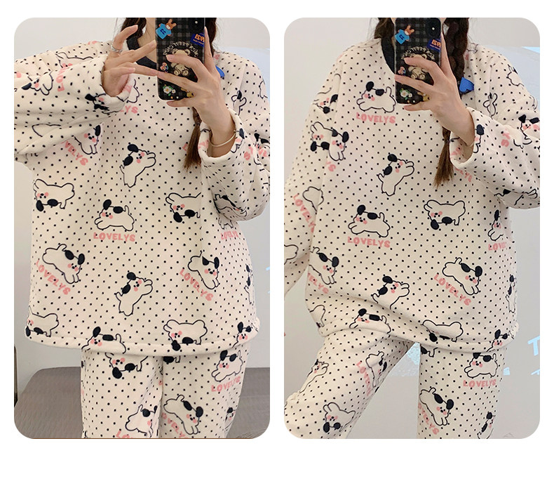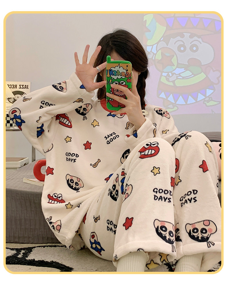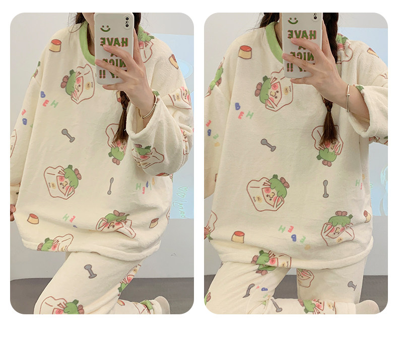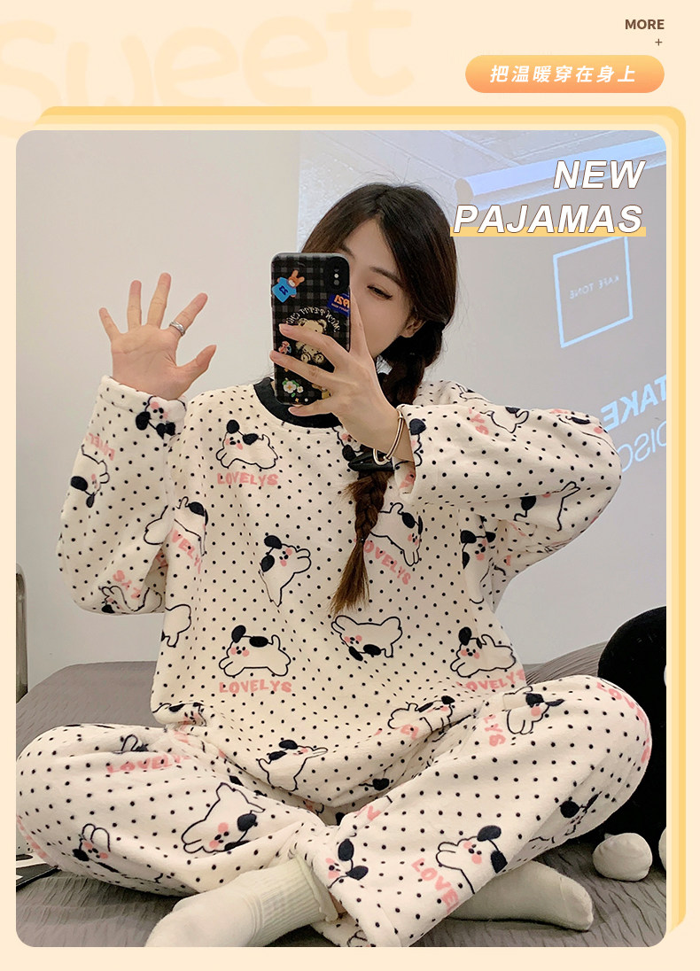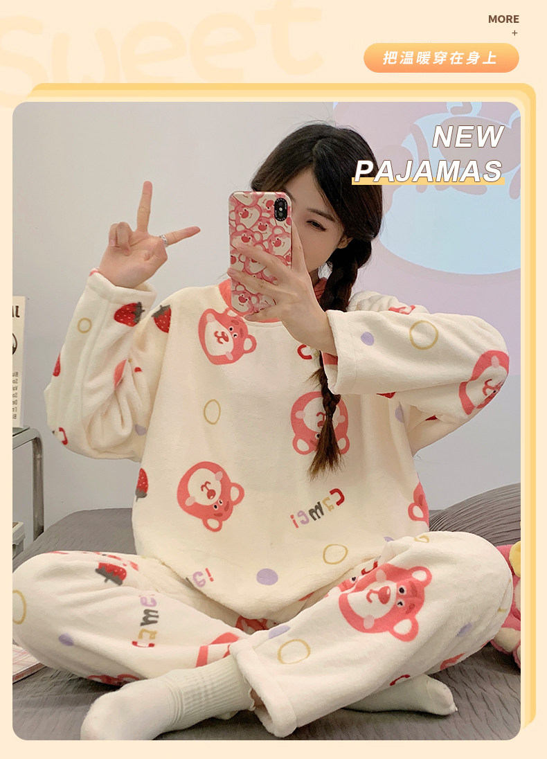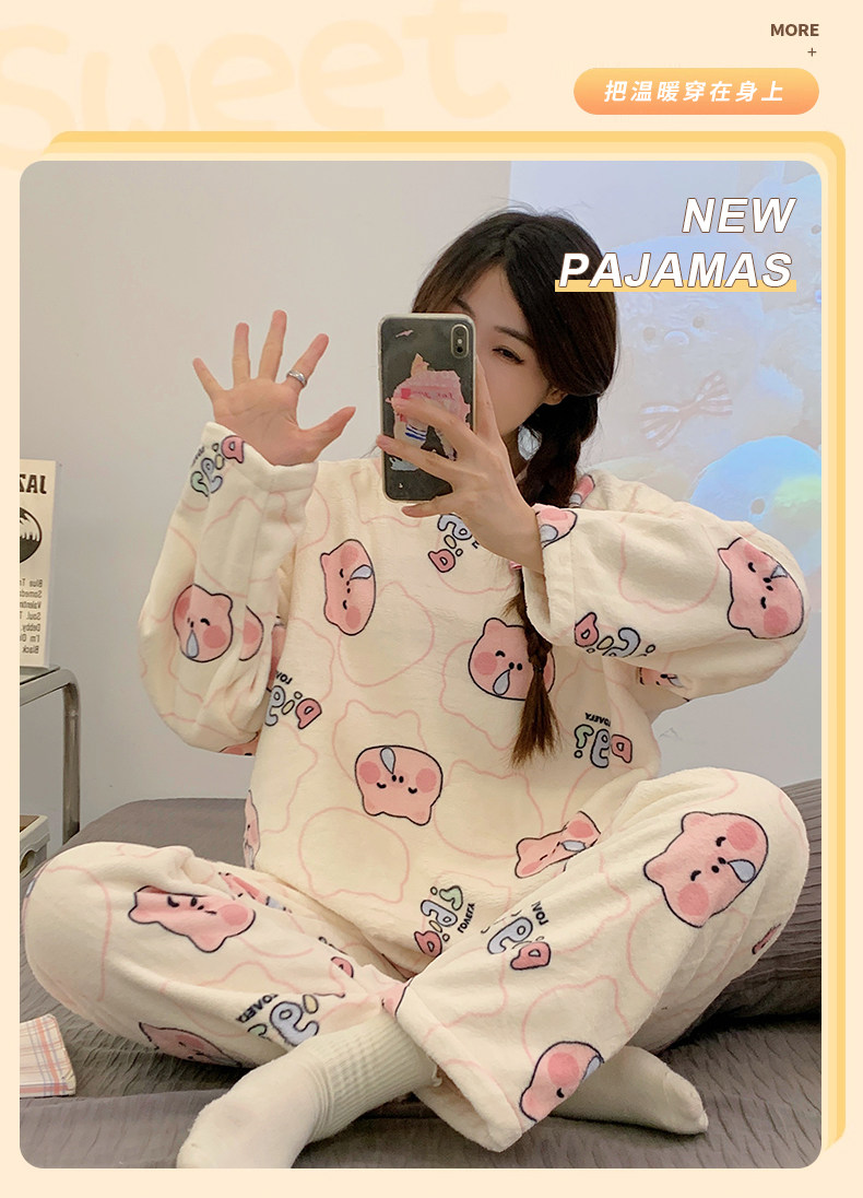 Зимняя коралловая бархатная пижама, милый демисезонный утепленный лонгслив, фланелевый комплект, свободный крой