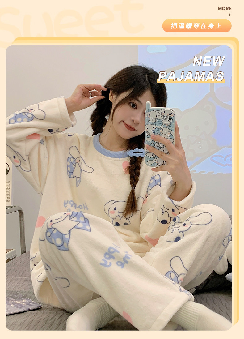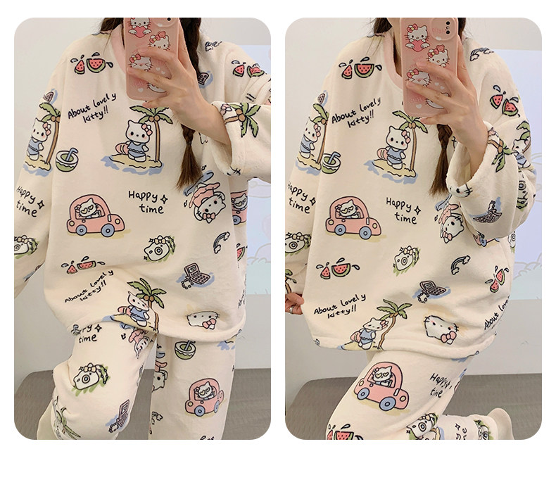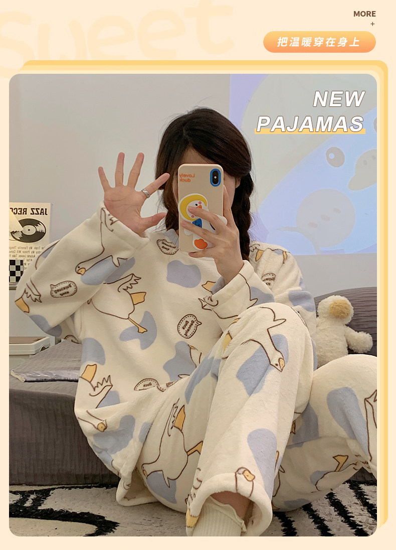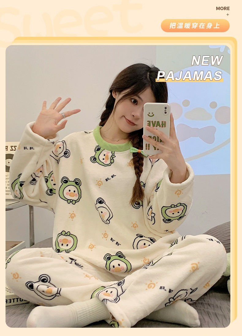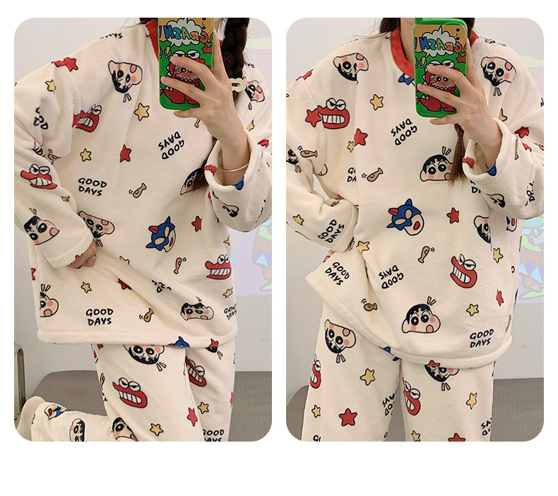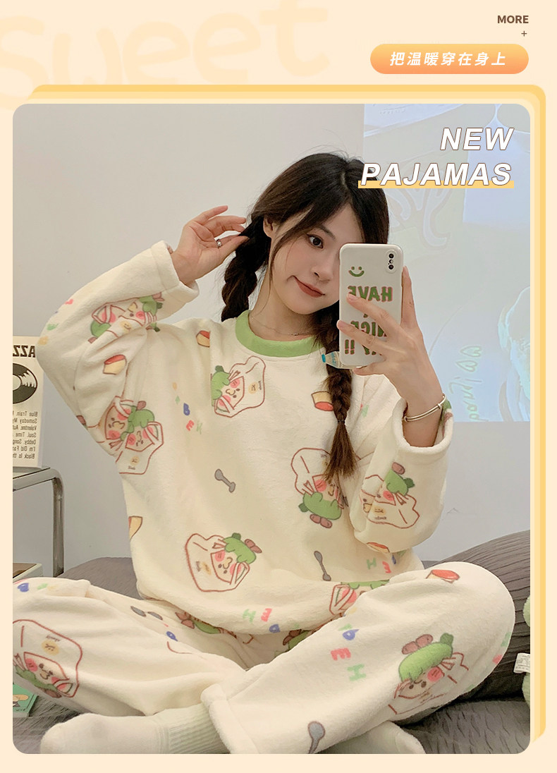 Зимняя коралловая бархатная пижама, милый демисезонный утепленный лонгслив, фланелевый комплект, свободный крой