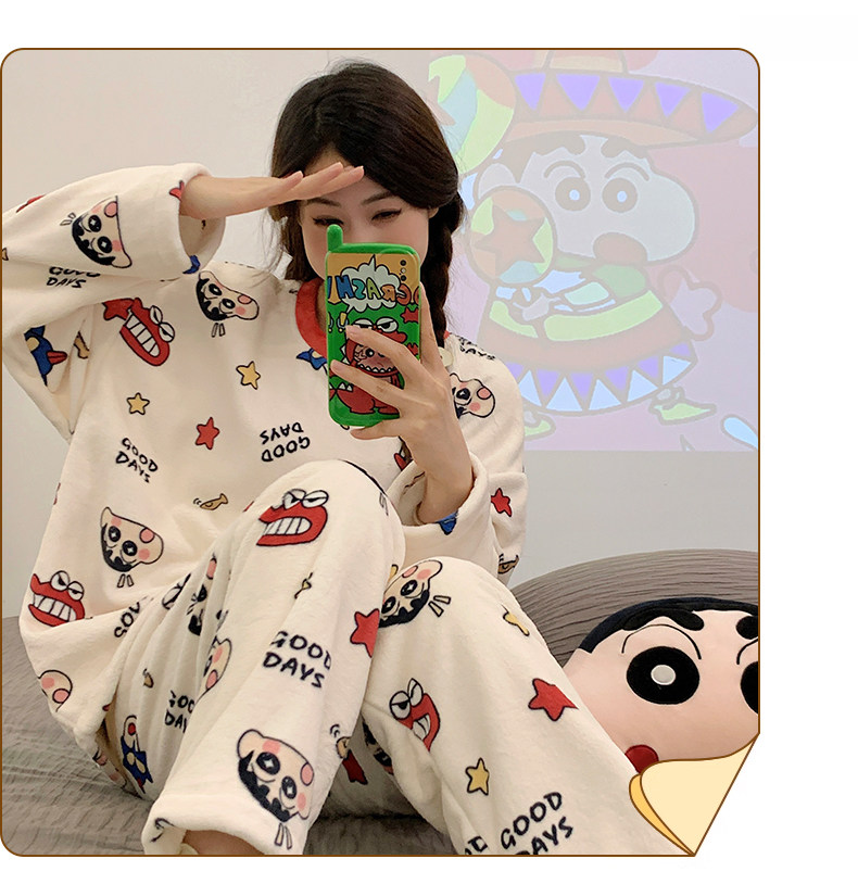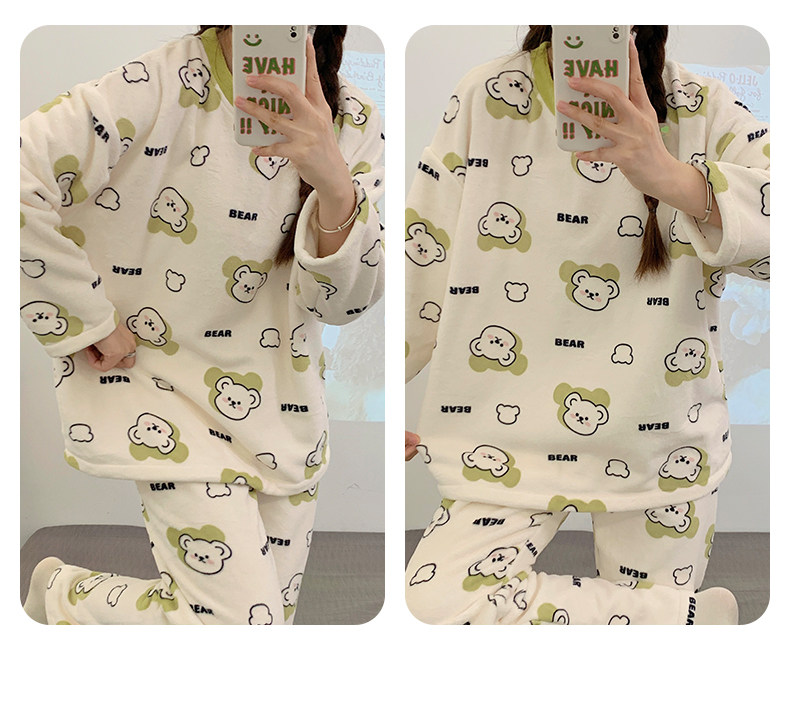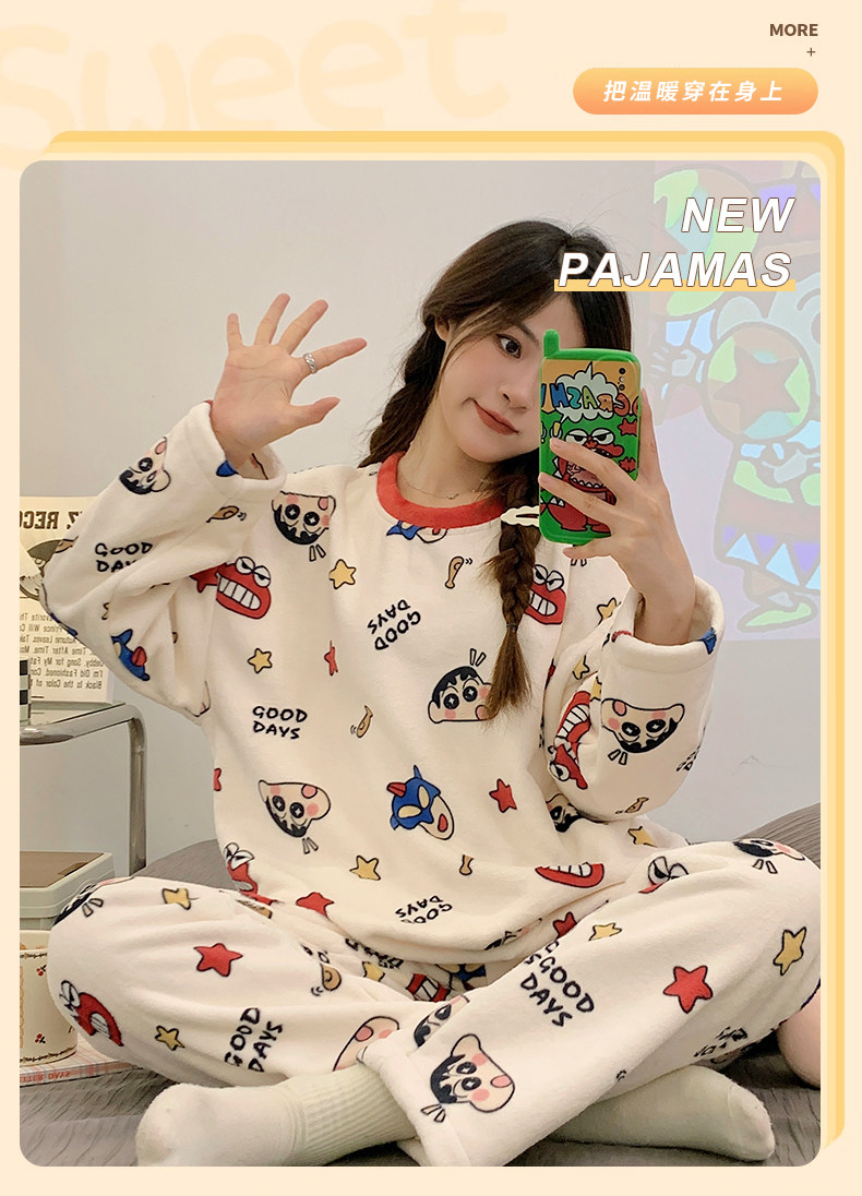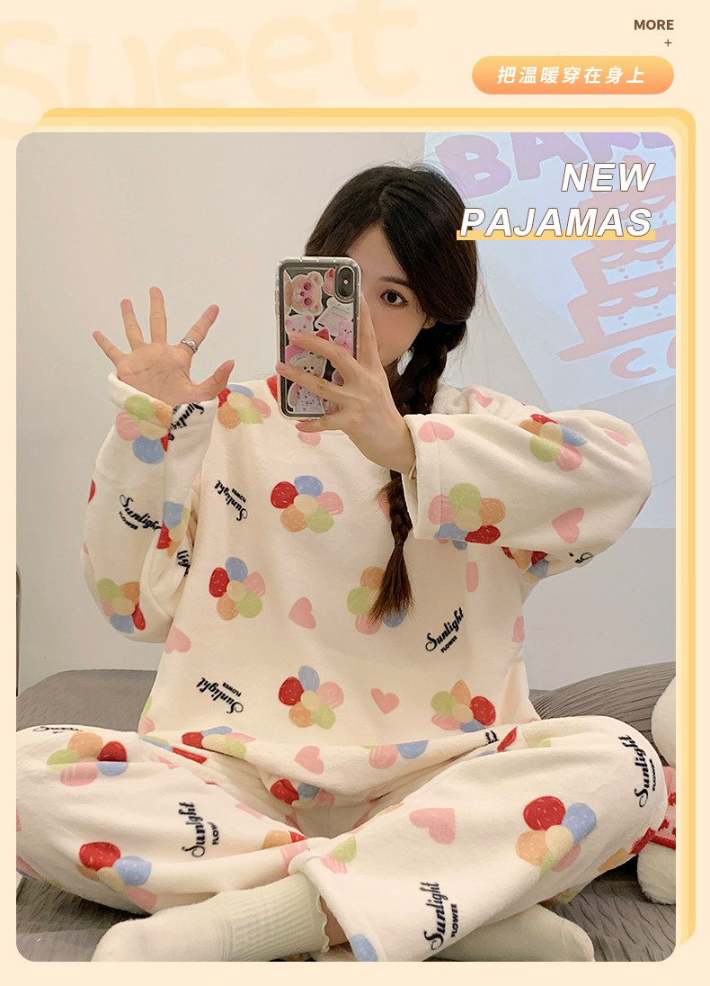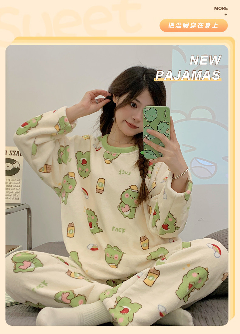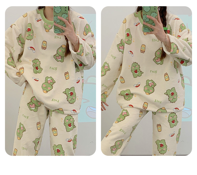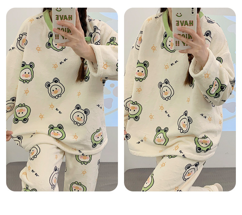 Зимняя коралловая бархатная пижама, милый демисезонный утепленный лонгслив, фланелевый комплект, свободный крой