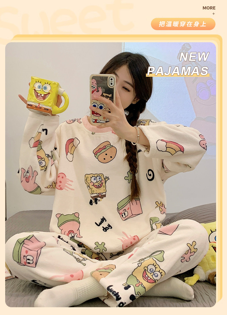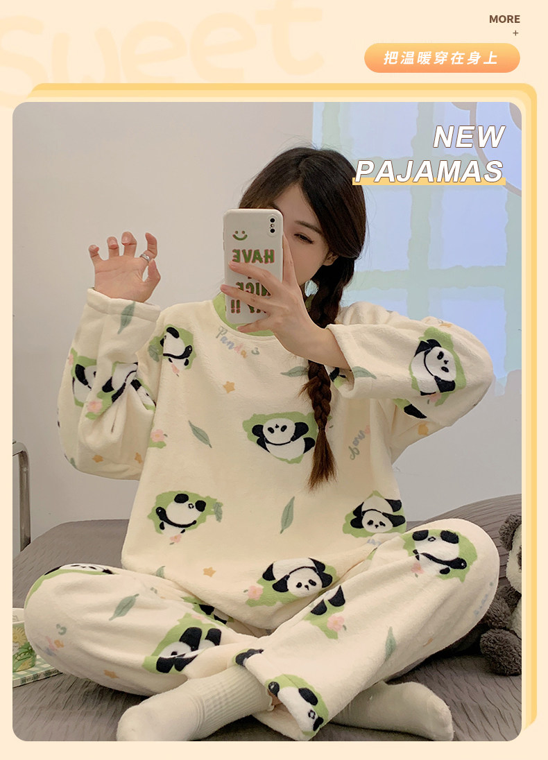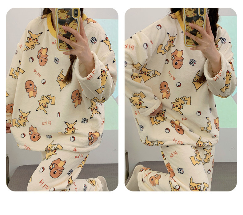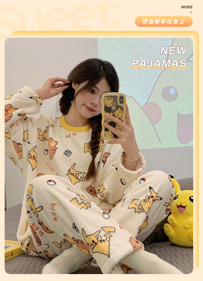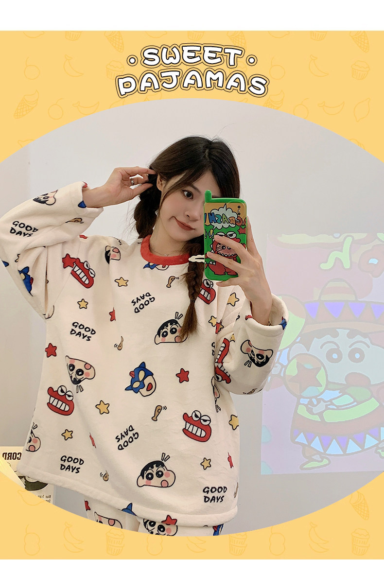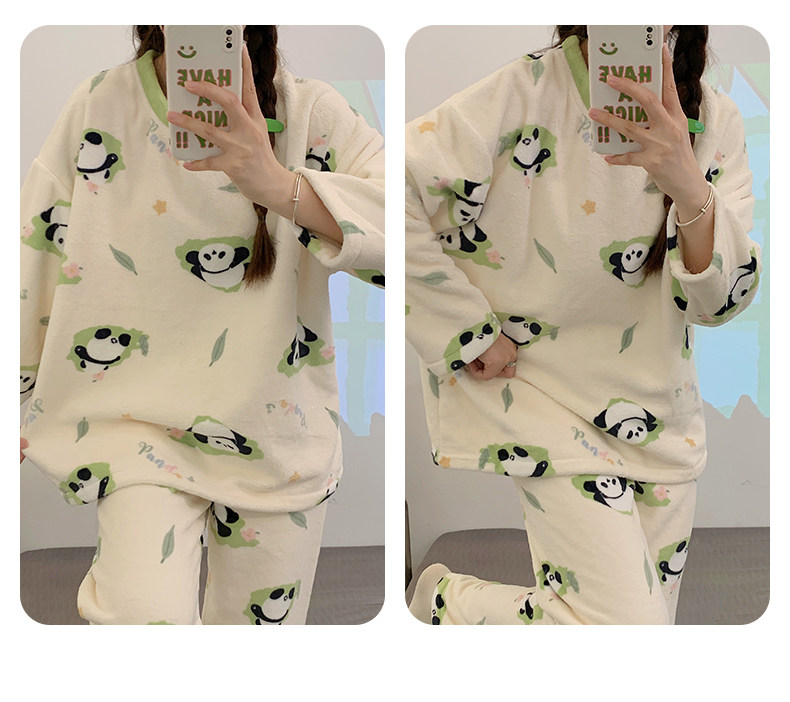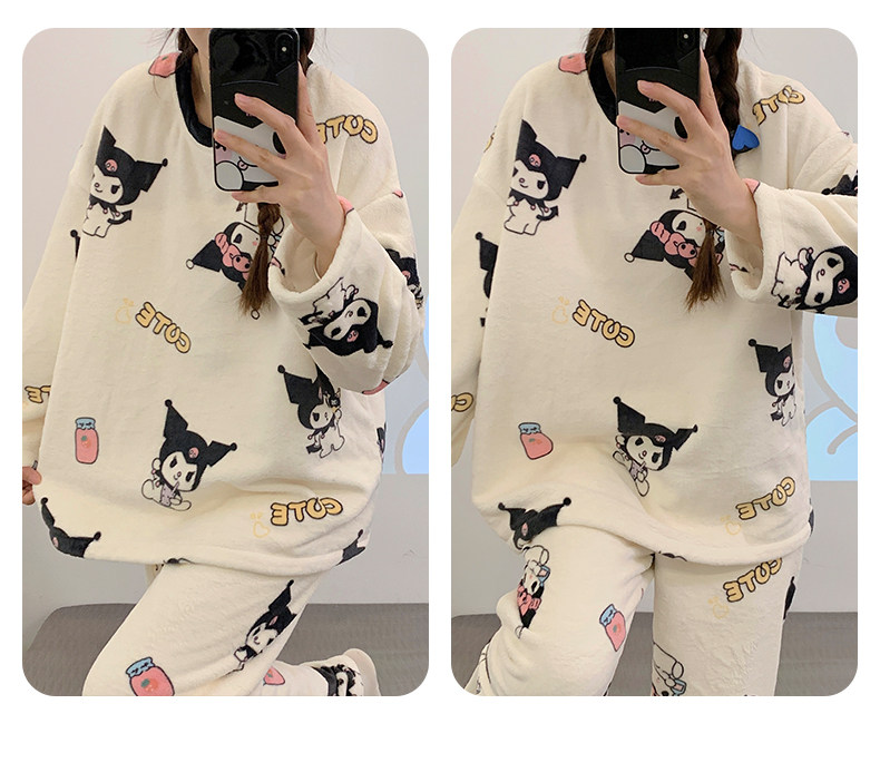Зимняя коралловая бархатная пижама, милый демисезонный утепленный лонгслив, фланелевый комплект, свободный крой