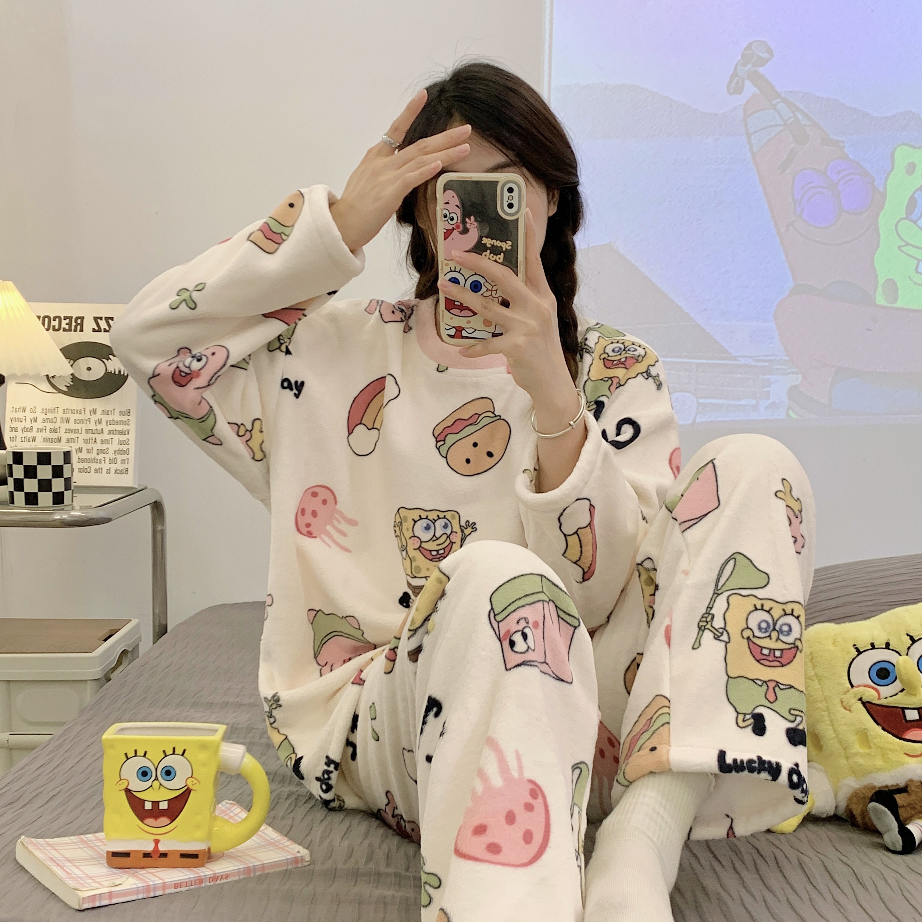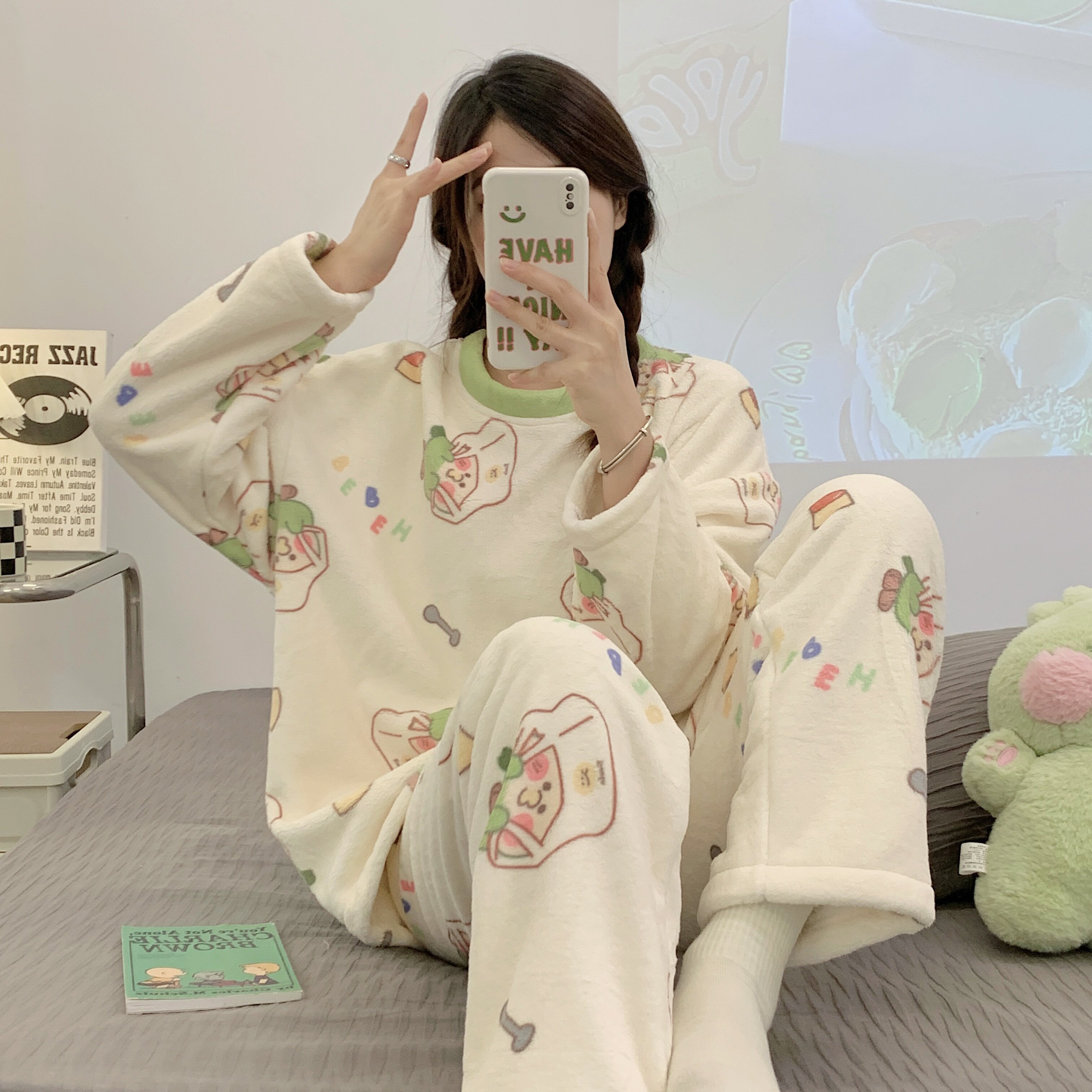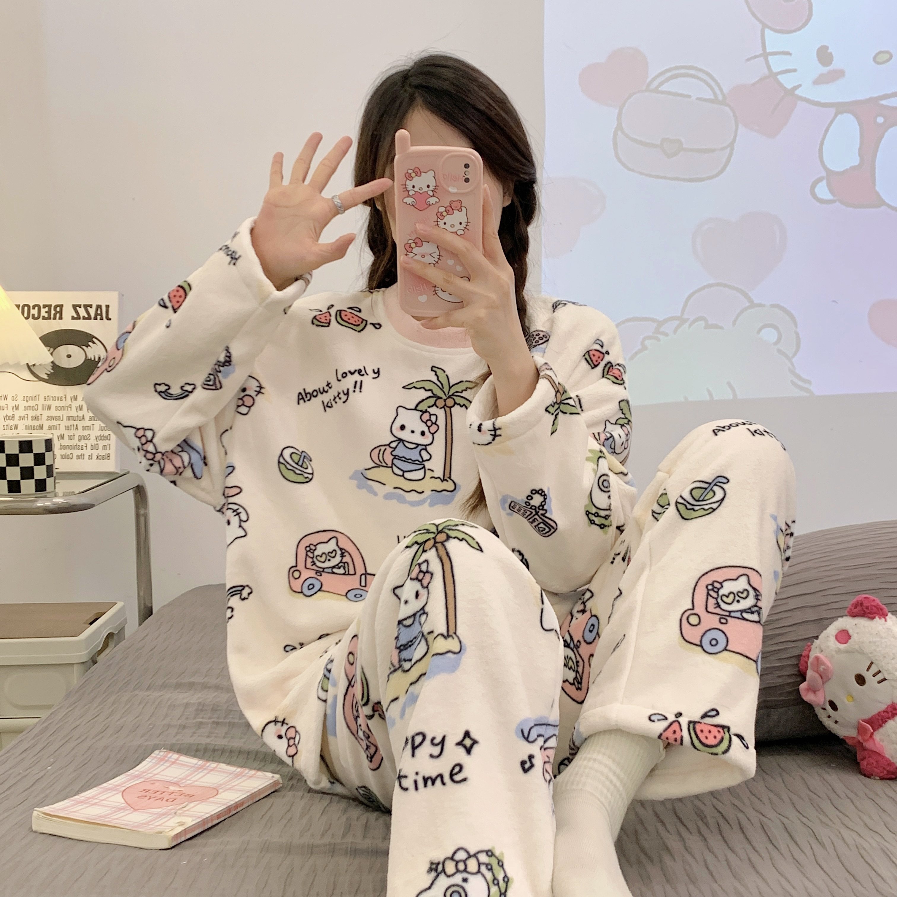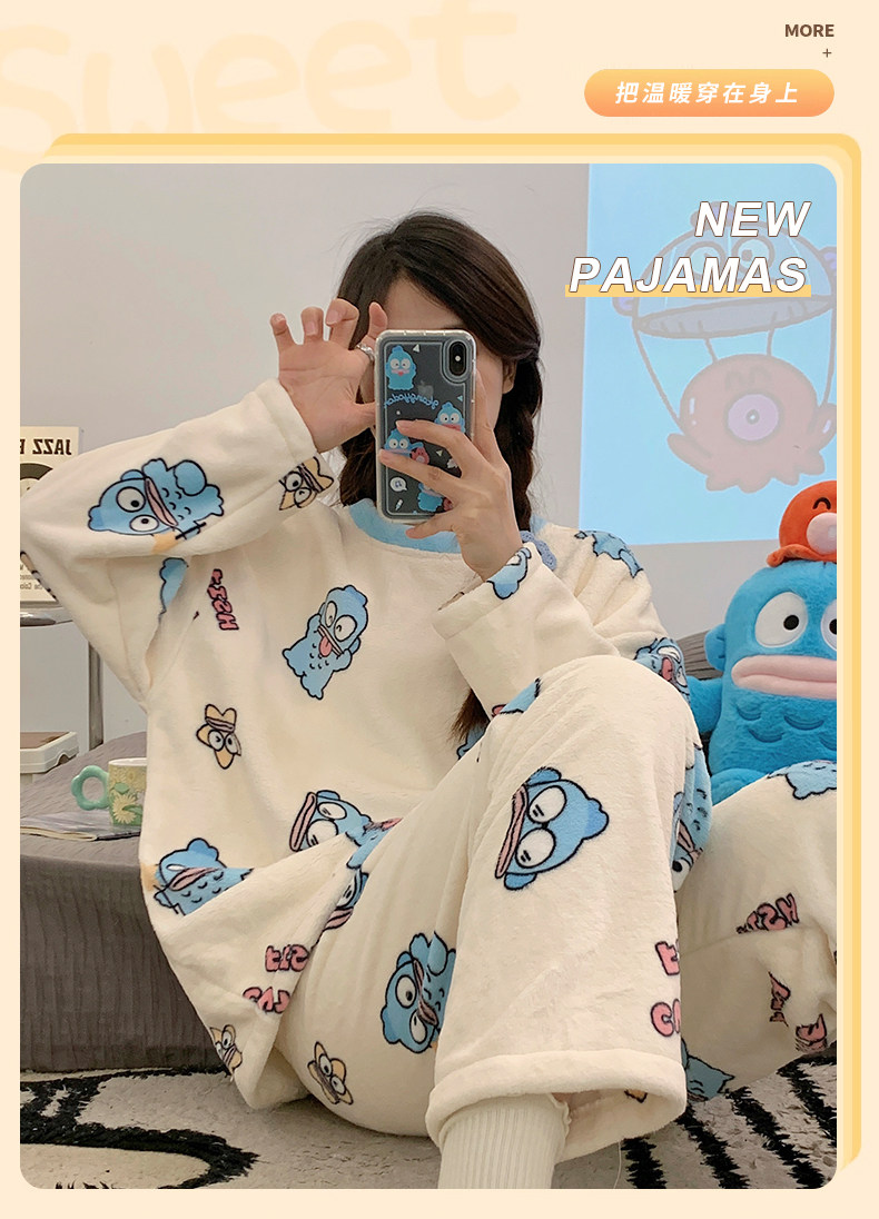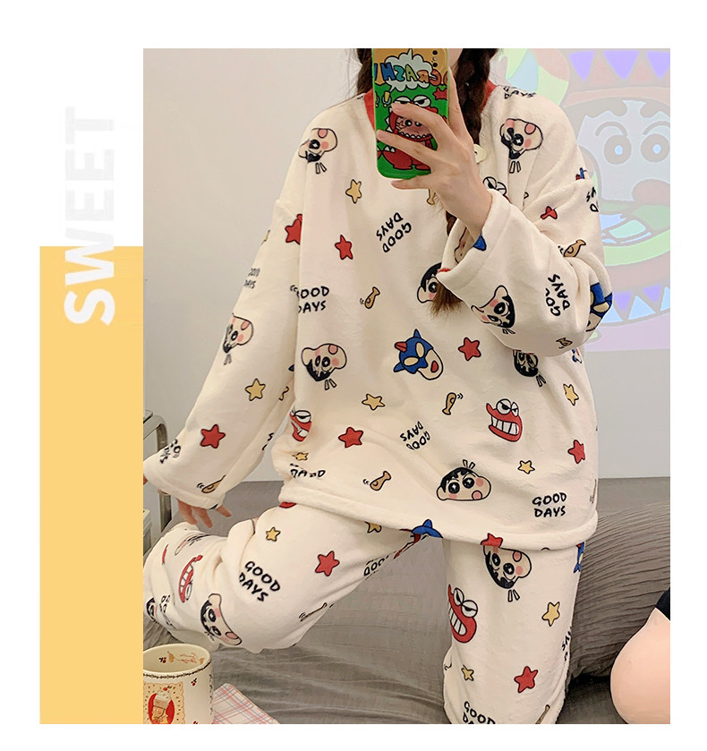 Зимняя коралловая бархатная пижама, милый демисезонный утепленный лонгслив, фланелевый комплект, свободный крой