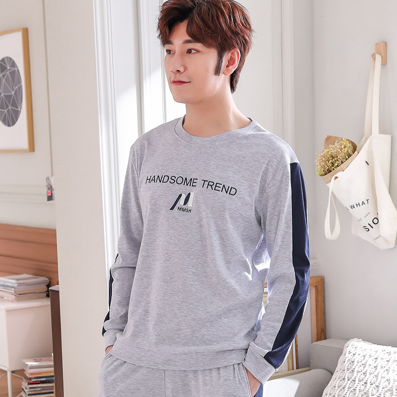 Мужская пижама, демисезонный хлопковый спортивный лонгслив для отдыха, большой размер