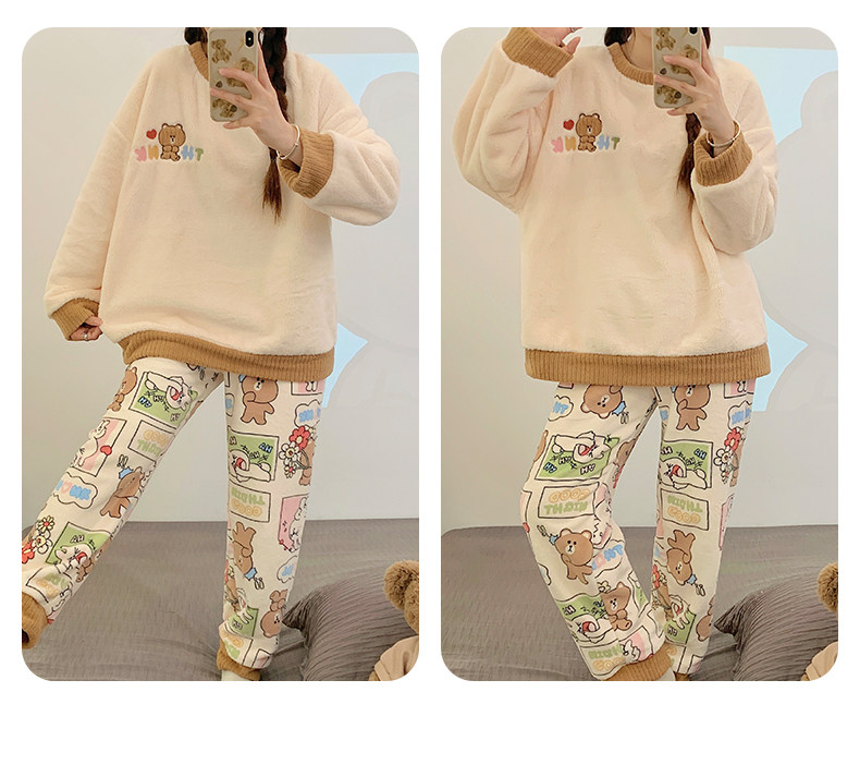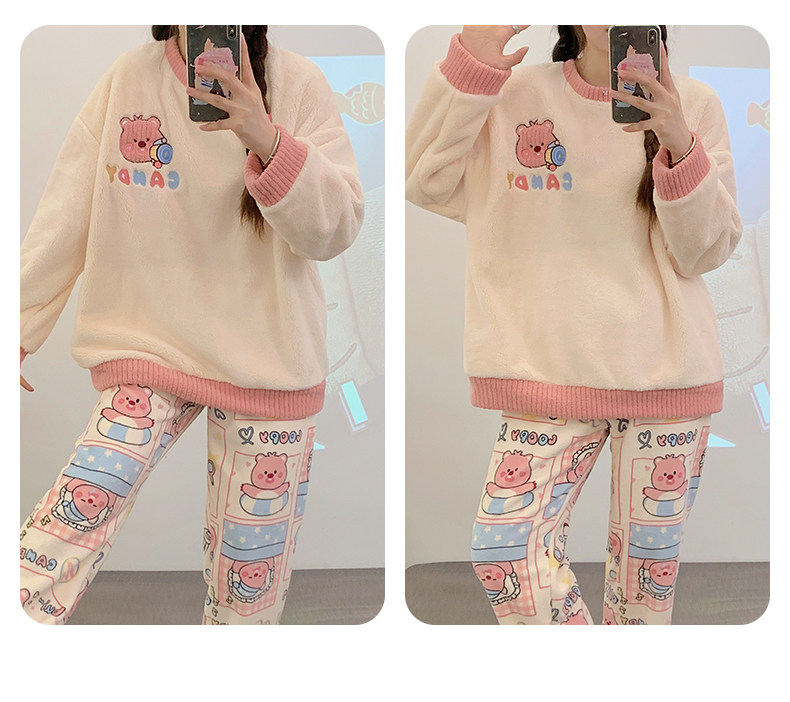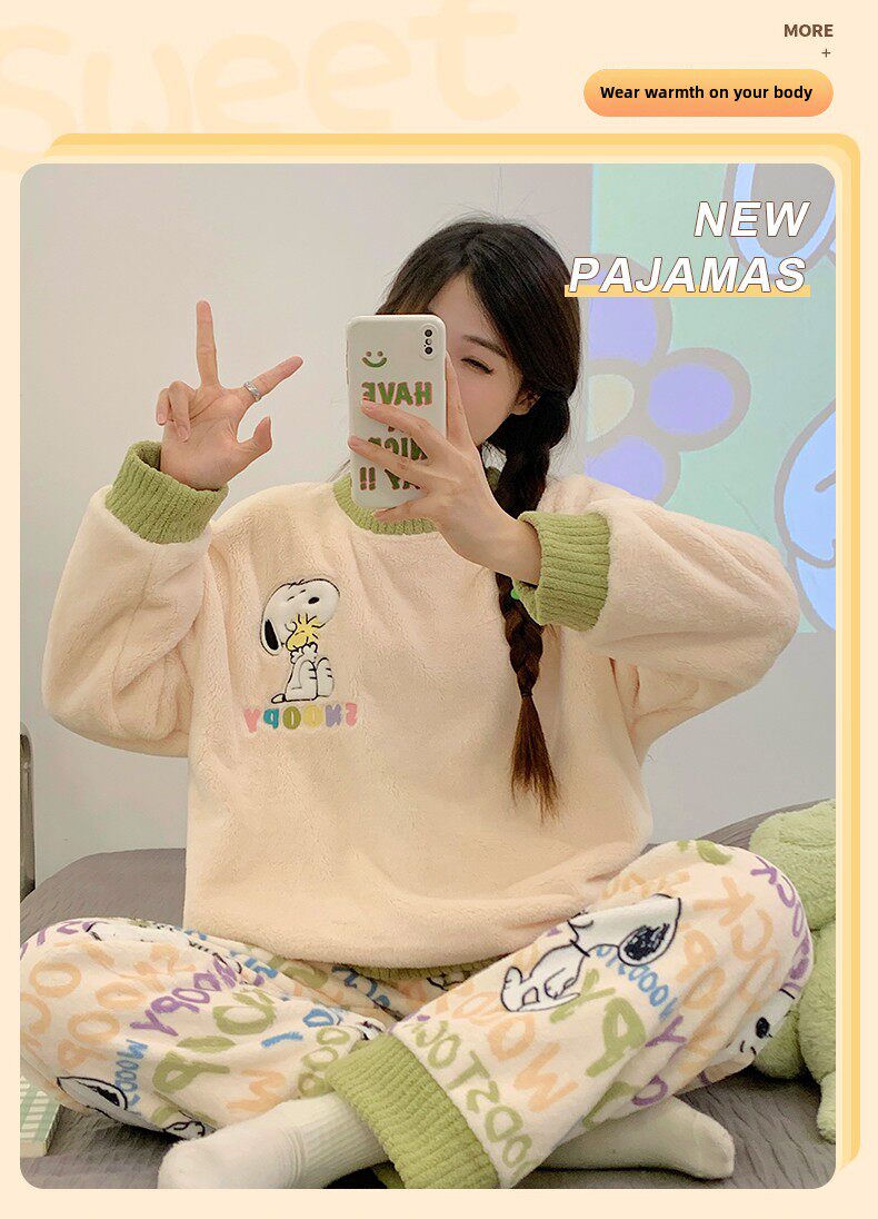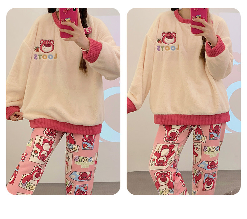 Демисезонная коралловая бархатная мультяшная зимняя пижама, фланелевый комплект, увеличенная толщина