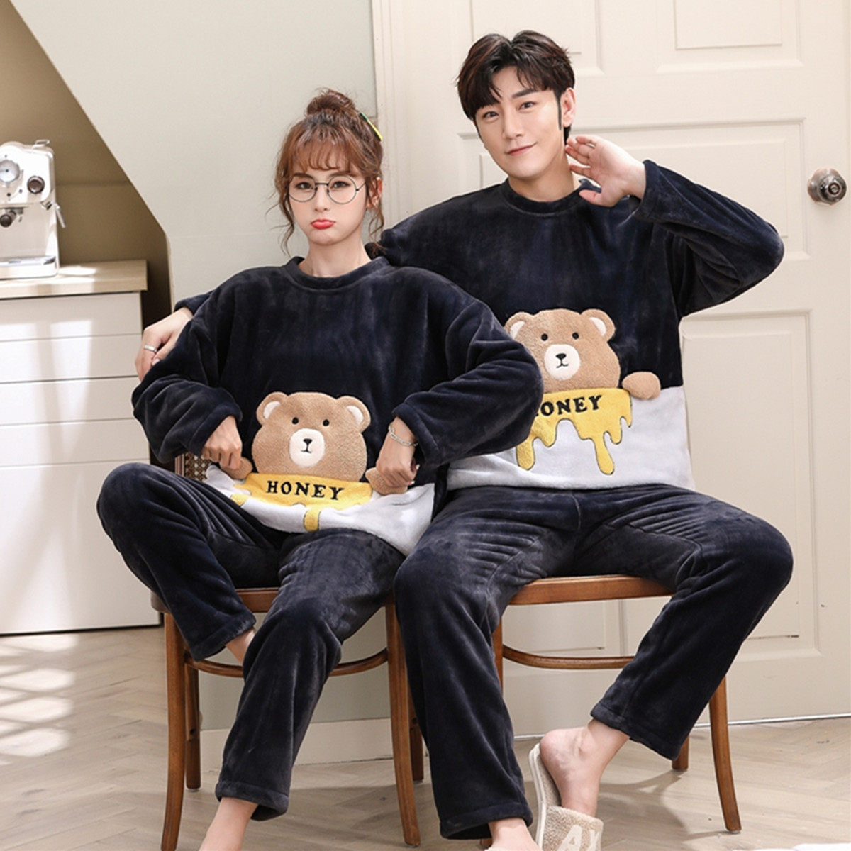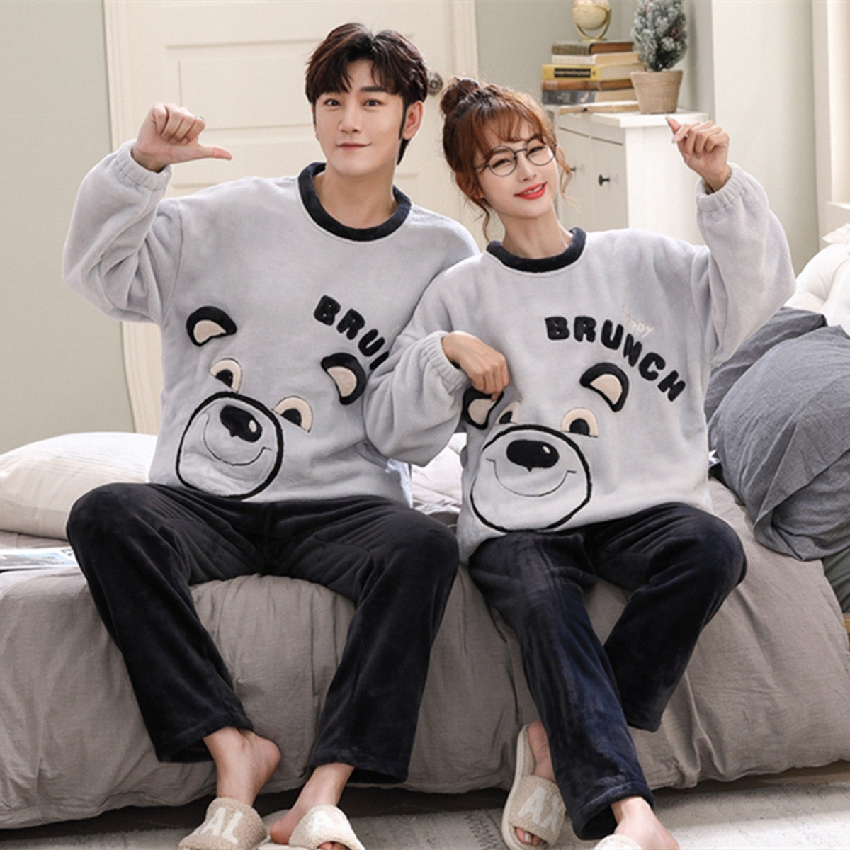 Фланелевая пижама, мужской демисезонный удерживающий тепло лонгслив, фланелевый комплект, для влюбленных, увеличенная толщина