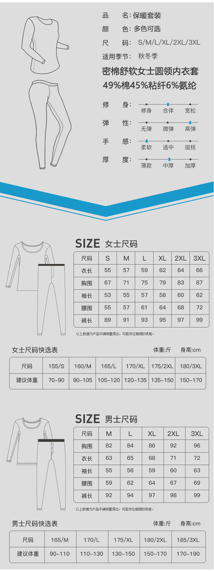 Термобелье, хлопковые штаны, комплект, хлопковый базовый свитер, удерживающее тепло нижнее белье, облегающий крой