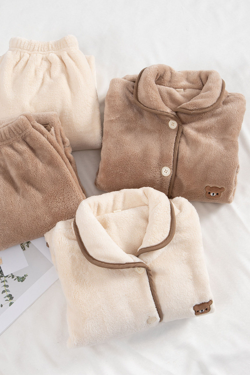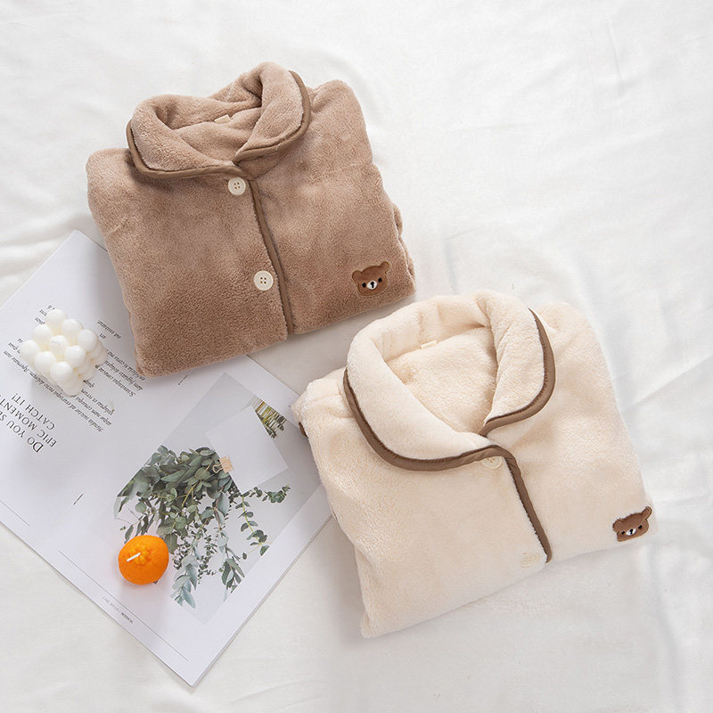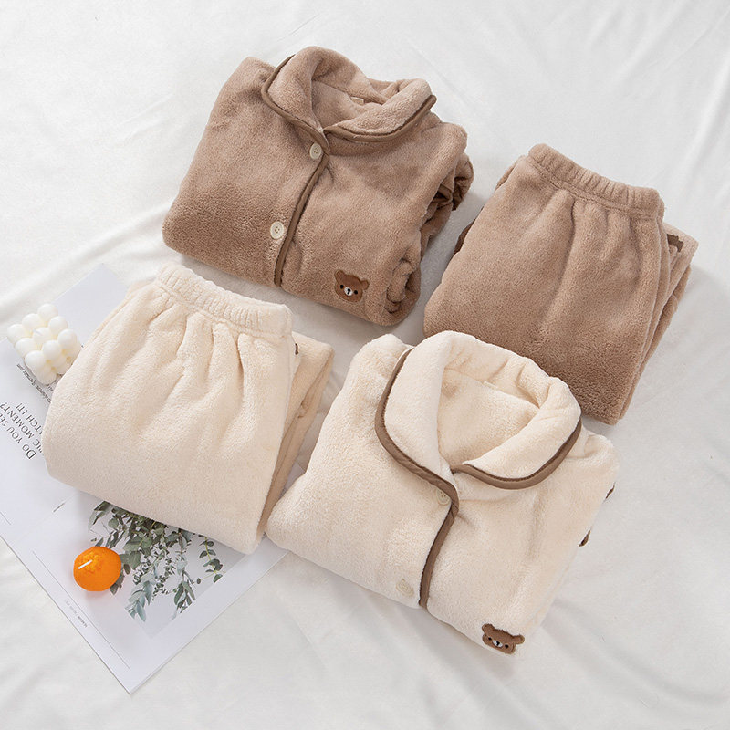 Фланелевая зимняя пижама для влюбленных, коралловый бархатный лонгслив, комплект, с медвежатами, увеличенная толщина