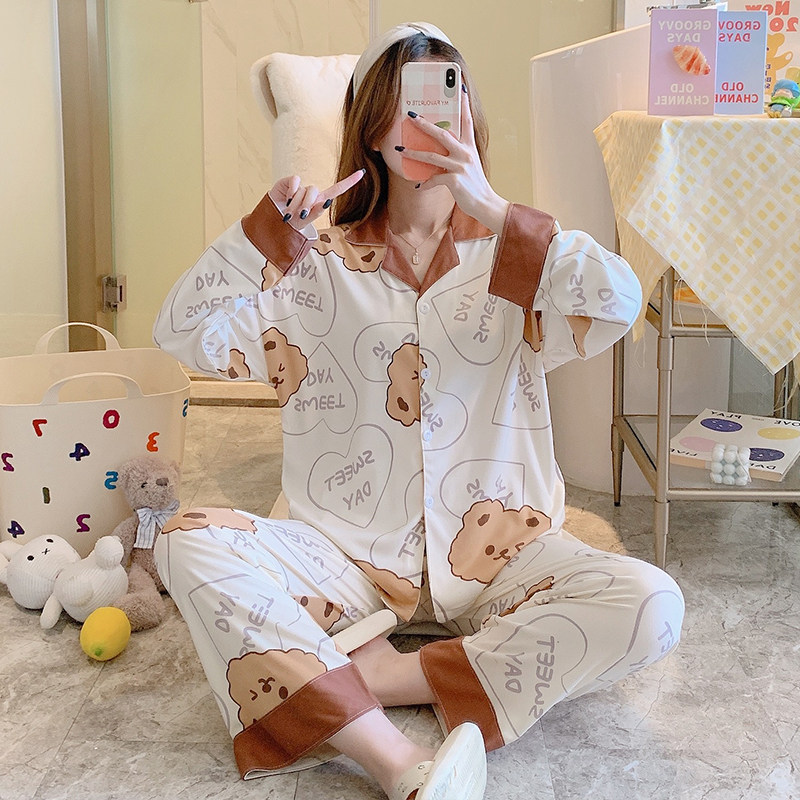 Демисезонный кардиган, пижама для школьников и студентов, милый хлопковый лонгслив, мультяшный комплект, в корейском стиле