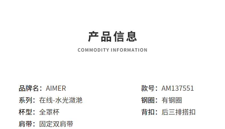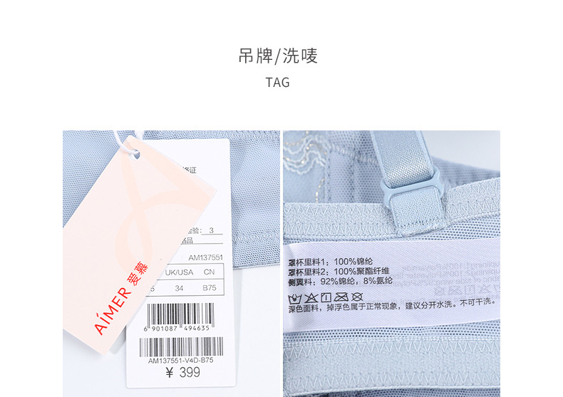 Лепестка нижнее белье AI Счетчик подлинный водяной свет 潋滟 4/4 Тонкая защита от кружевного толерантного бюстгальтера до бюстгальтера AM137551