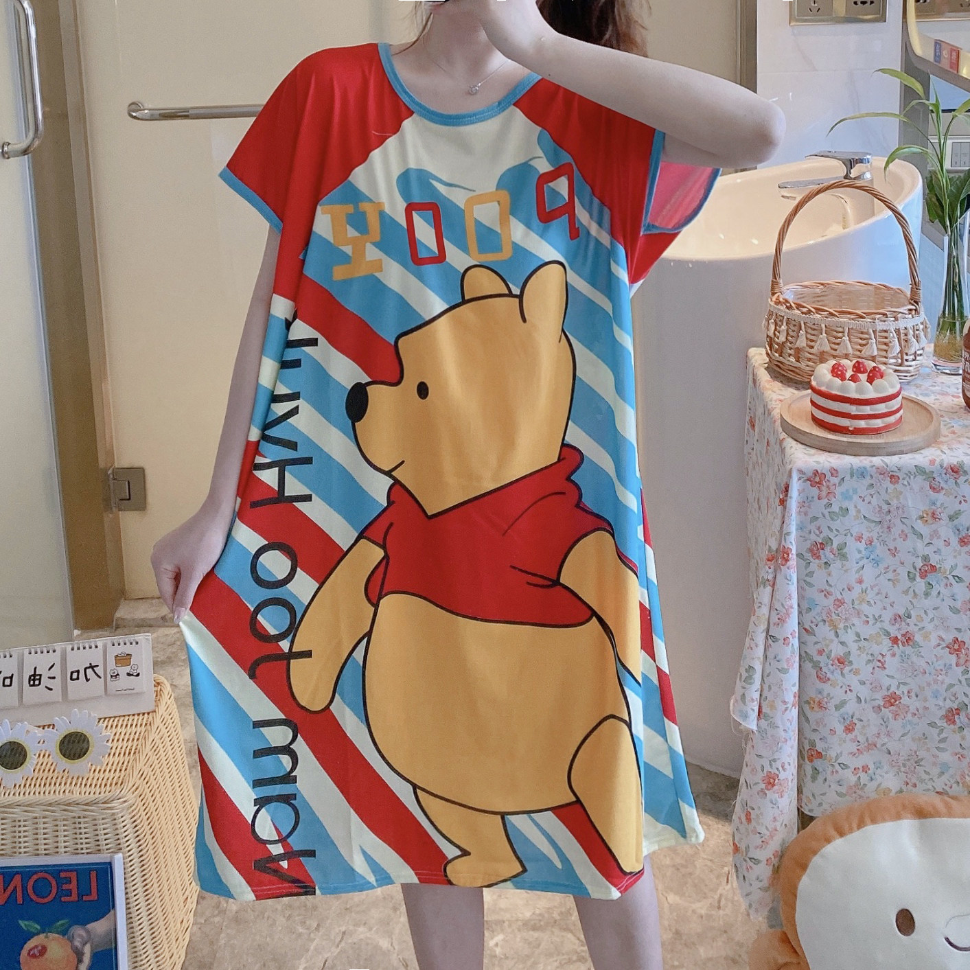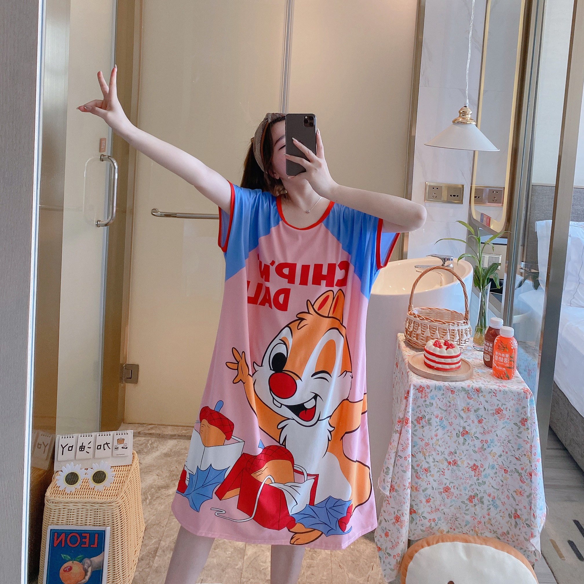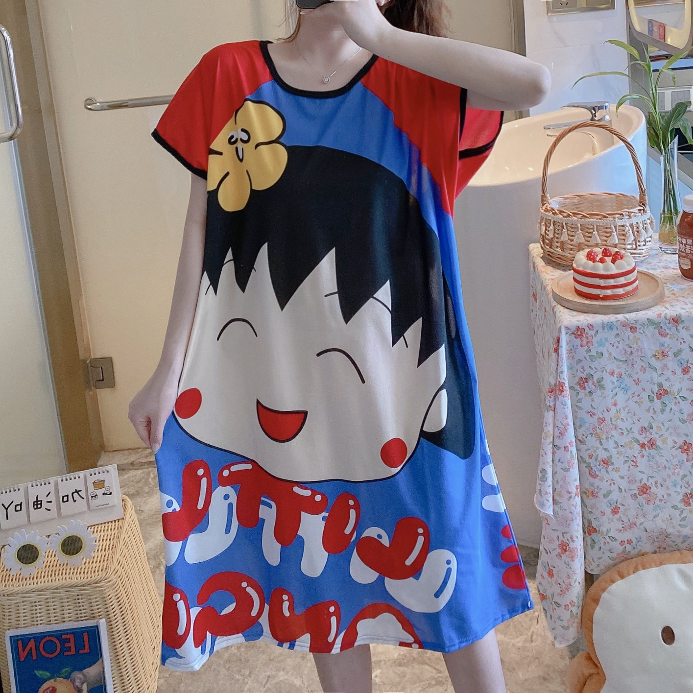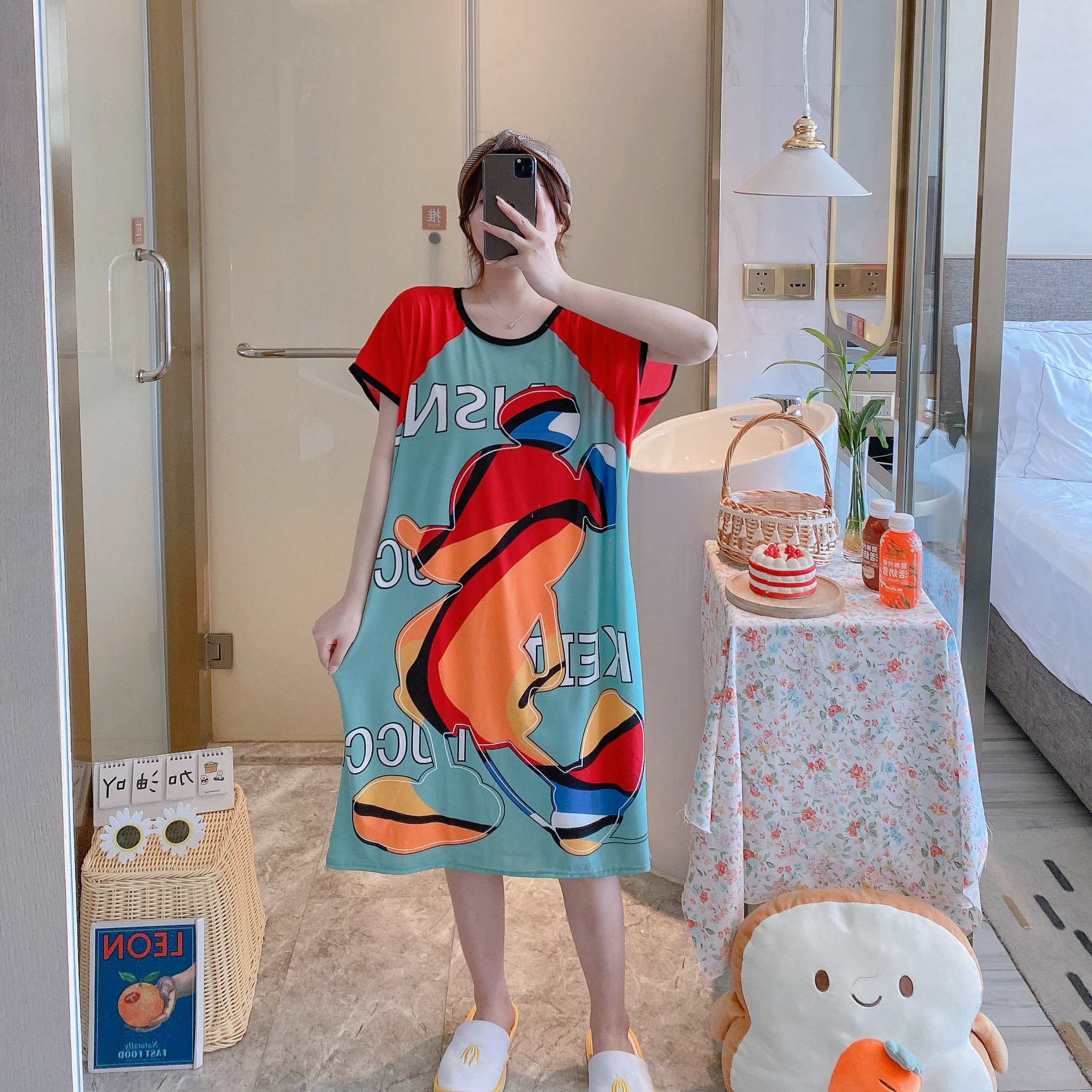 Пижама, летняя мультяшная тонкая юбка, платье, короткий рукав, большой размер