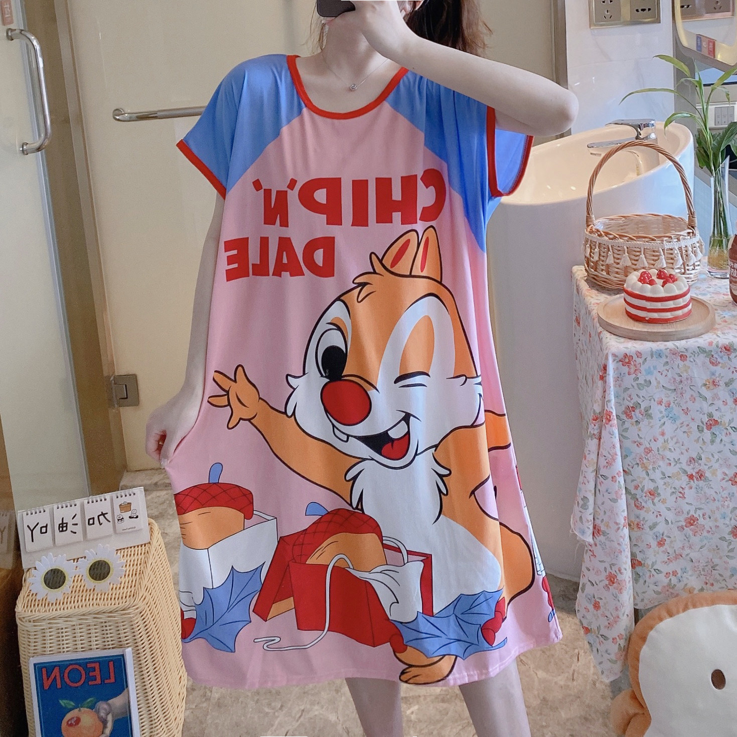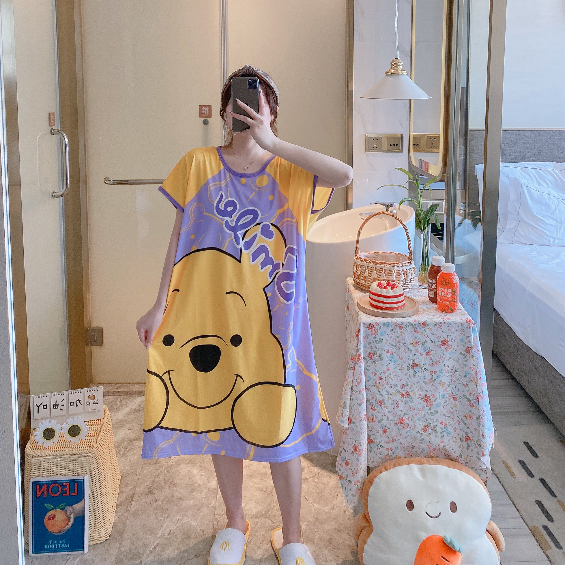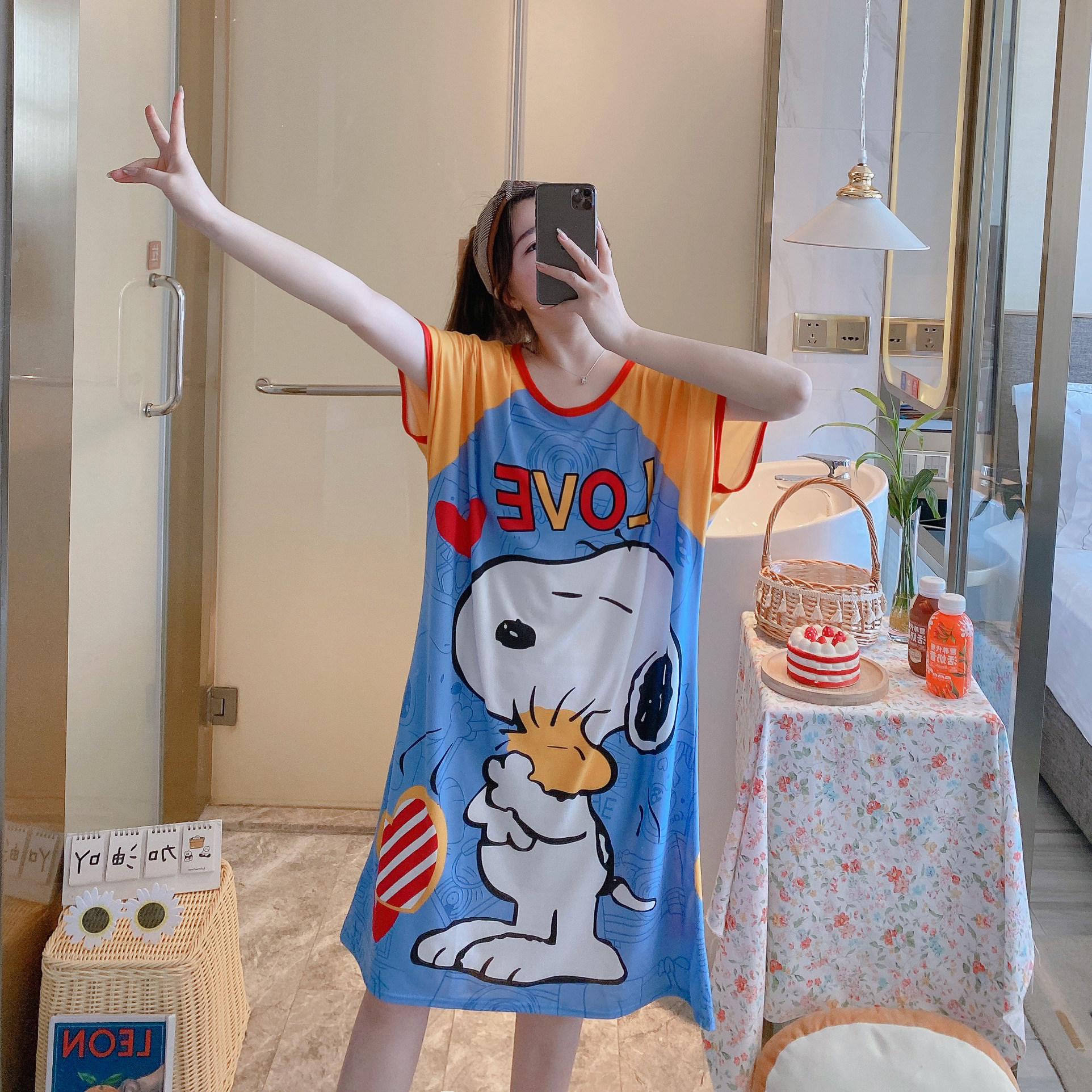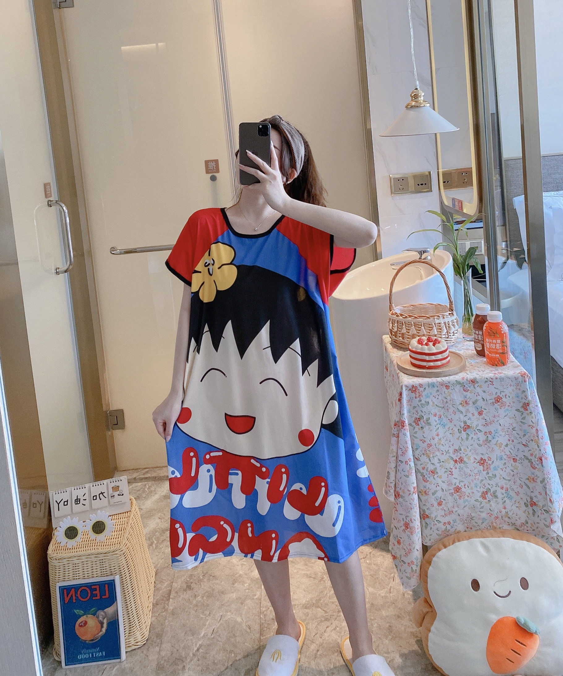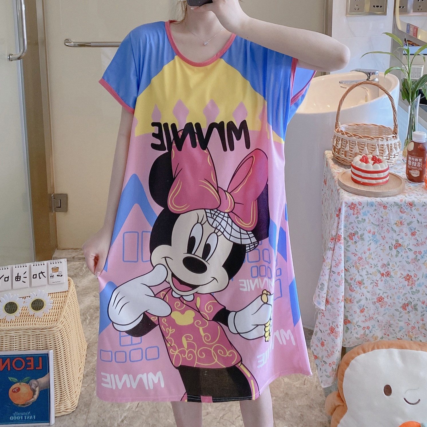 Пижама, летняя мультяшная тонкая юбка, платье, короткий рукав, большой размер