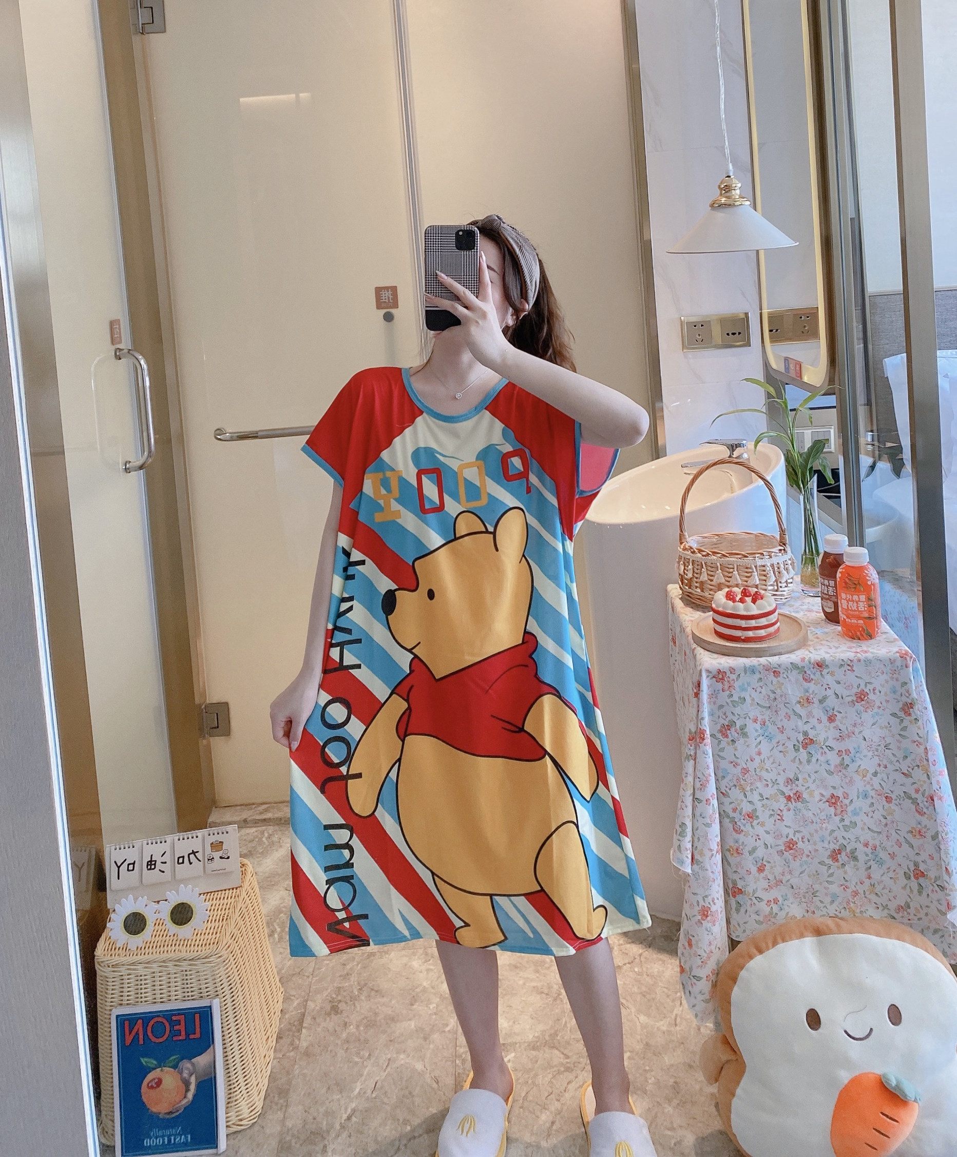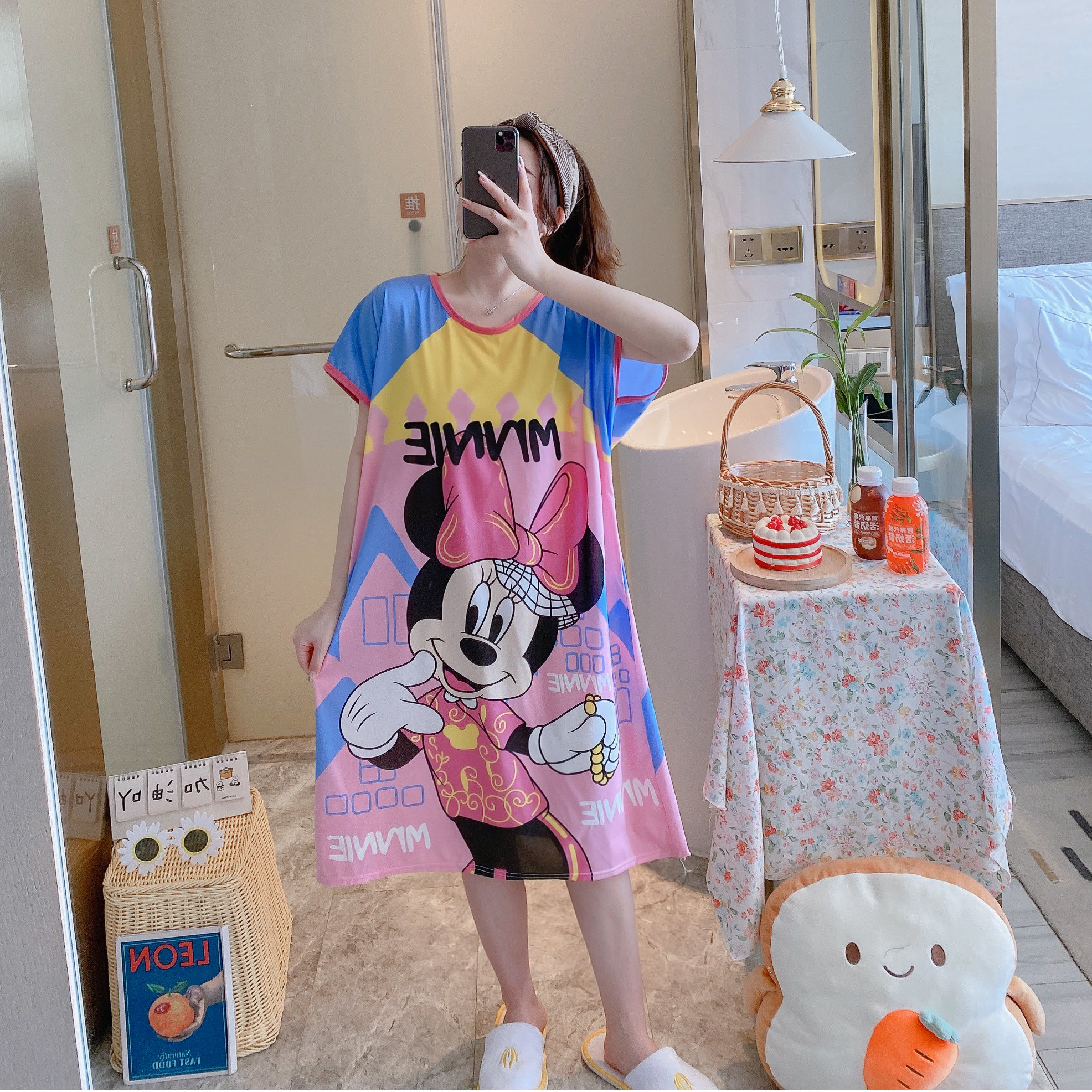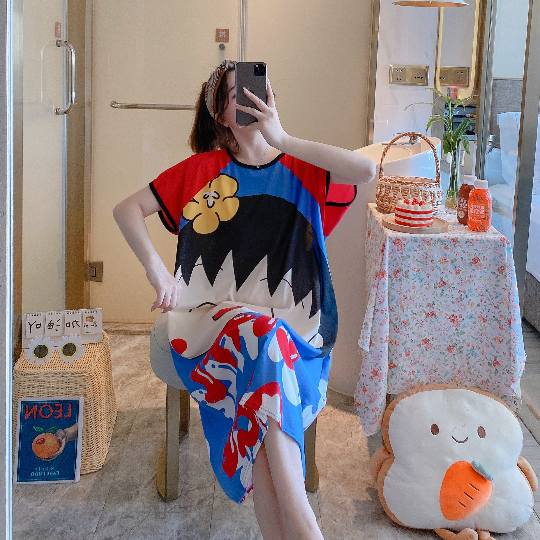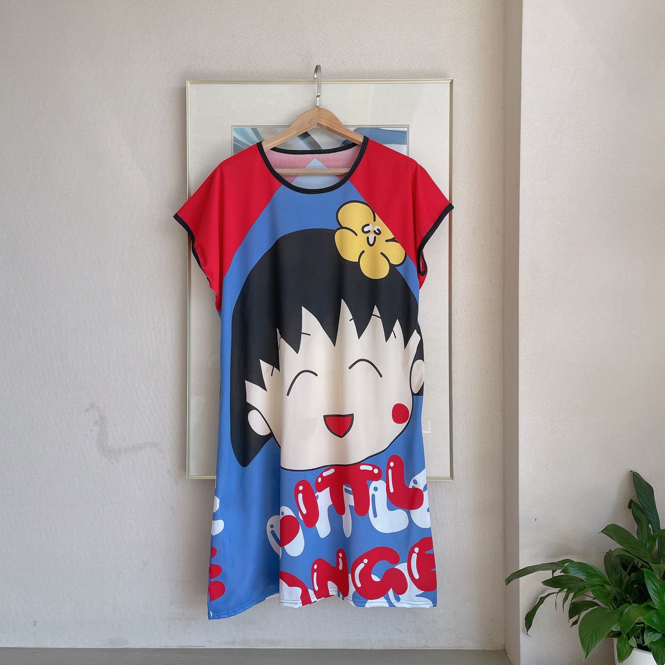 Пижама, летняя мультяшная тонкая юбка, платье, короткий рукав, большой размер