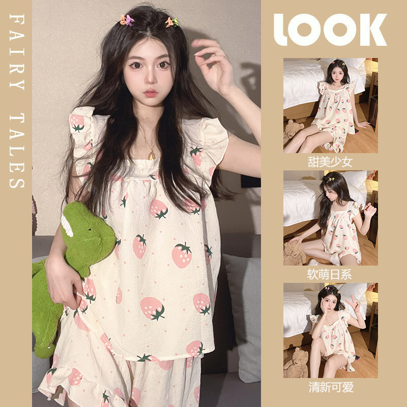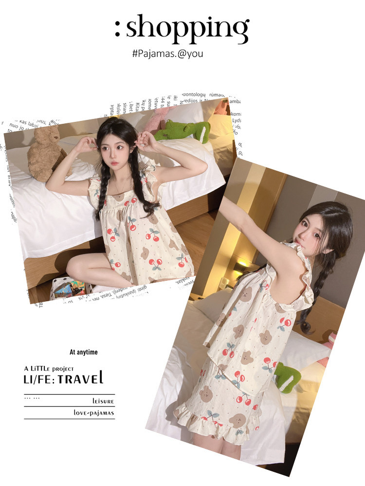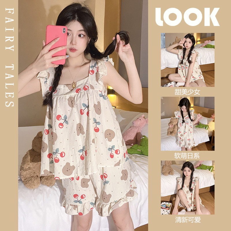Жилет, милая пижама, милые хлопковые шорты, комплект, популярно в интернете, эффект подтяжки, изысканный стиль