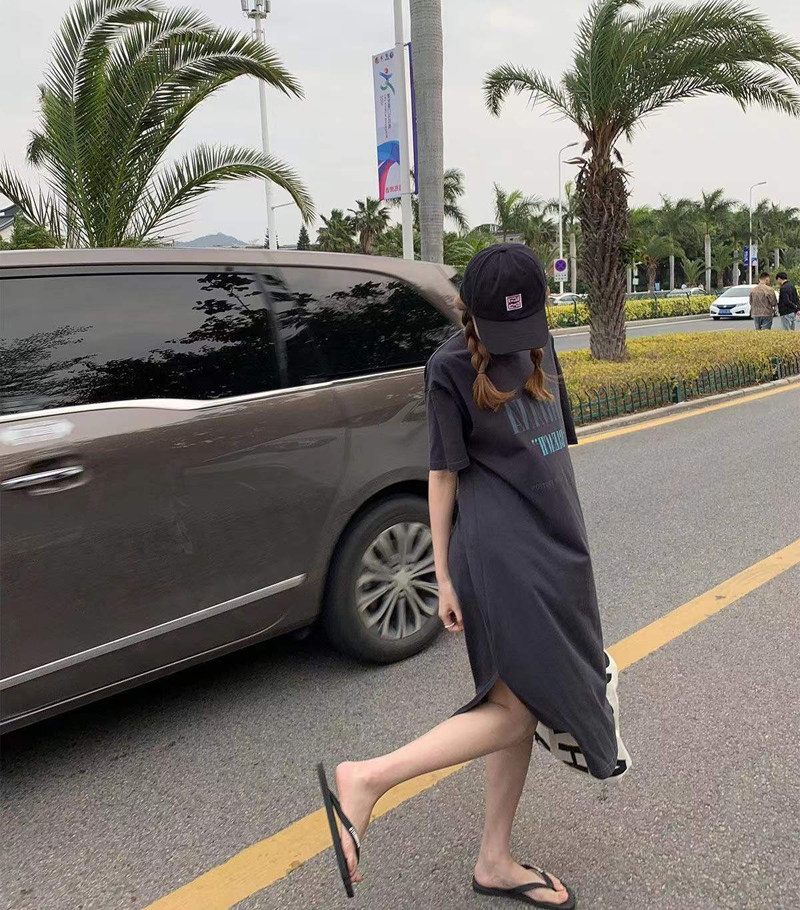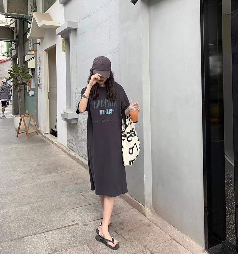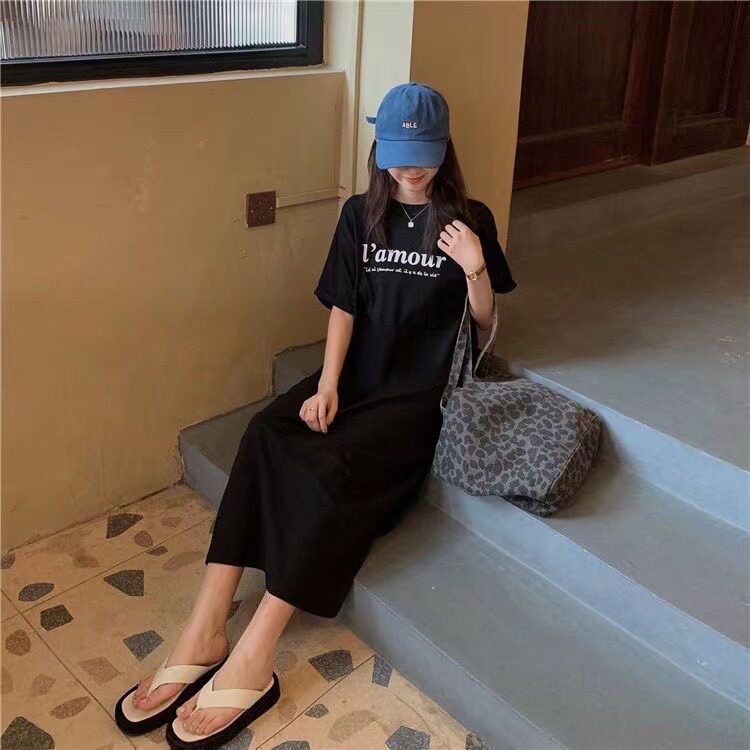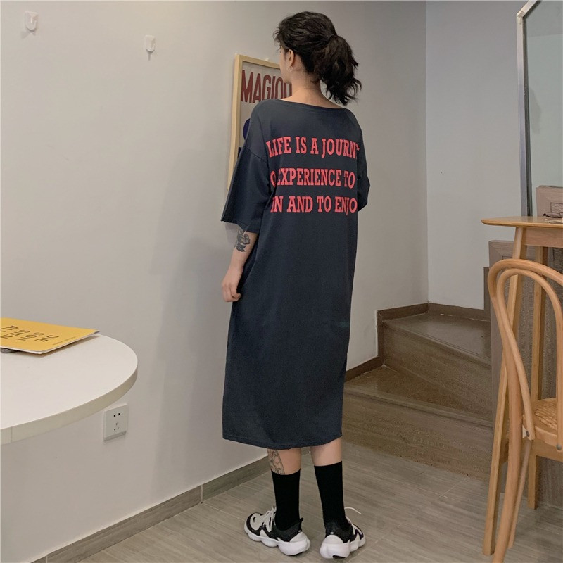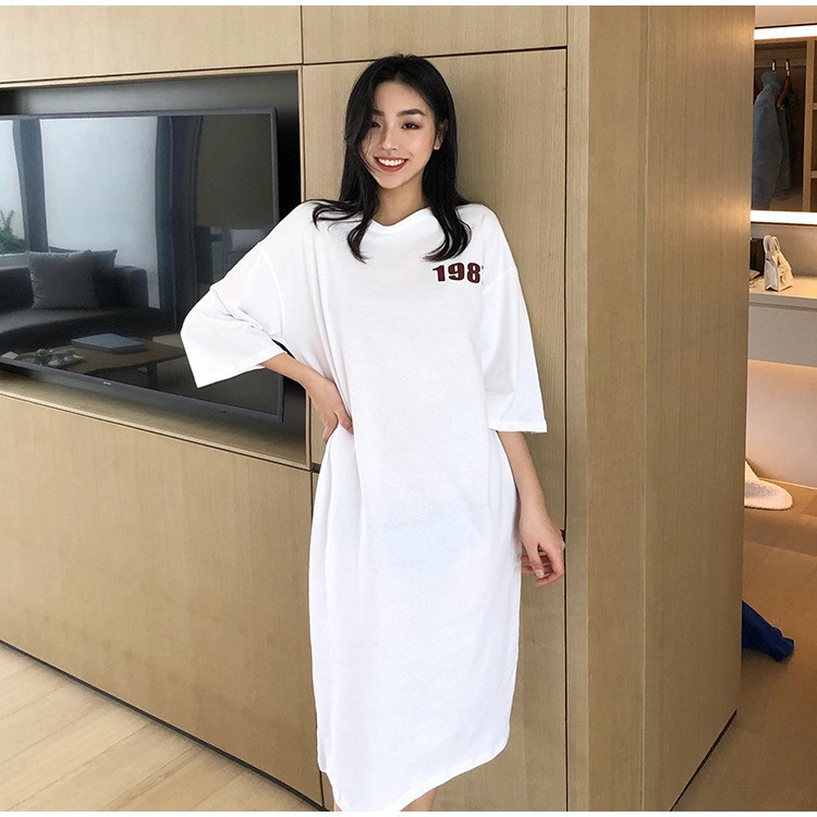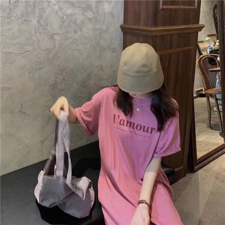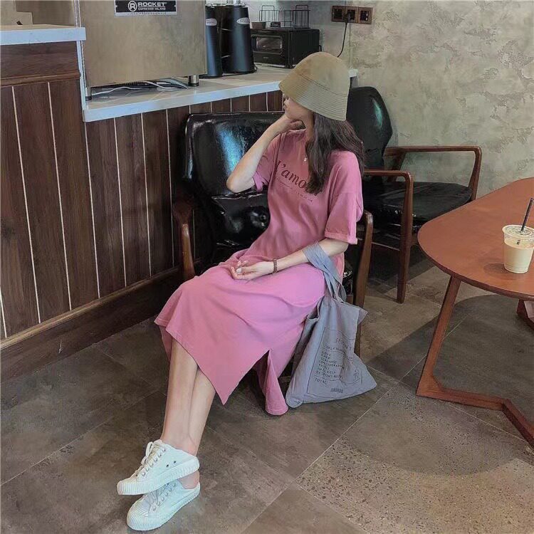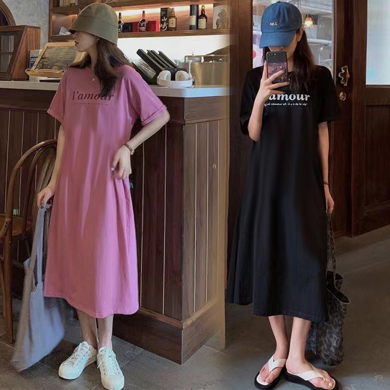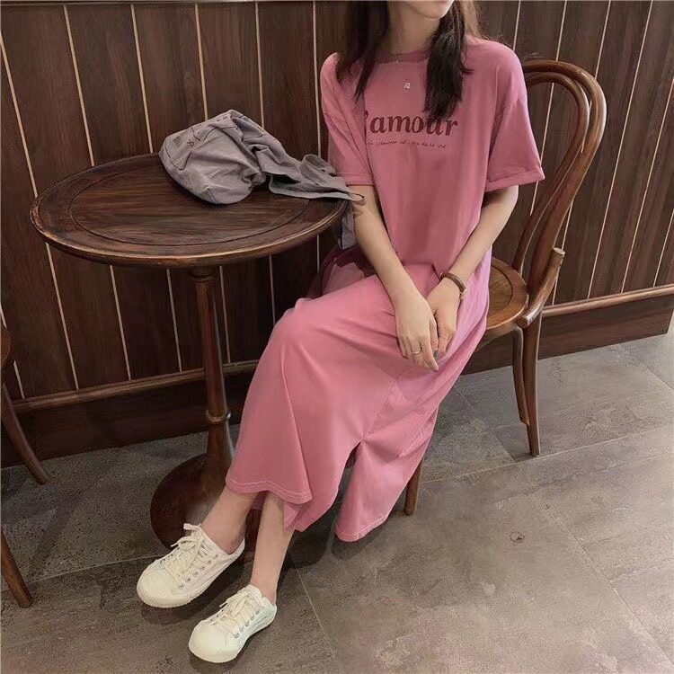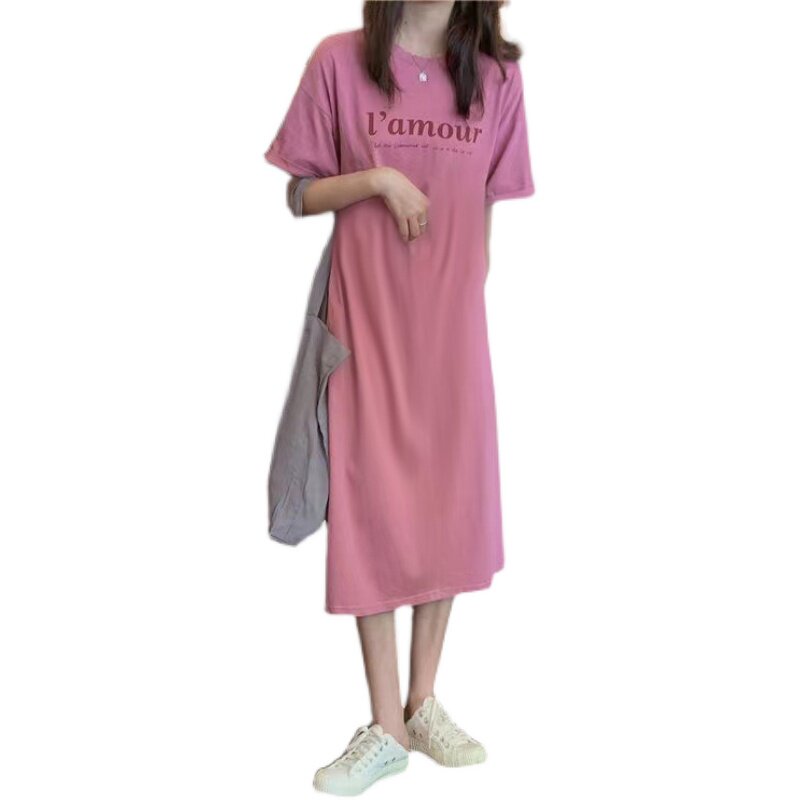 Летняя футболка с коротким рукавом, длинная пижама, боди для школьников и студентов, длинная юбка, оверсайз, в корейском стиле