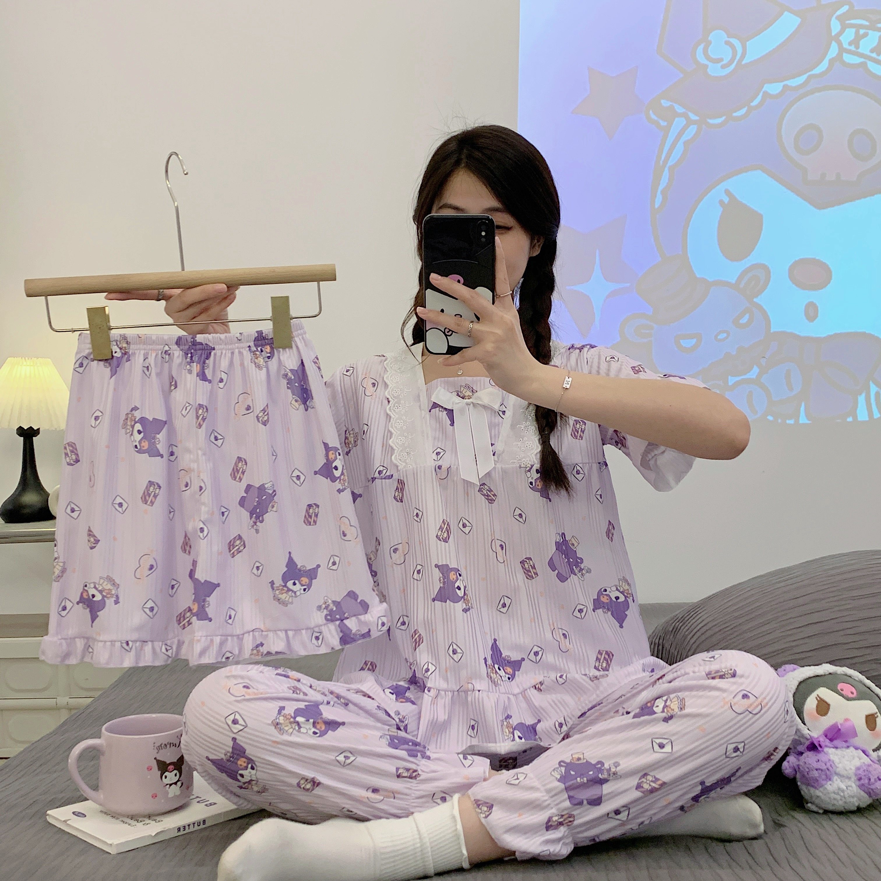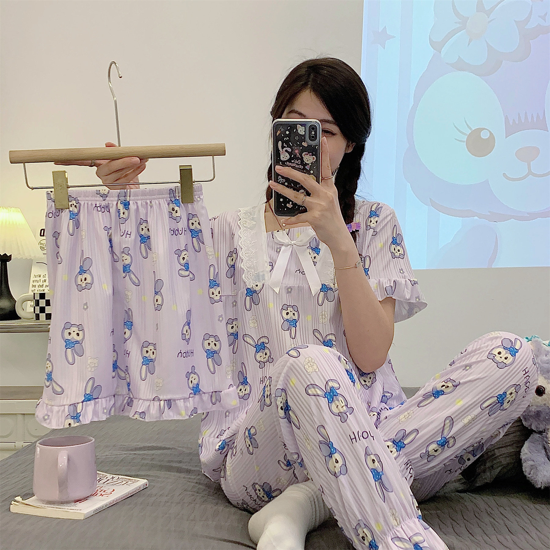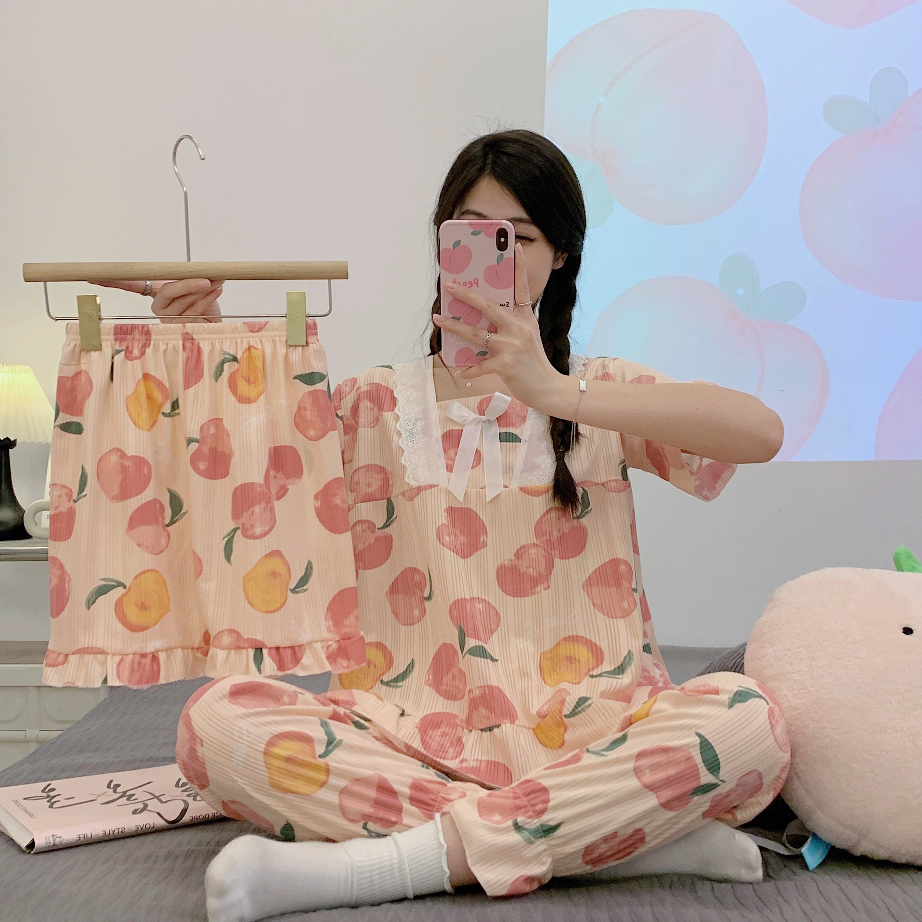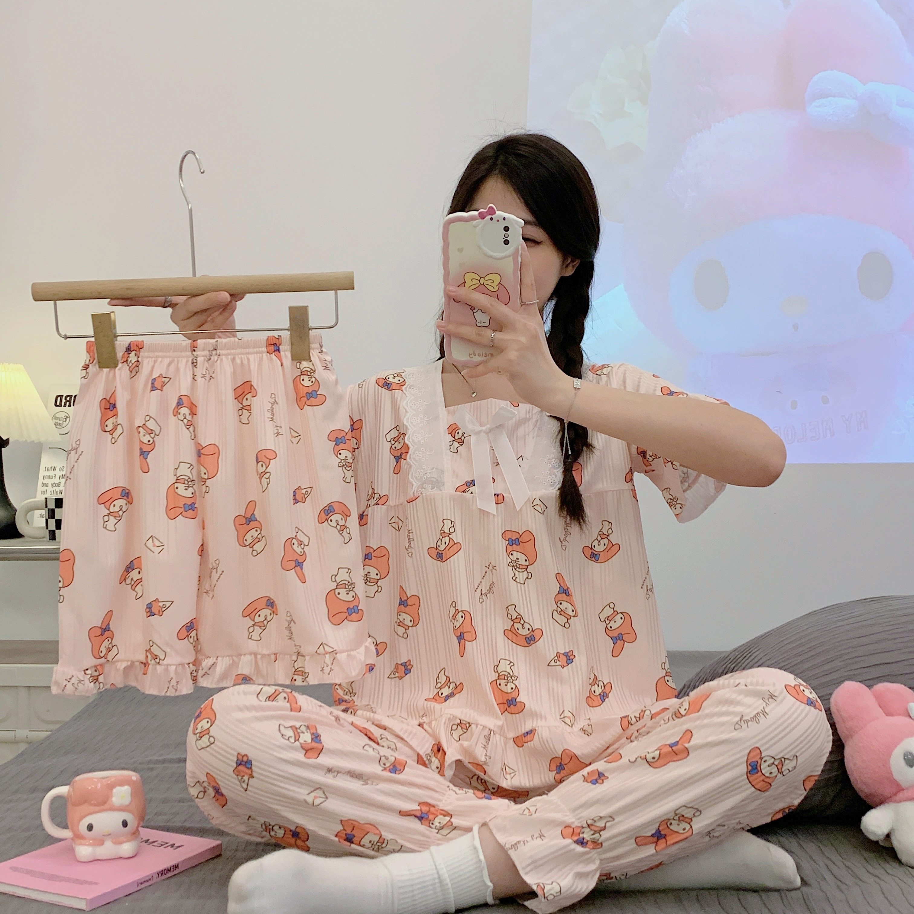 Летняя пижама, хлопковые штаны, милый тонкий комплект, 3 предмета, большой размер
