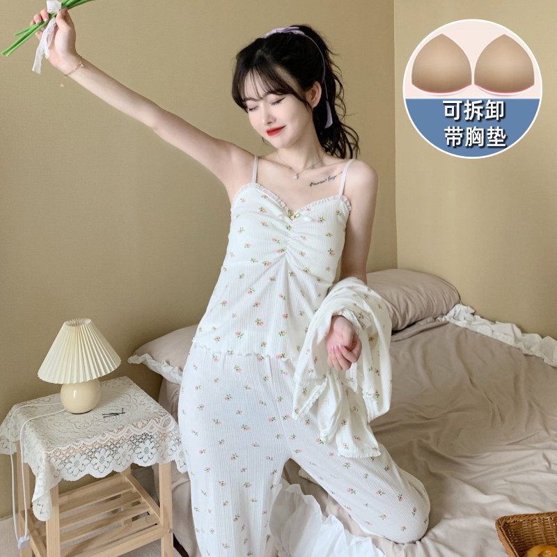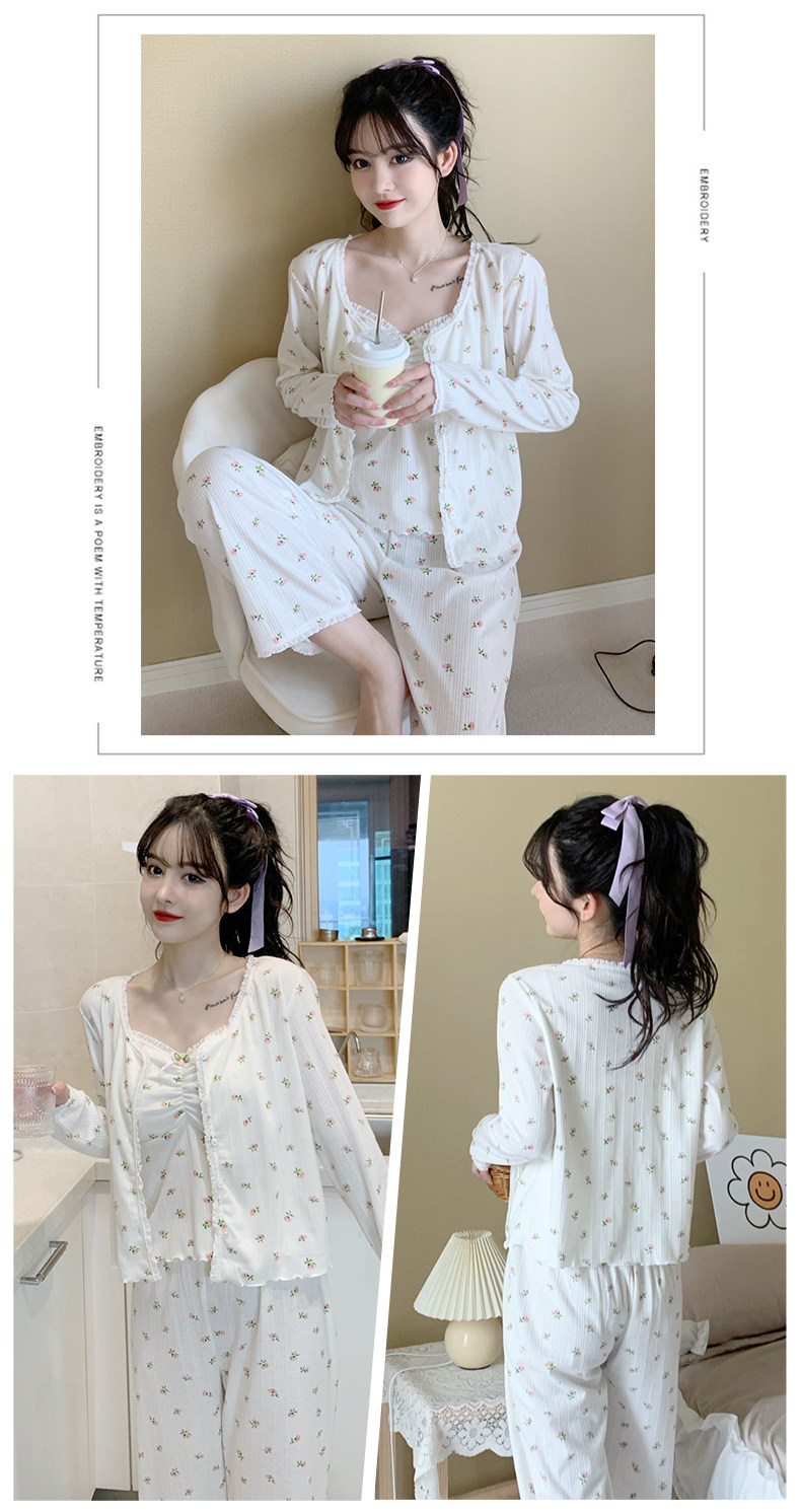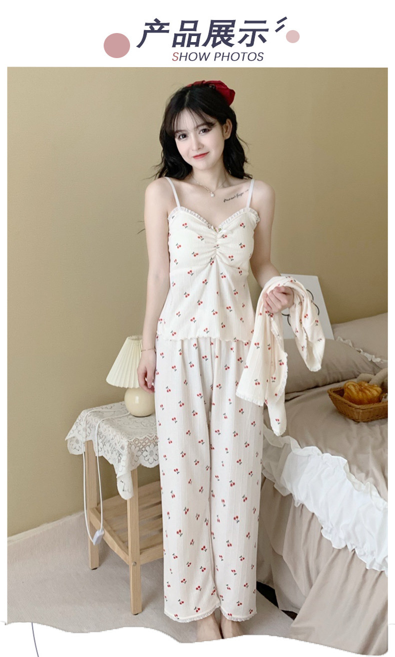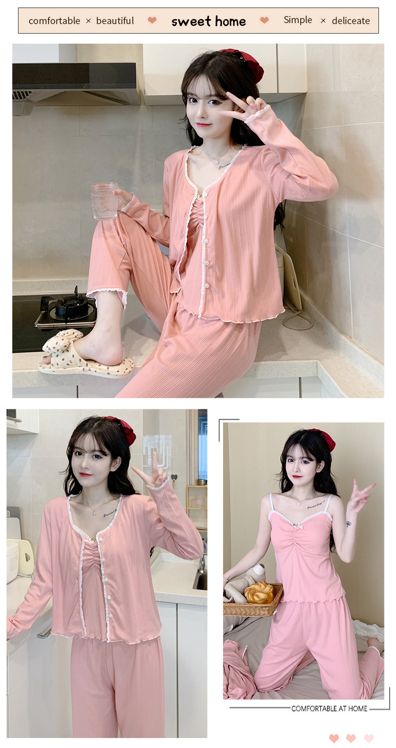 Пижама, хлопковый осенний милый лонгслив, милые сексуальные штаны, комплект, домашняя одежда, эффект подтяжки, 3 предмета