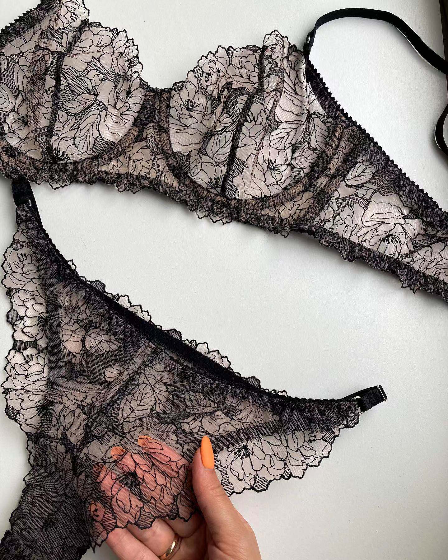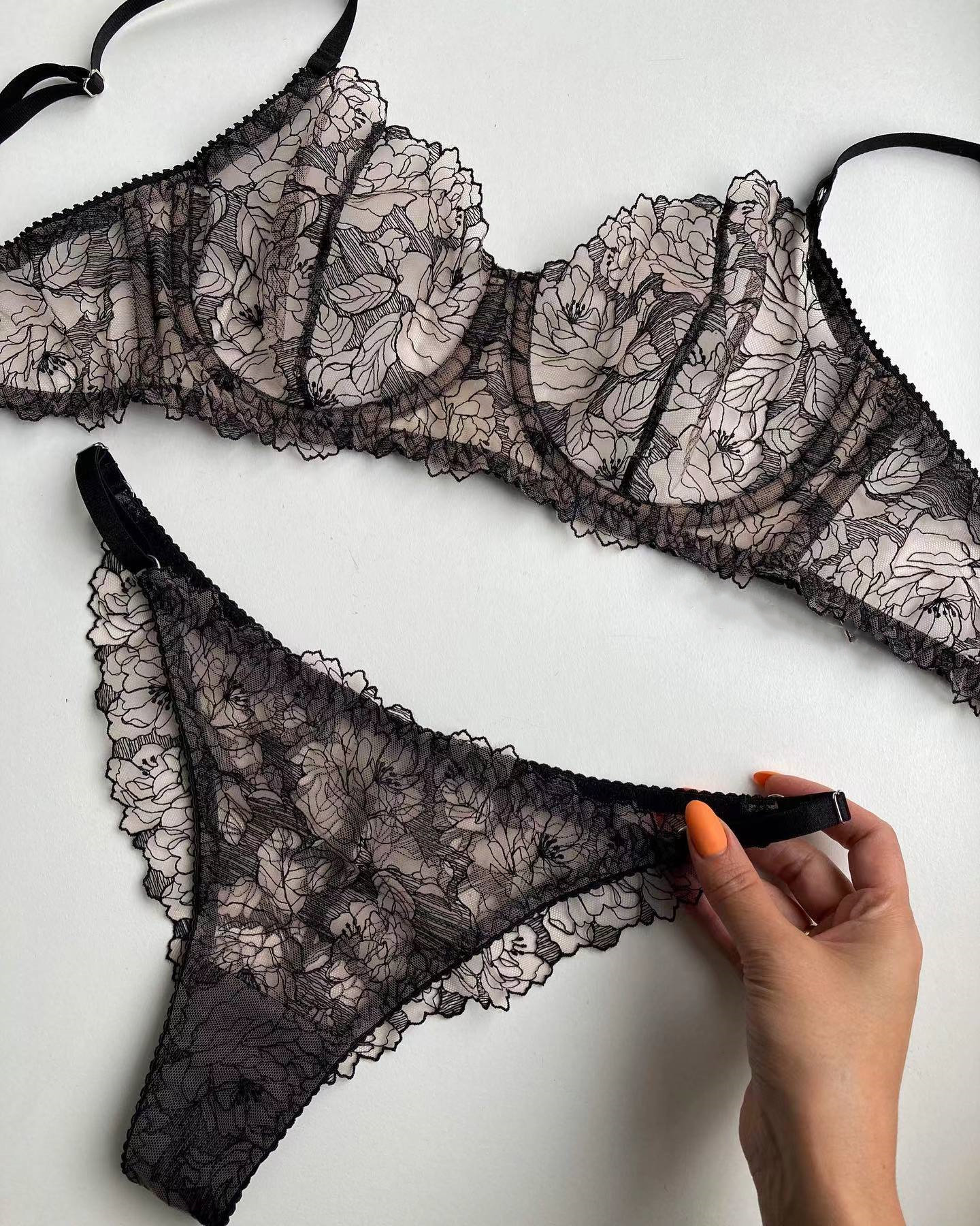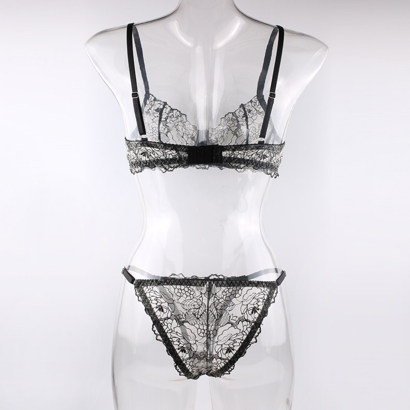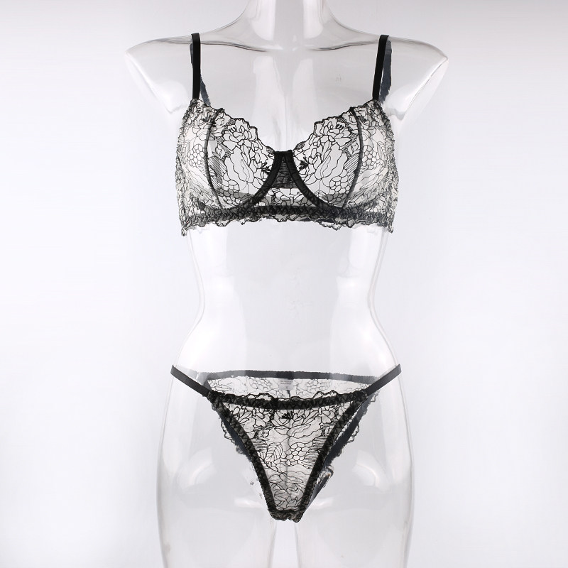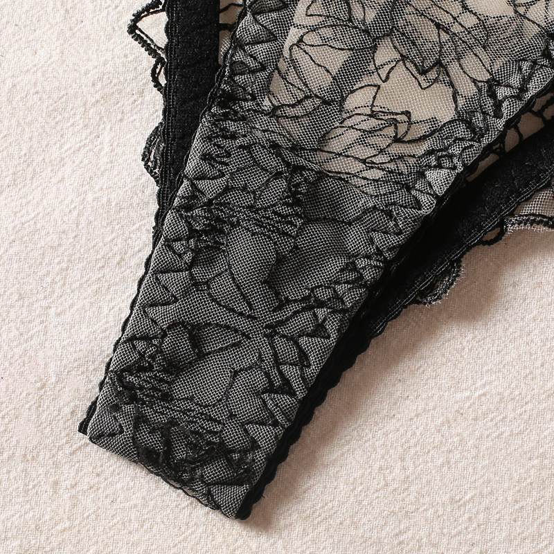 Прозрачный сексуальный бюстгалтер, трусы со стальными косточками, штаны, с вышивкой