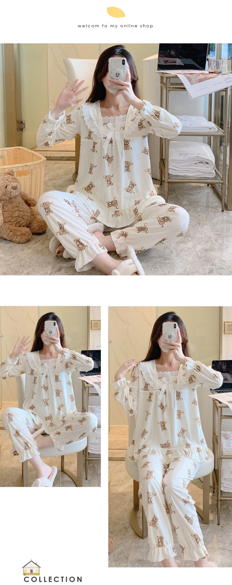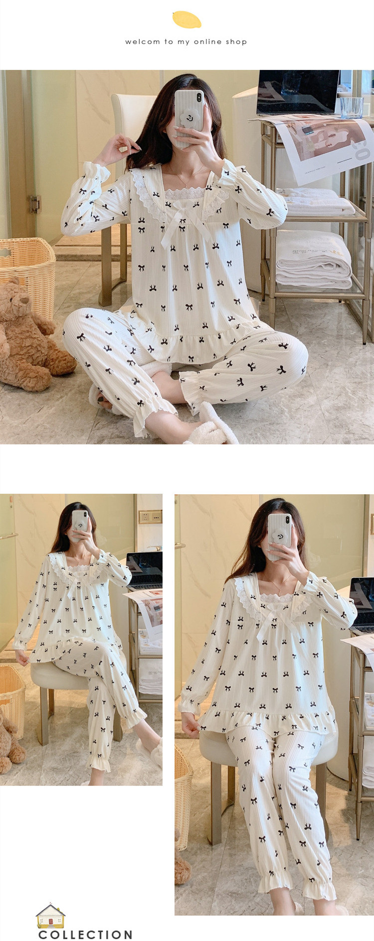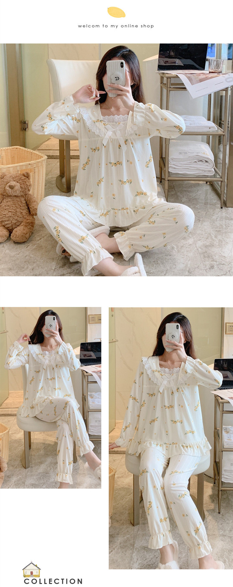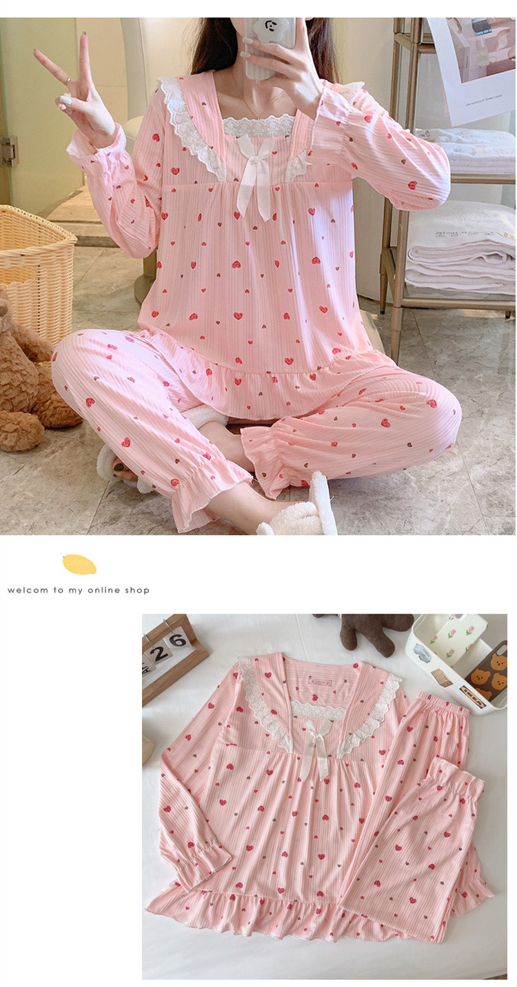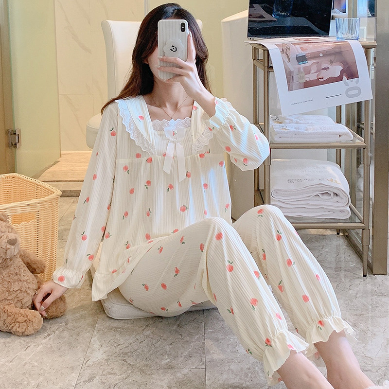 Осенняя демисезонная пижама, хлопковый милый лонгслив, осенний комплект, популярно в интернете, большой размер