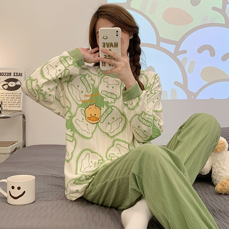 Демисезонная хлопковая пижама, лонгслив, осенний мультяшный комплект, коллекция 2022, большой размер