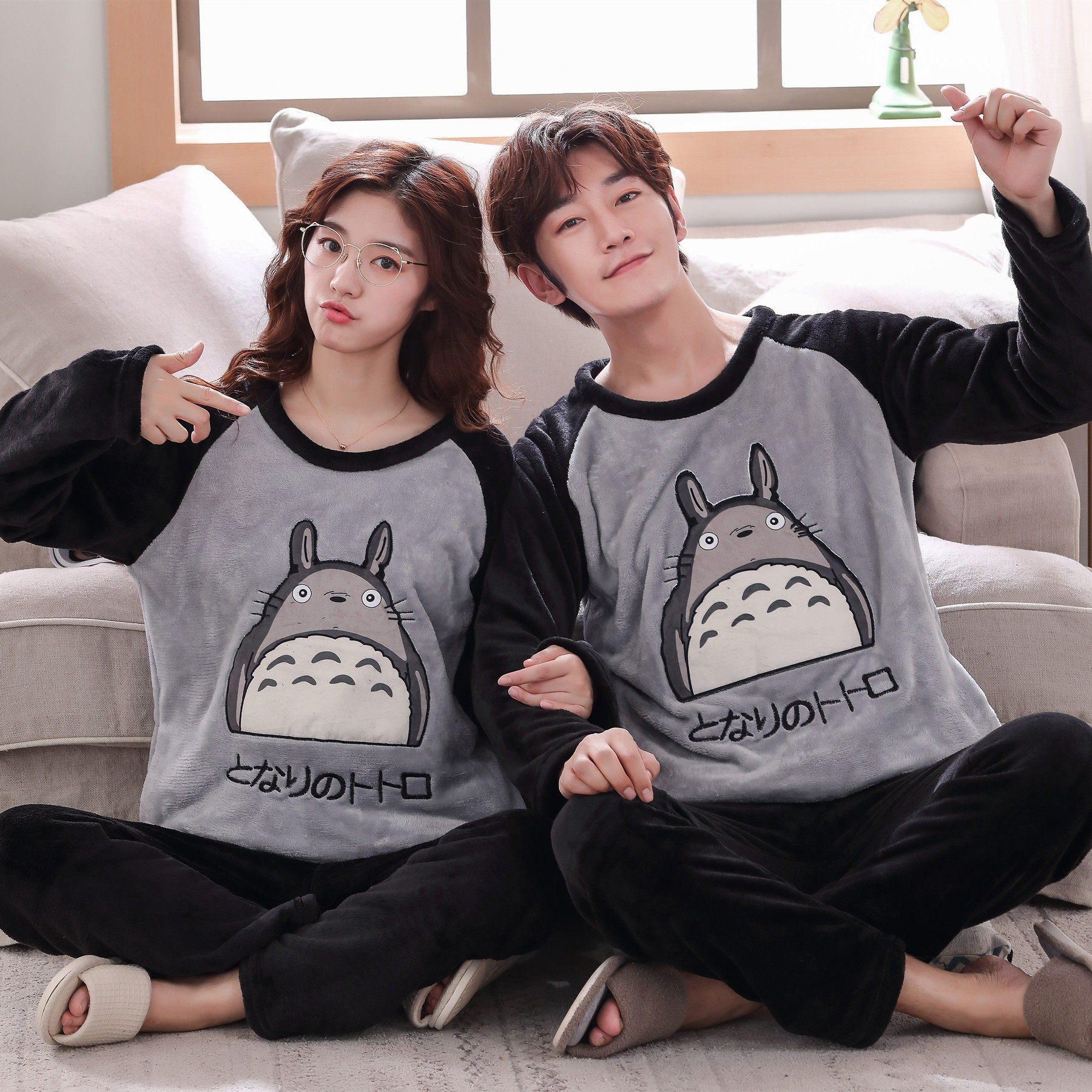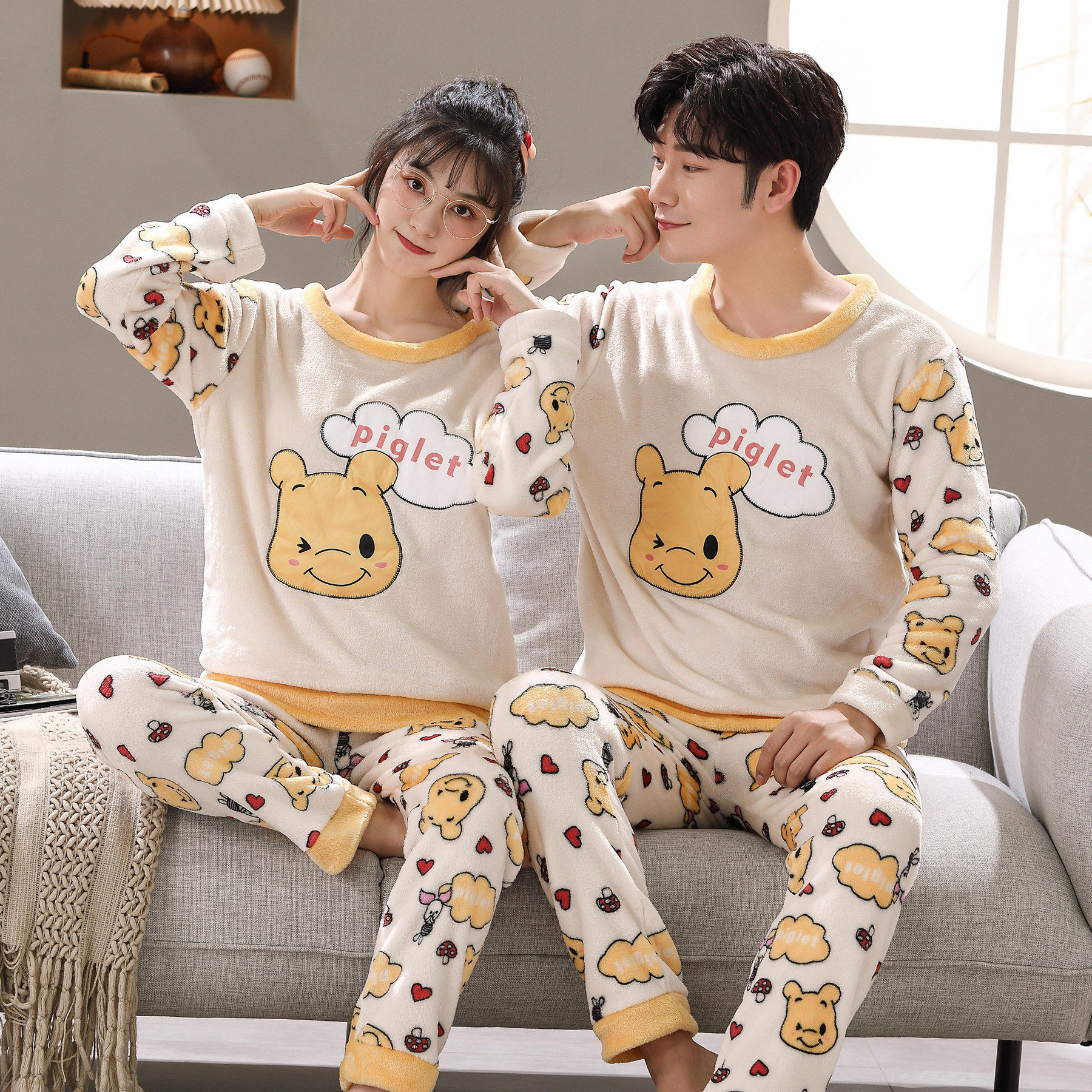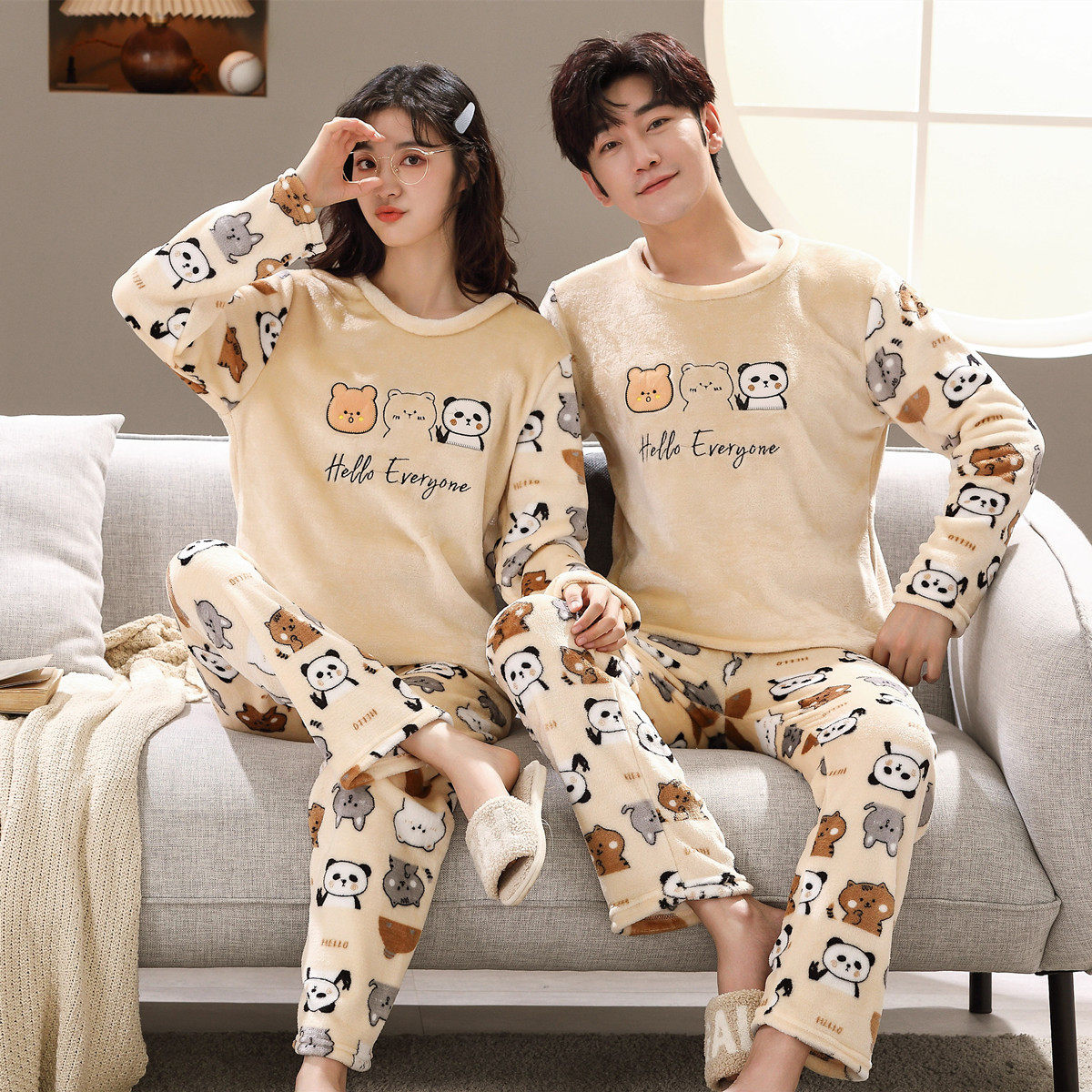 Мужская мультяшная фланелевая демисезонная пижама, удерживающий тепло демисезонный коралловый бархатный комплект, для влюбленных