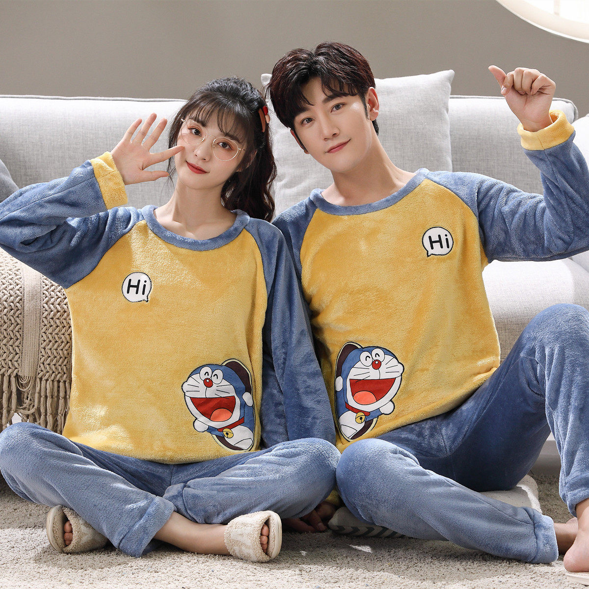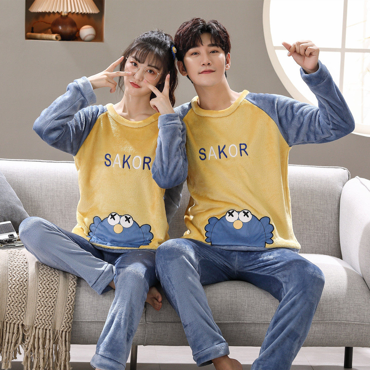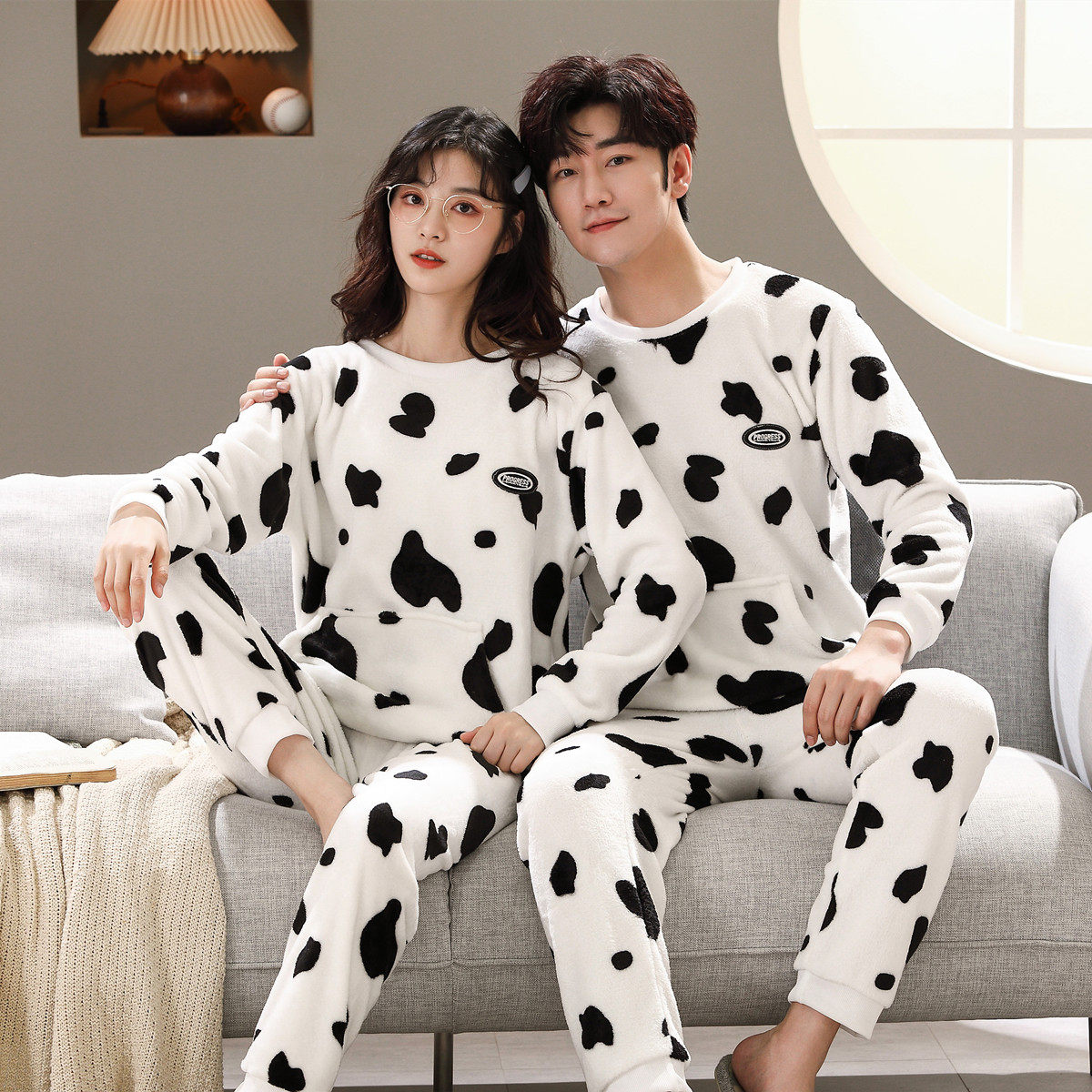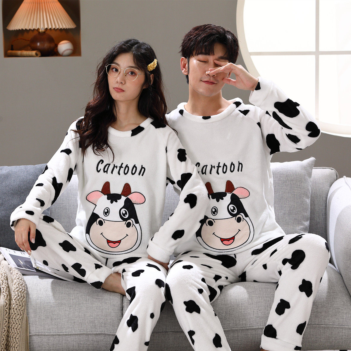 Мужская мультяшная фланелевая демисезонная пижама, удерживающий тепло демисезонный коралловый бархатный комплект, для влюбленных