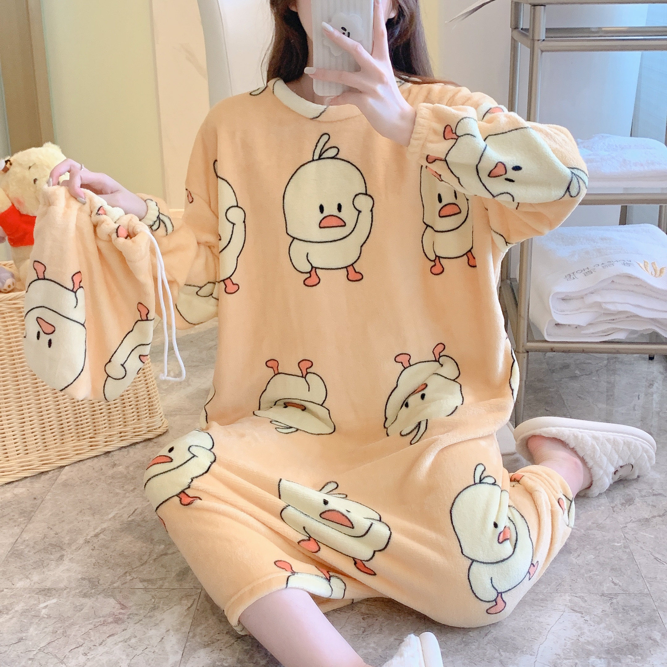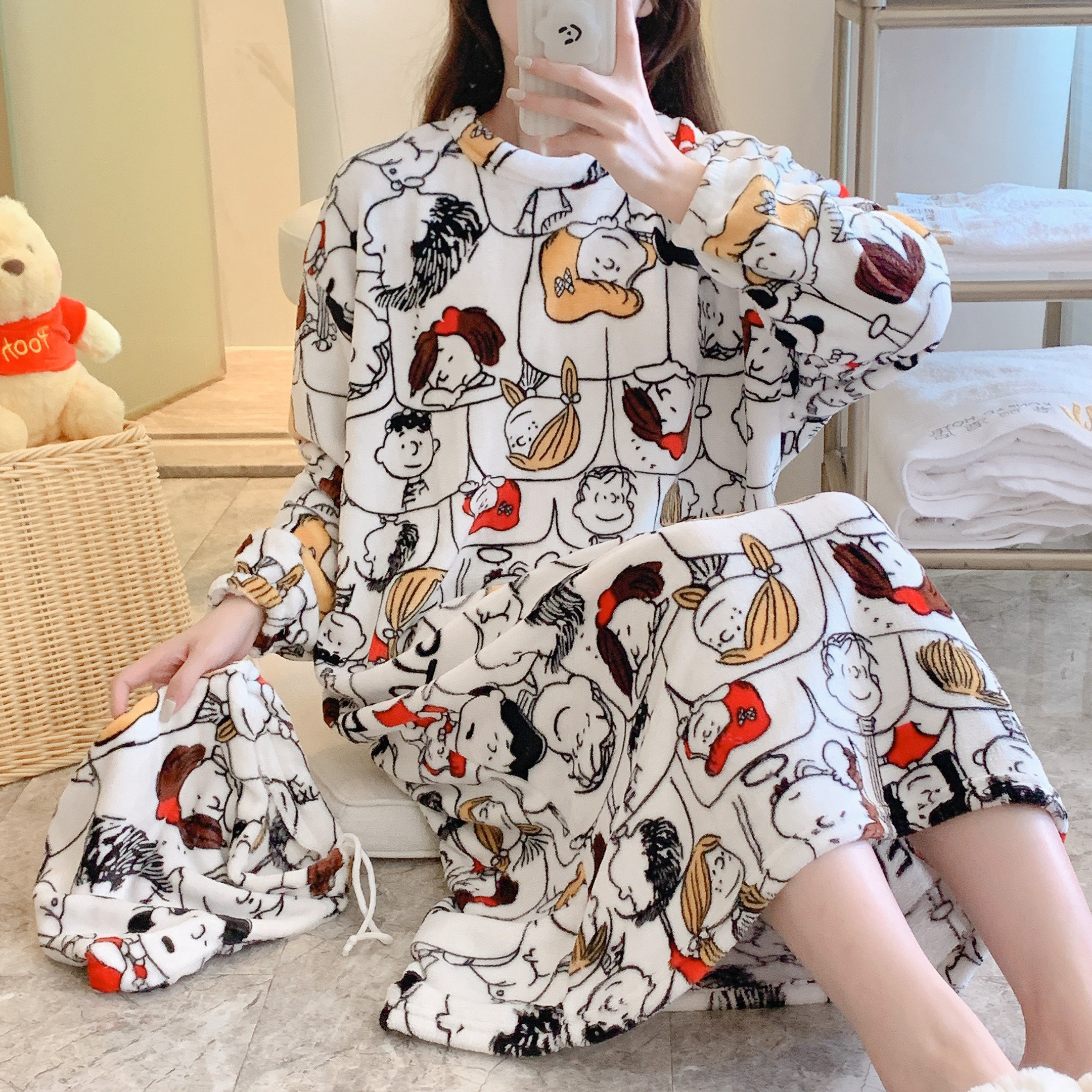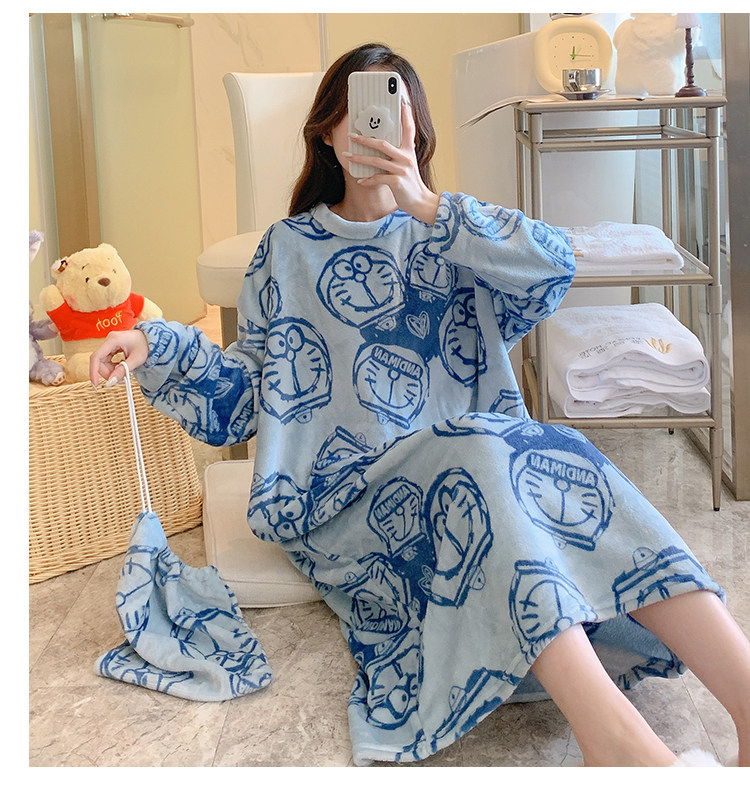 Коралловая бархатная пижама, зимняя мультяшная фланелевая демисезонная юбка для школьников и студентов, коллекция 2022, увеличенная толщина