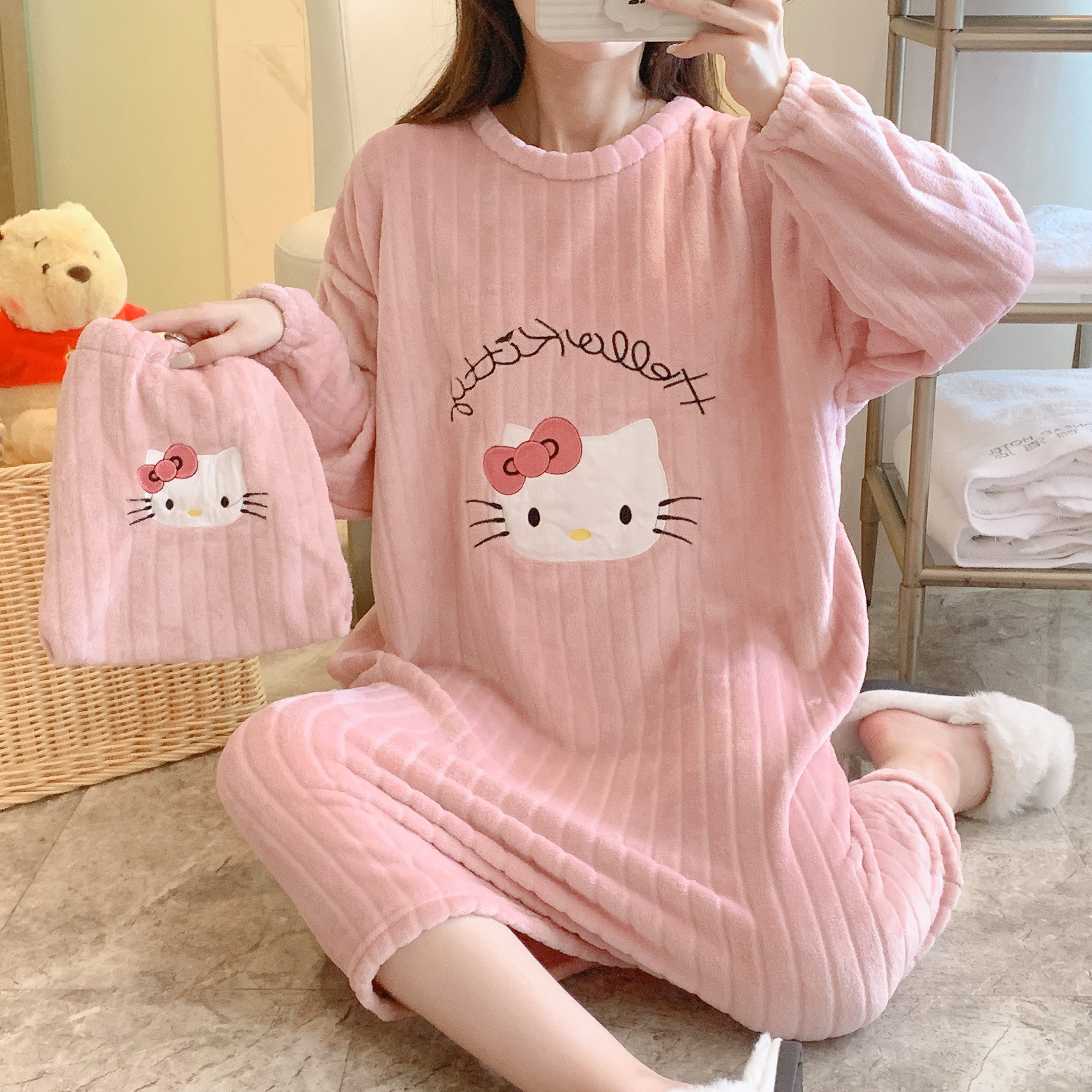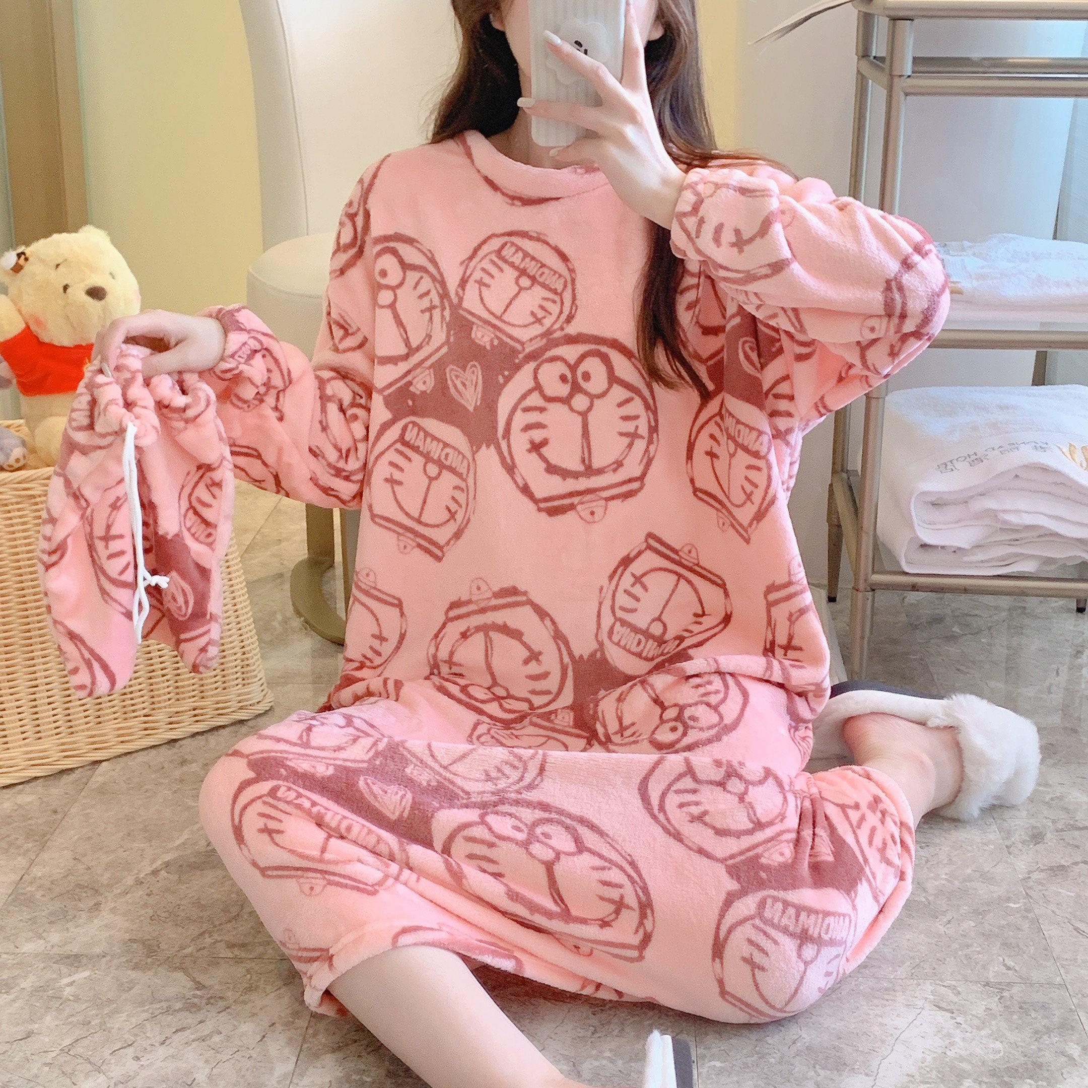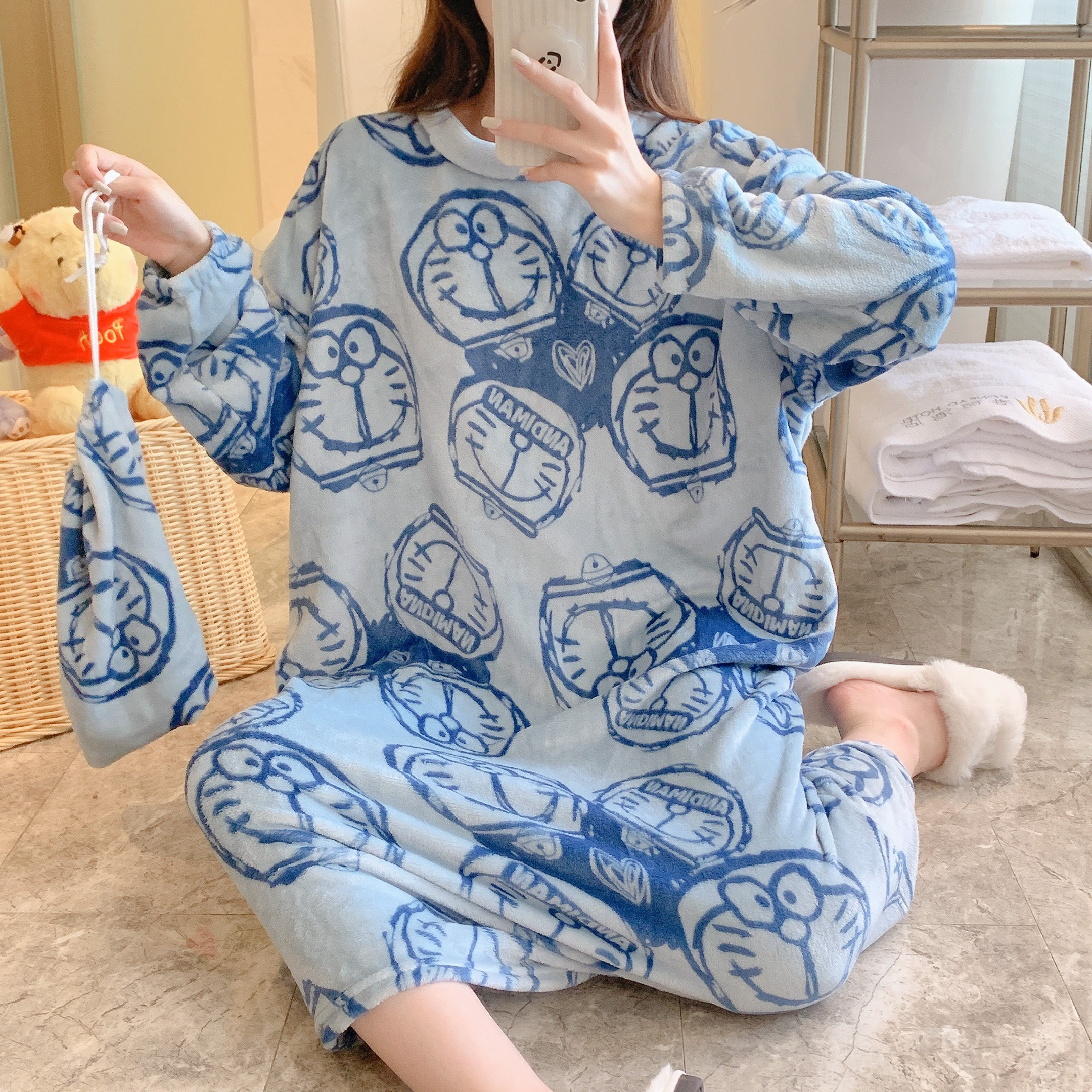 Коралловая бархатная пижама, зимняя мультяшная фланелевая демисезонная юбка для школьников и студентов, коллекция 2022, увеличенная толщина