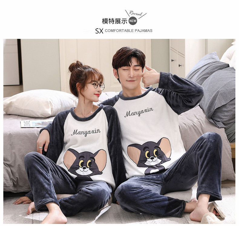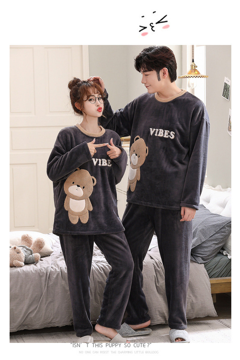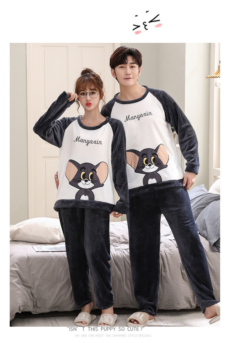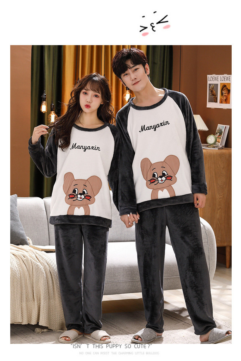 Зимняя фланелевая демисезонная пижама, зимний коралловый бархатный мультяшный удерживающий тепло комплект, для влюбленных, увеличенная толщина