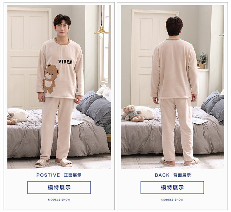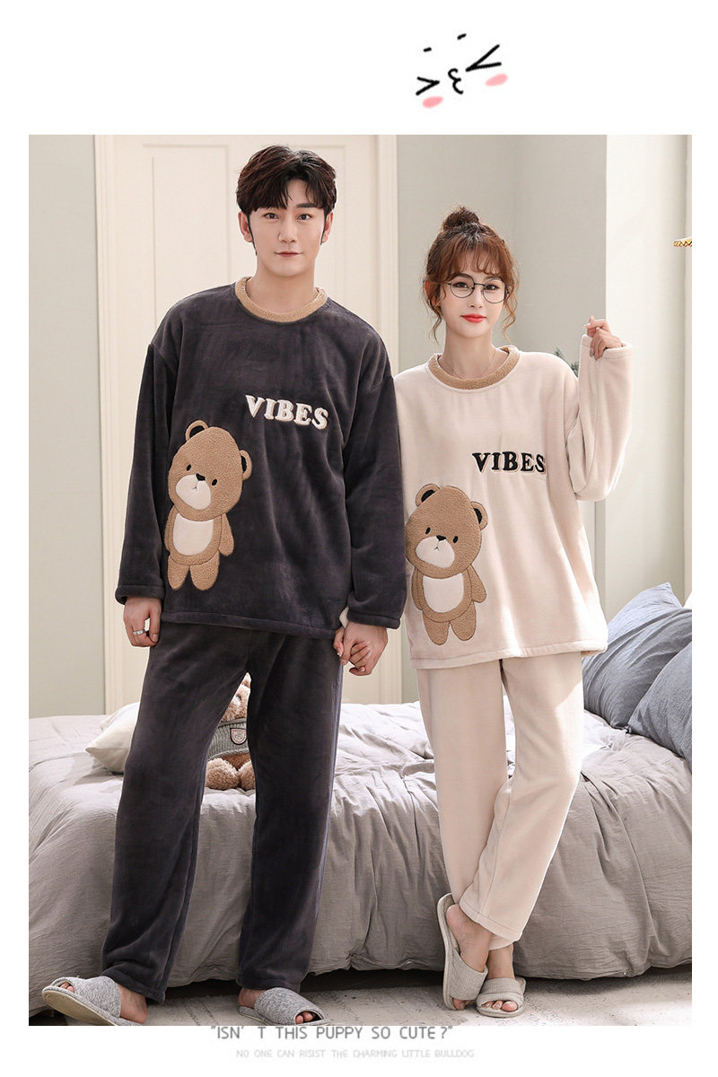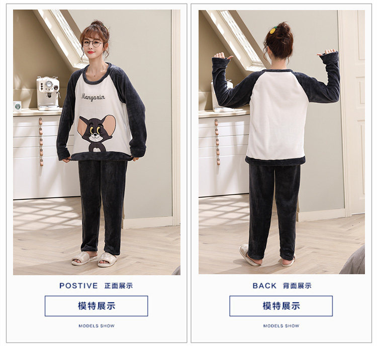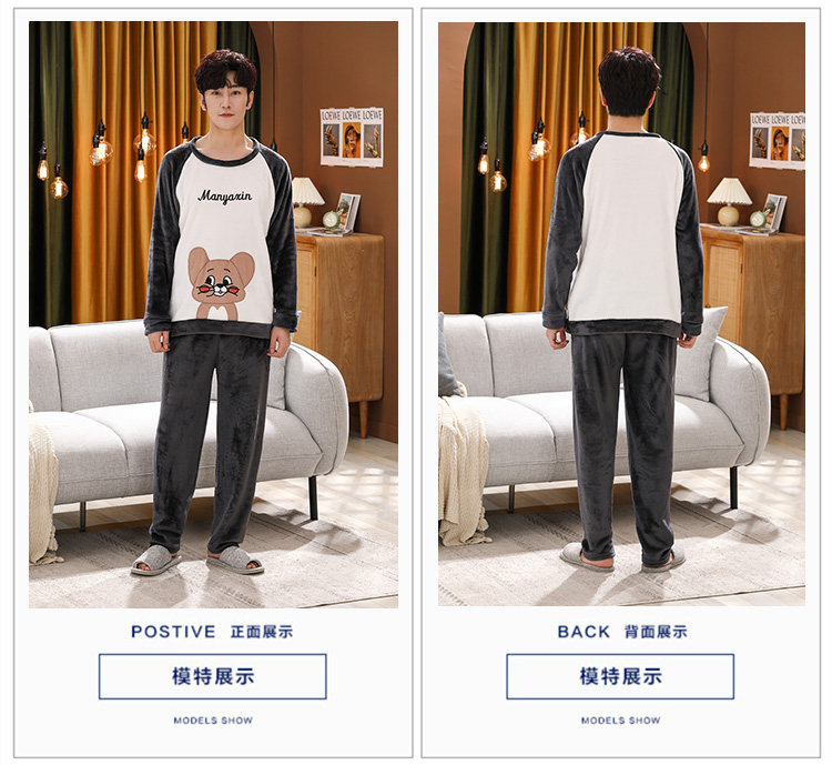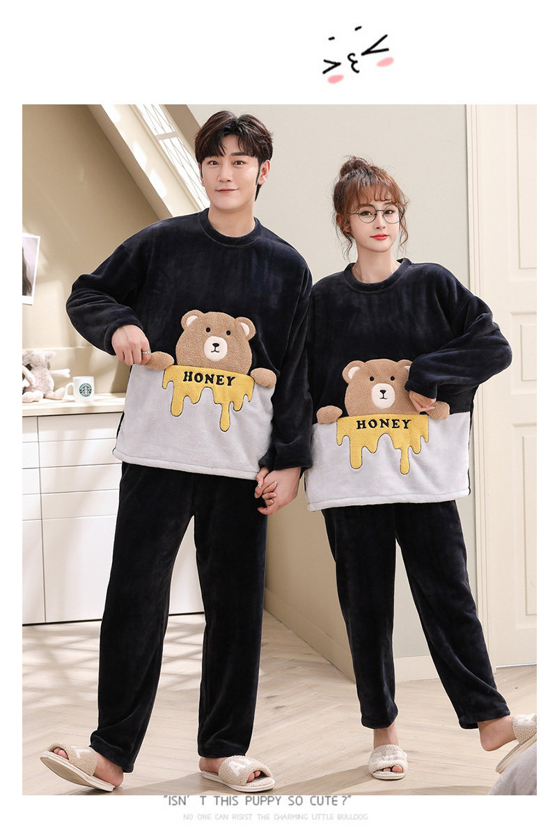 Зимняя фланелевая демисезонная пижама, зимний коралловый бархатный мультяшный удерживающий тепло комплект, для влюбленных, увеличенная толщина