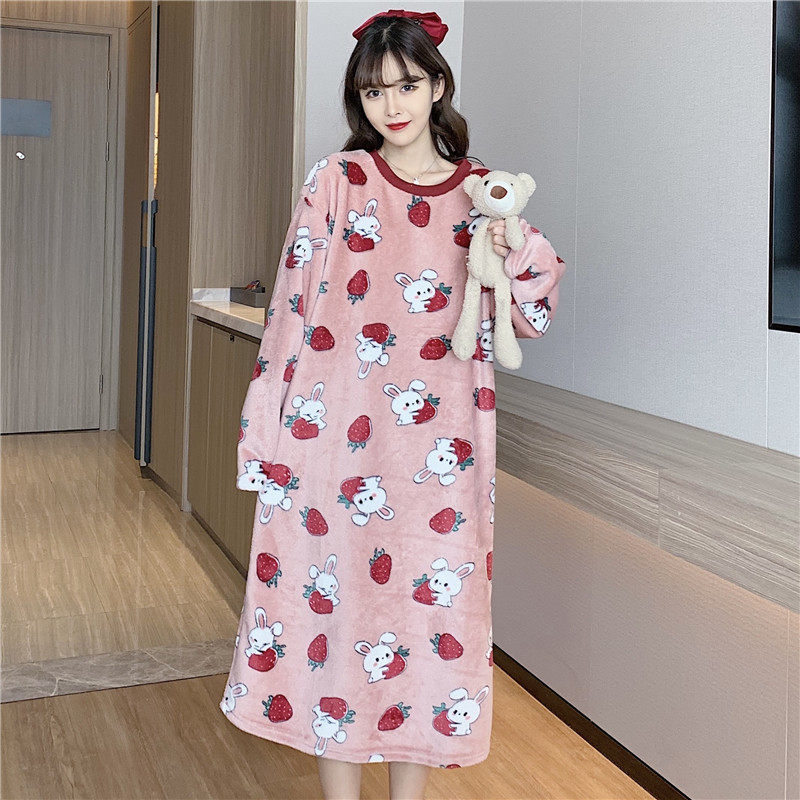 Зимняя мультяшная фланелевая пижама, демисезонная коралловая бархатная юбка, коллекция 2022, увеличенная толщина