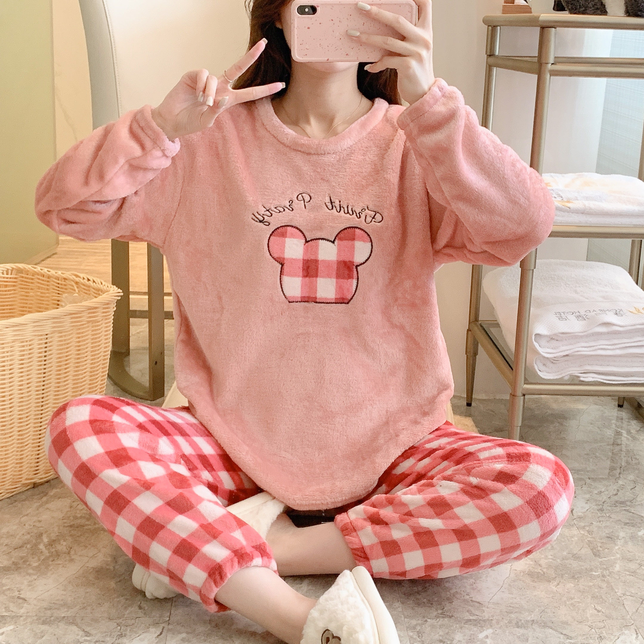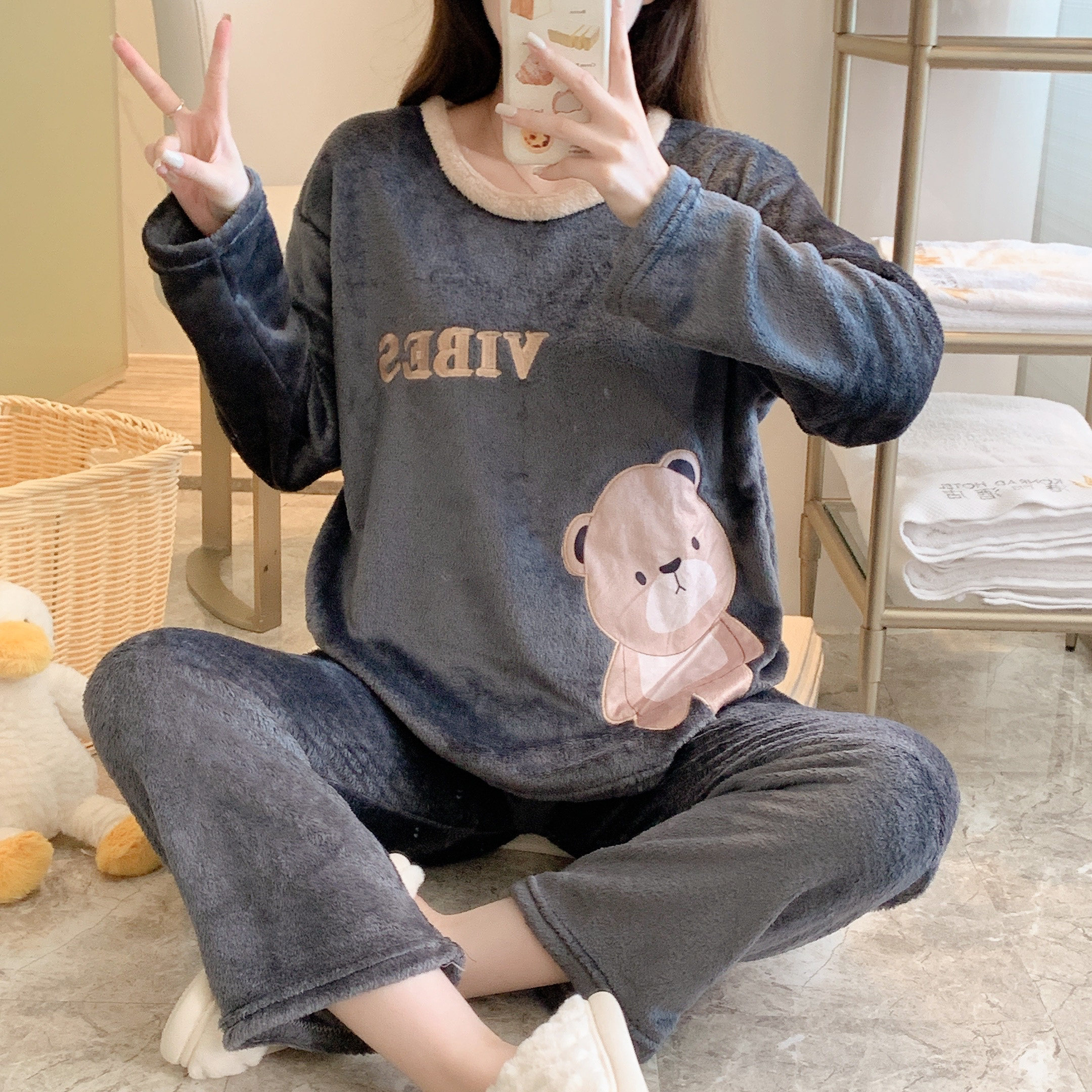 Демисезонная фланелевая мультяшная пижама для школьников и студентов, зимний коралловый бархатный комплект, коллекция 2022, увеличенная толщина