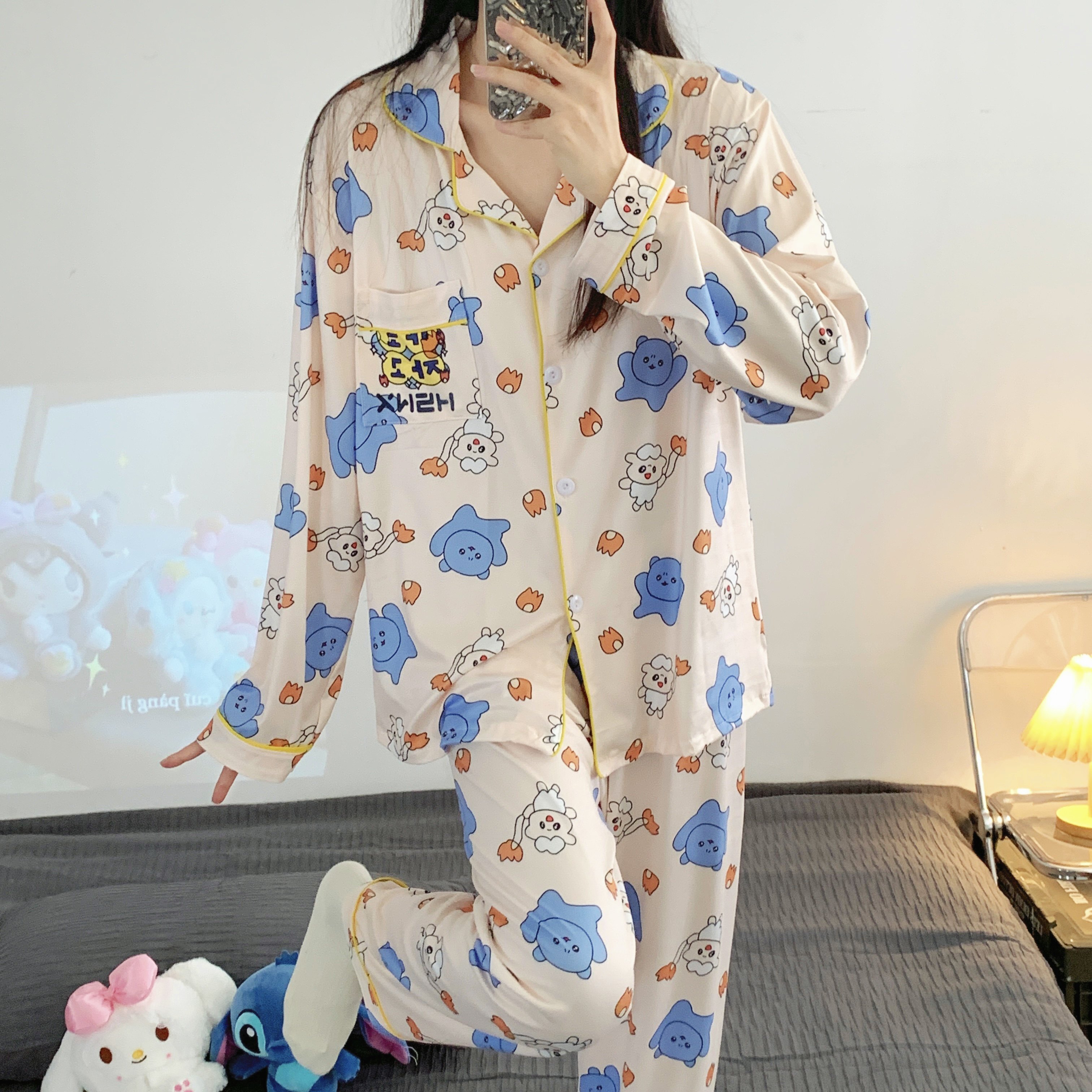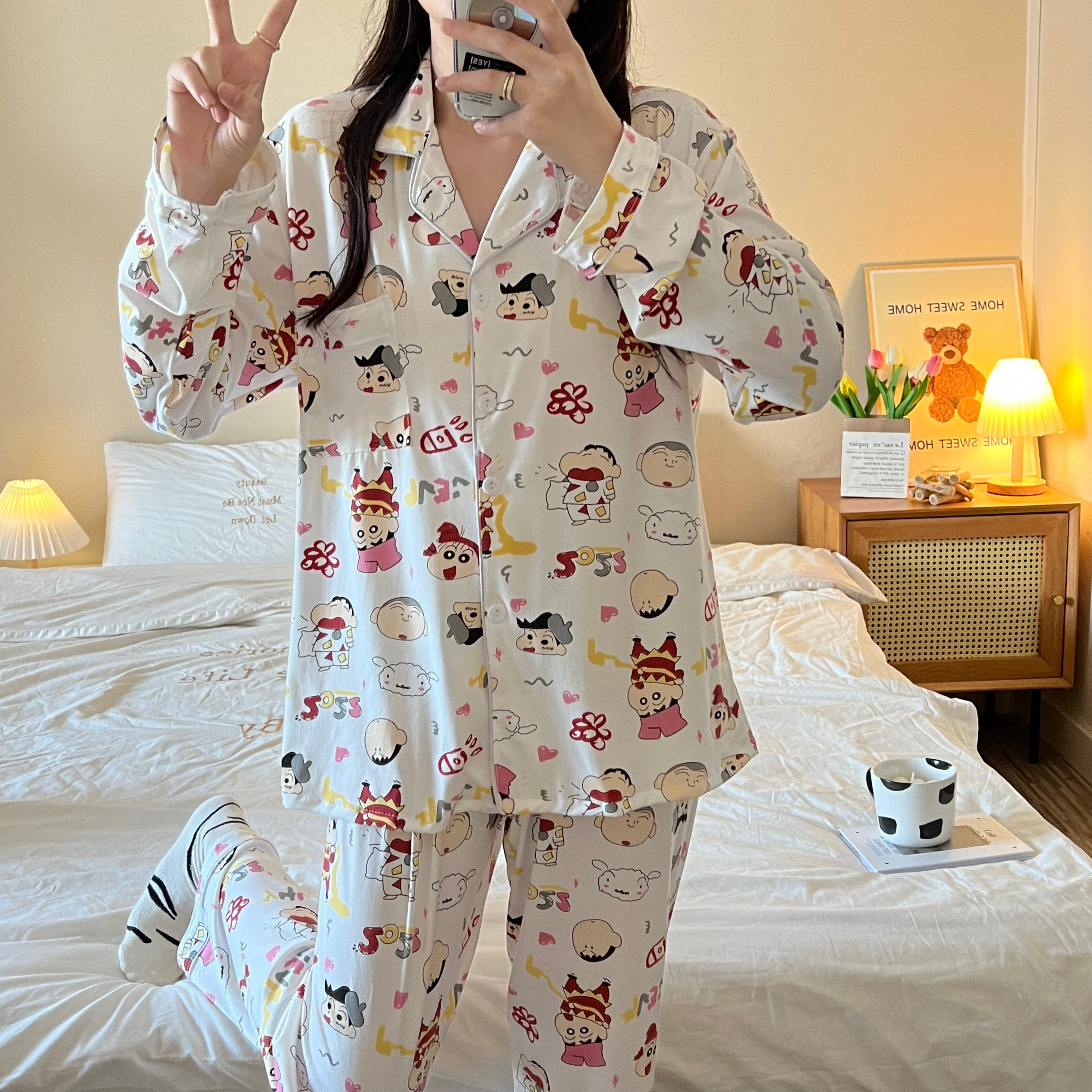 Мультяшная хлопковая демисезонная осенняя пижама, летний лонгслив, хлопковый кардиган, зимний комплект, коллекция 2022