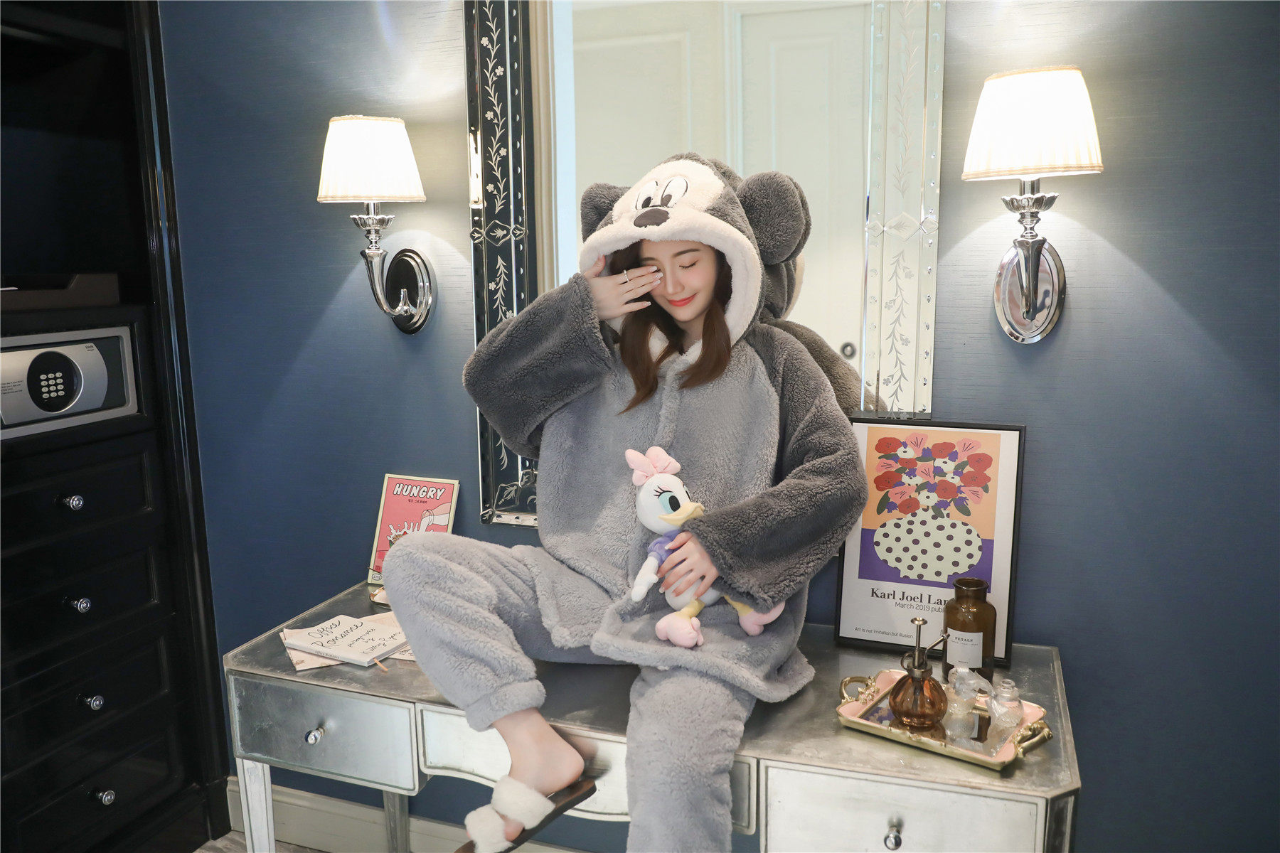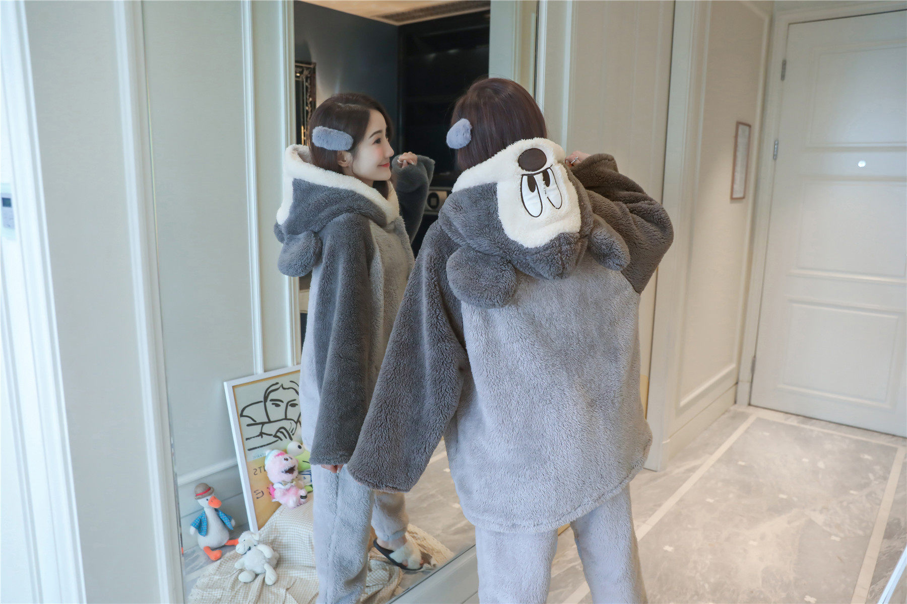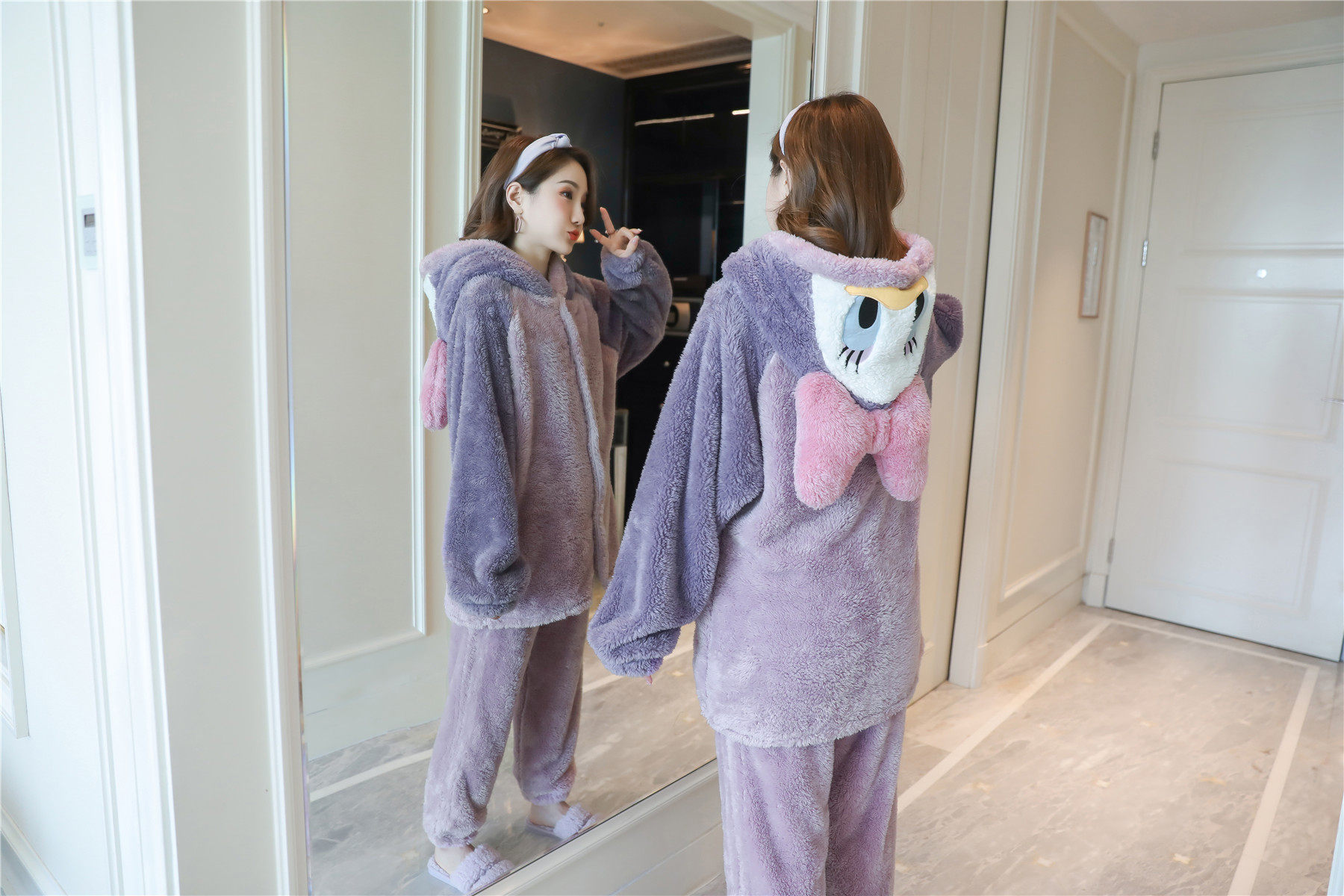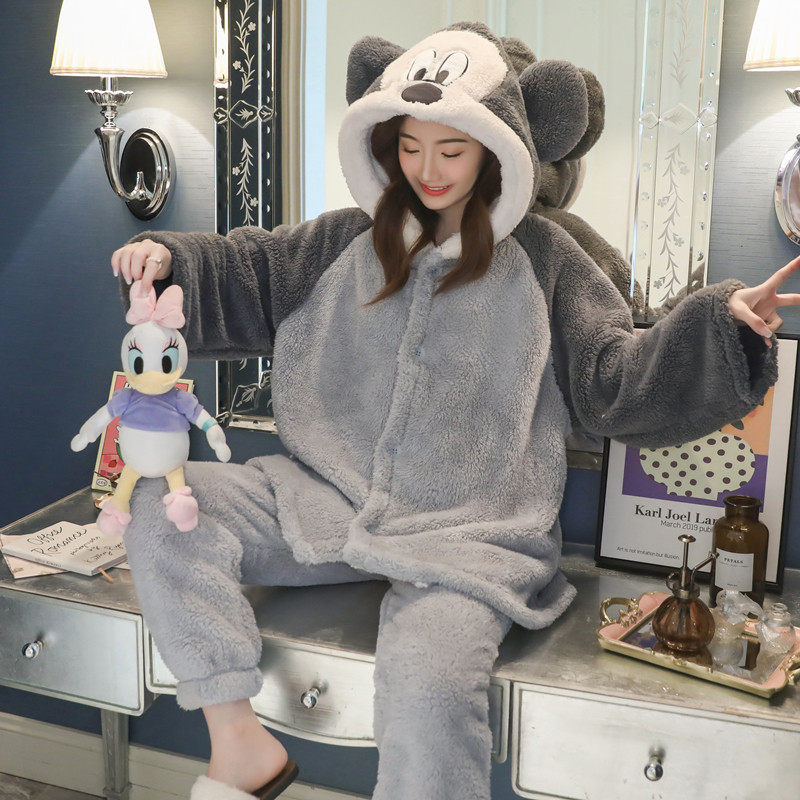 Фланелевая демисезонная утепленная удерживающая тепло мультяшная коралловая бархатная пижама с капюшоном, коллекция 2022, популярно в интернете