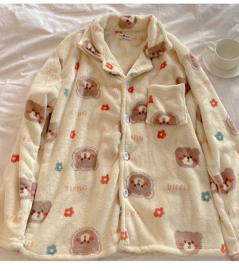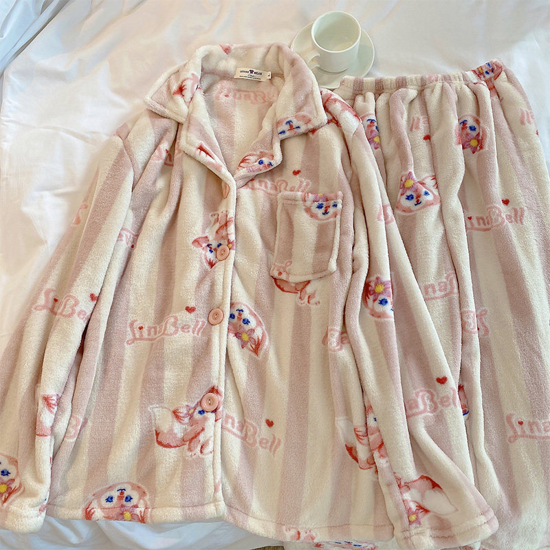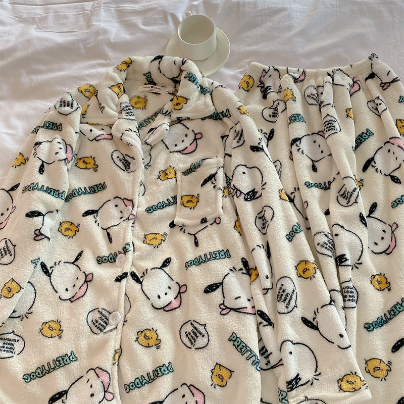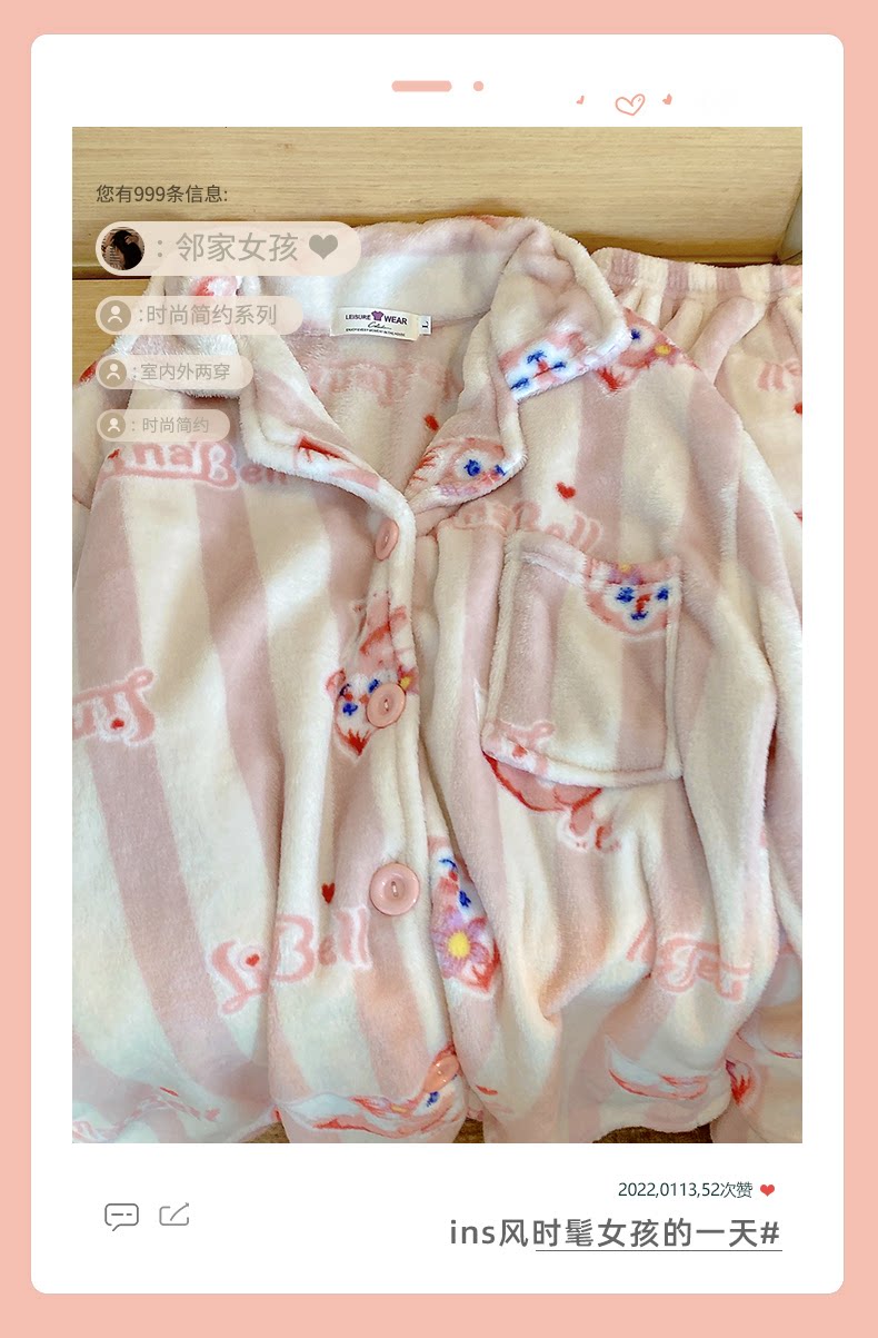 Фланелевый кардиган, демисезонная пижама, мультяшный коралловый бархатный комплект для школьников и студентов, популярно в интернете