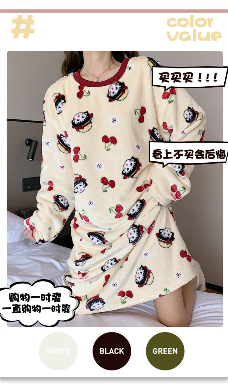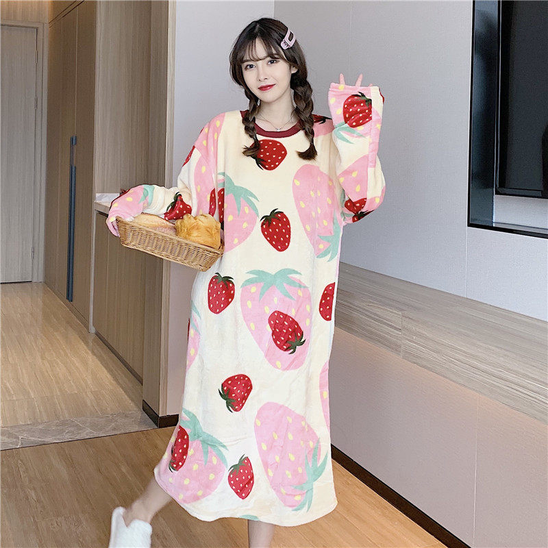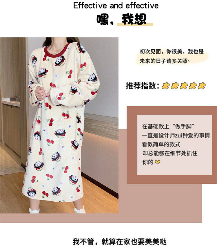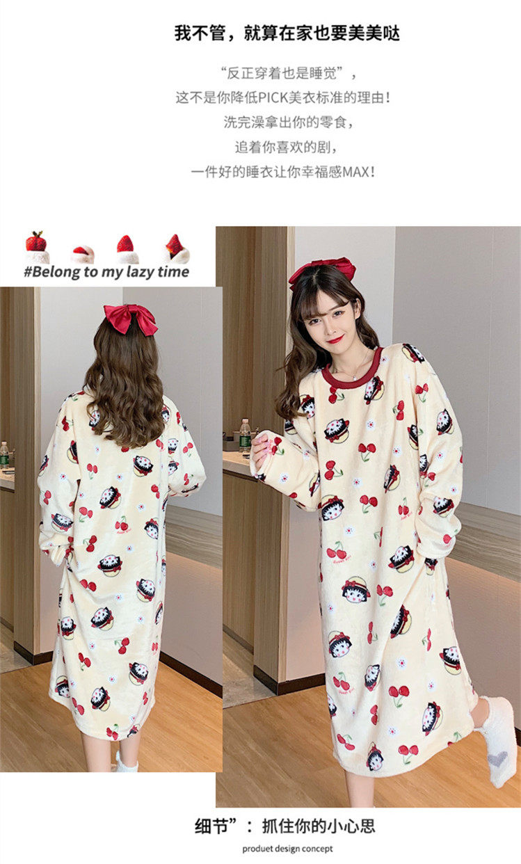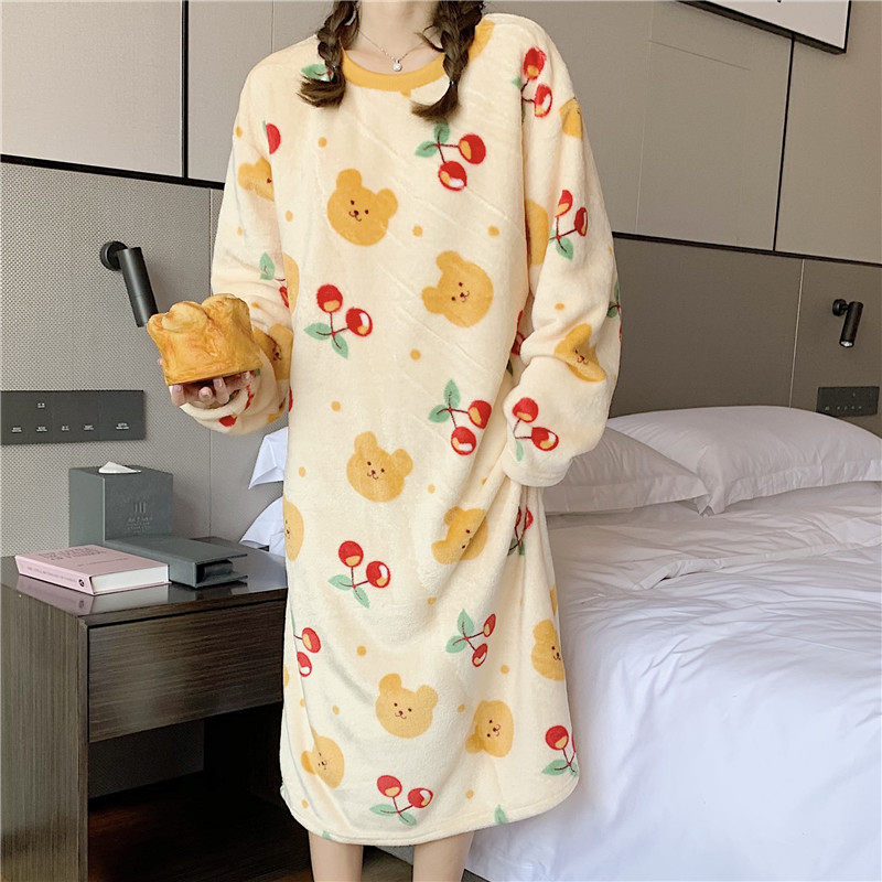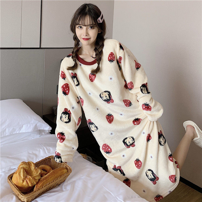 Фланелевая демисезонная пижама, мультяшная юбка, удерживающее тепло коралловое бархатное платье, увеличенная толщина