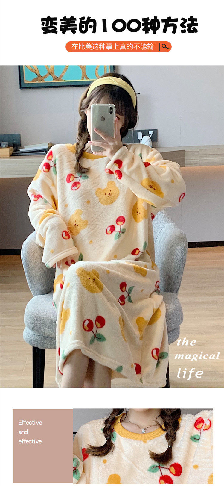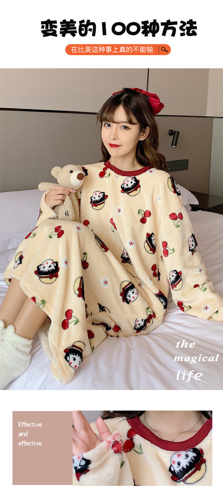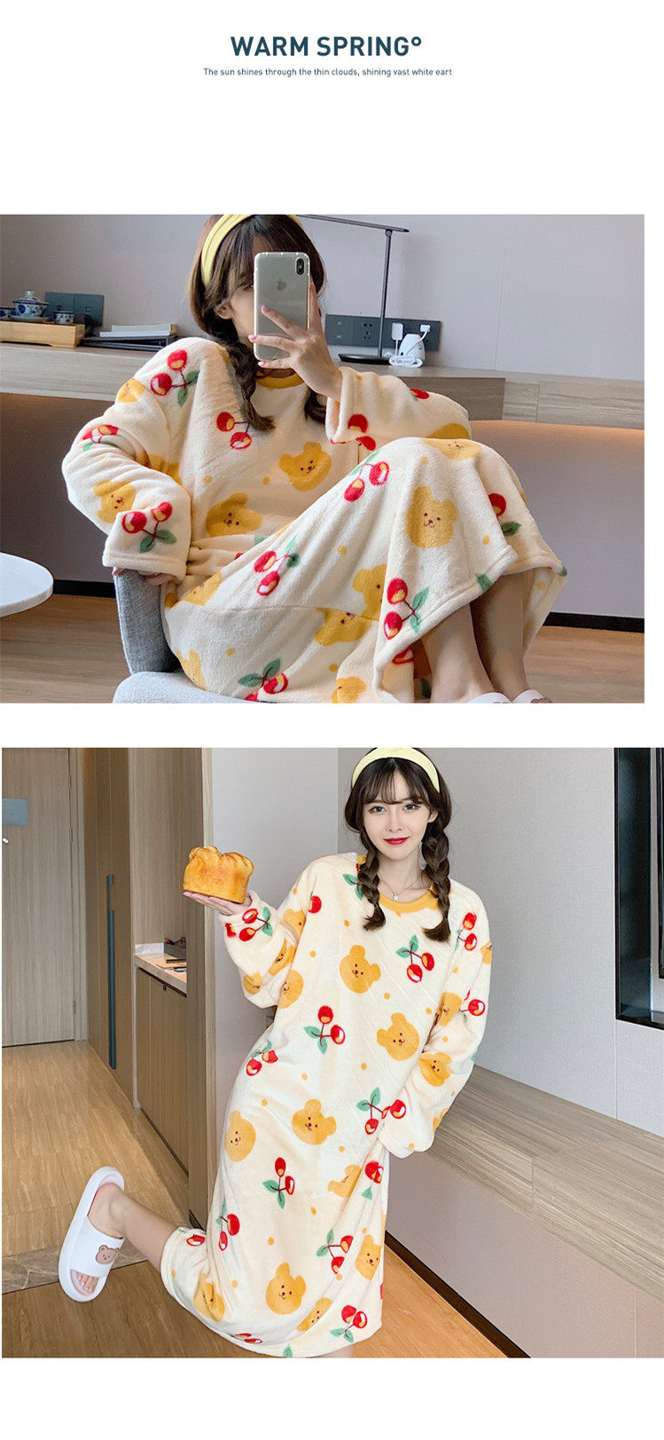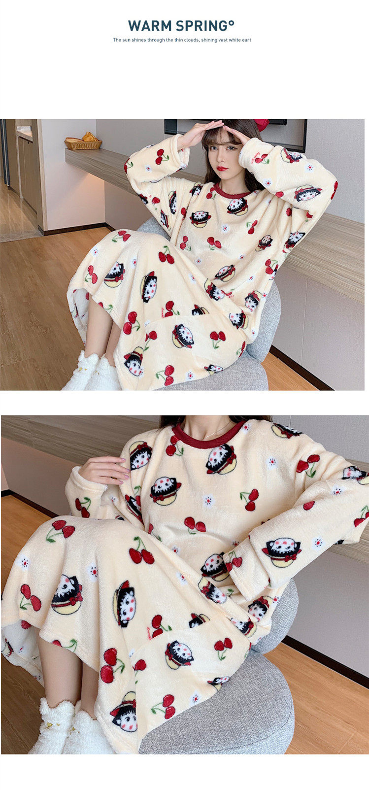 Фланелевая демисезонная пижама, мультяшная юбка, удерживающее тепло коралловое бархатное платье, увеличенная толщина