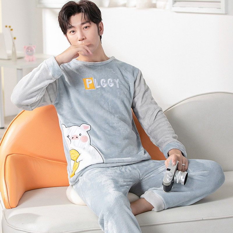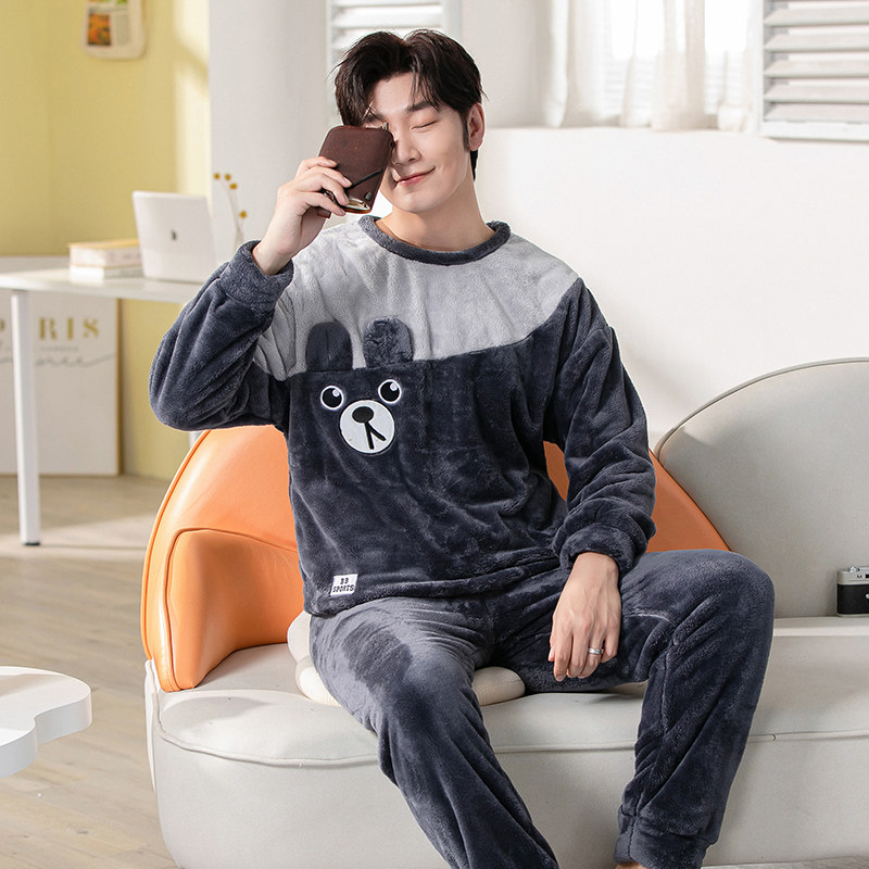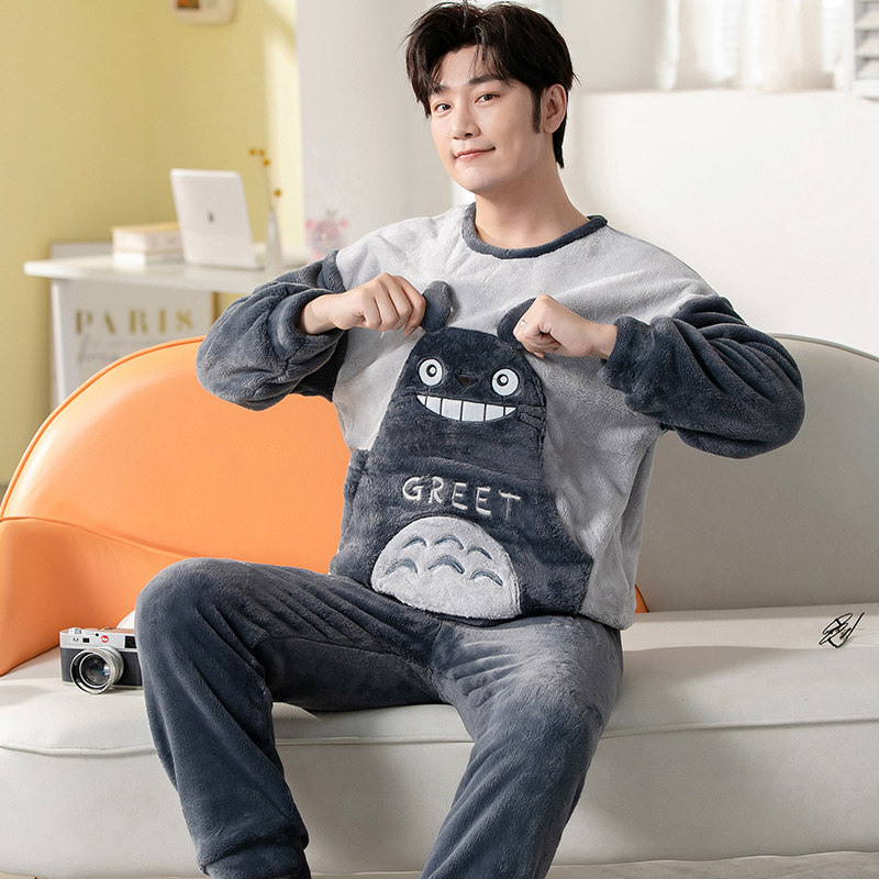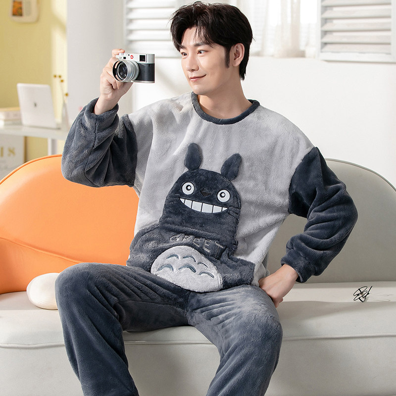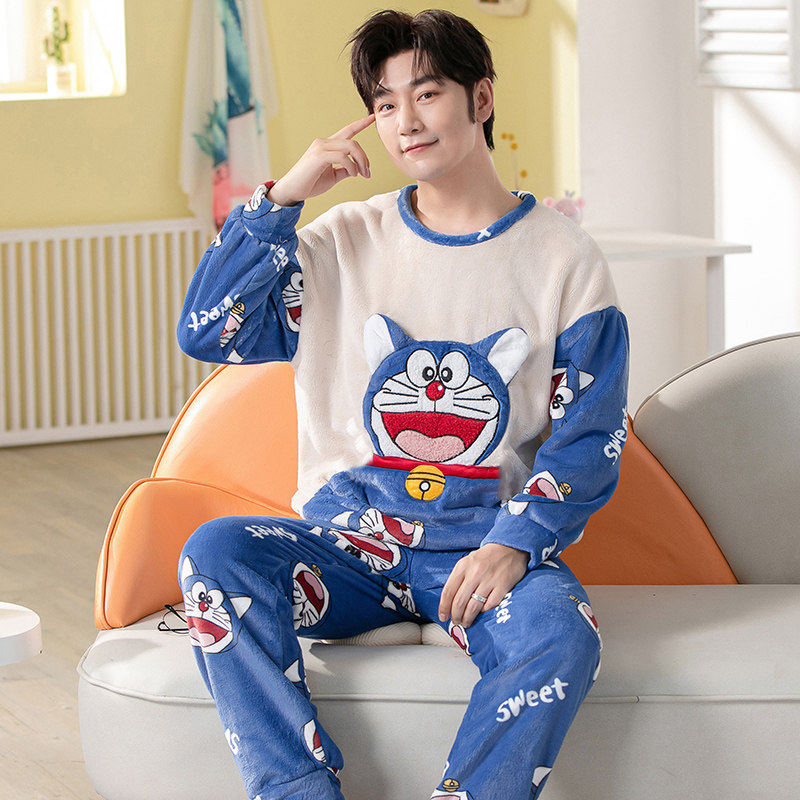 Демисезонная коралловая бархатная мультяшная фланелевая пижама, осенний комплект, увеличенная толщина