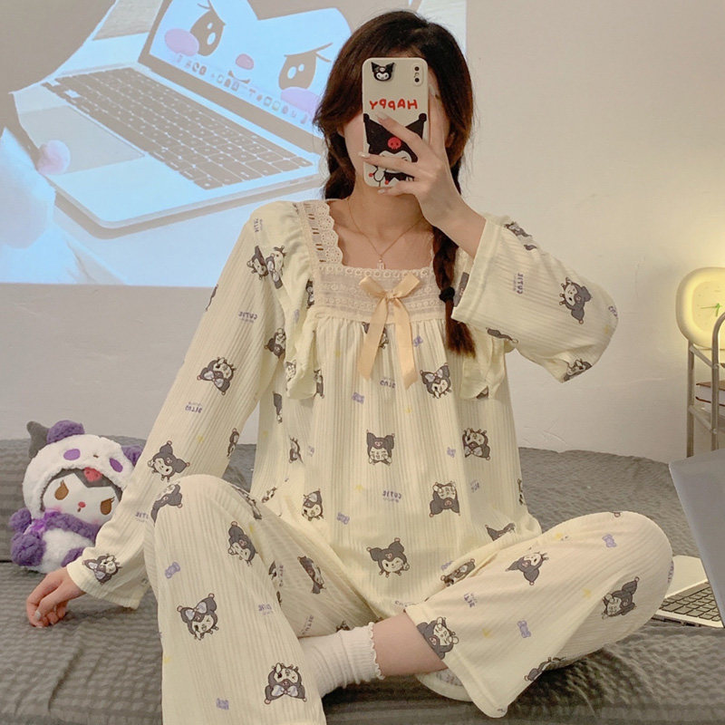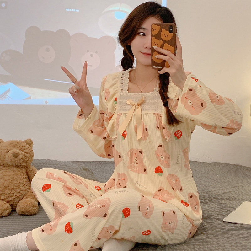 Брендовая пижама, хлопковый осенний лонгслив, милый тонкий комплект, популярно в интернете