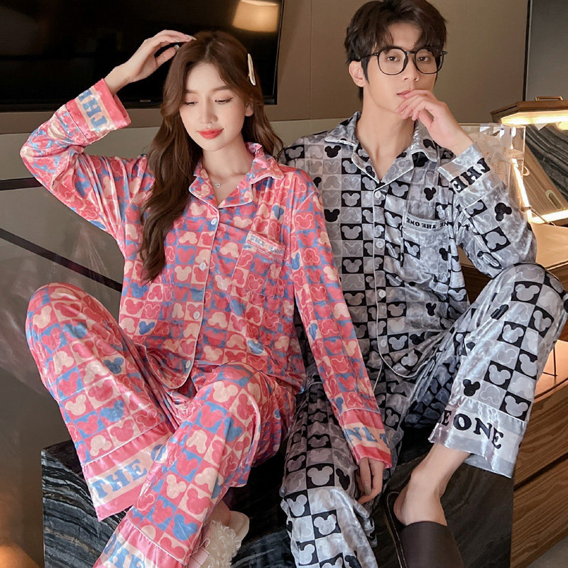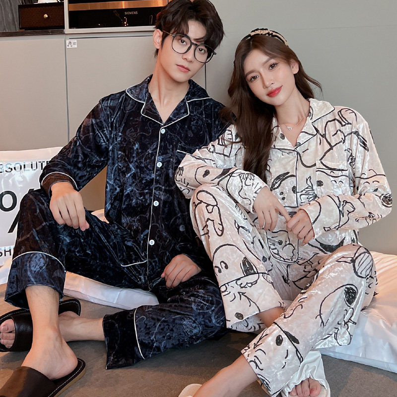 Бархатная осенняя пижама, лонгслив, мужской мультяшный зимний кардиган, комплект, для влюбленных, изысканный стиль
