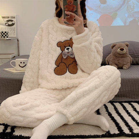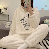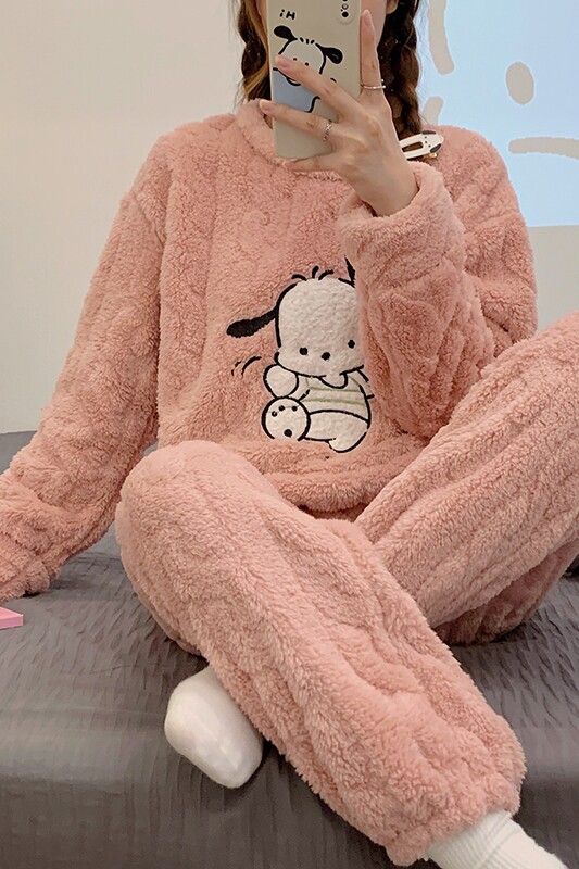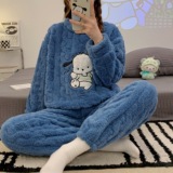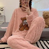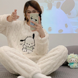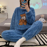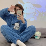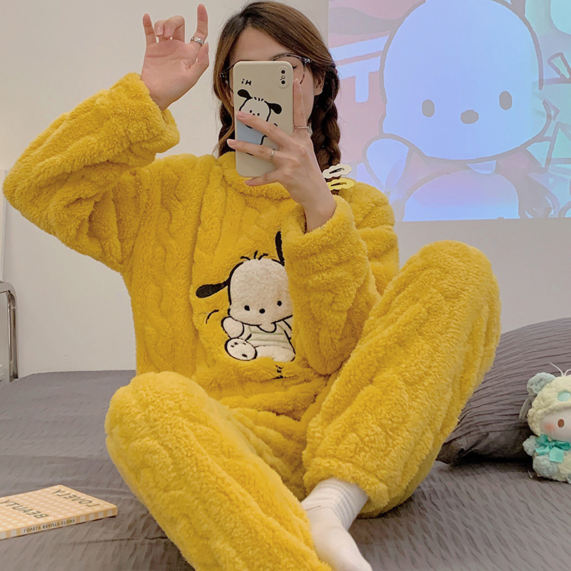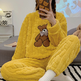 Коралловая бархатная пижама, зимний мультяшный удерживающий тепло демисезонный лонгслив, фланелевый комплект, увеличенная толщина