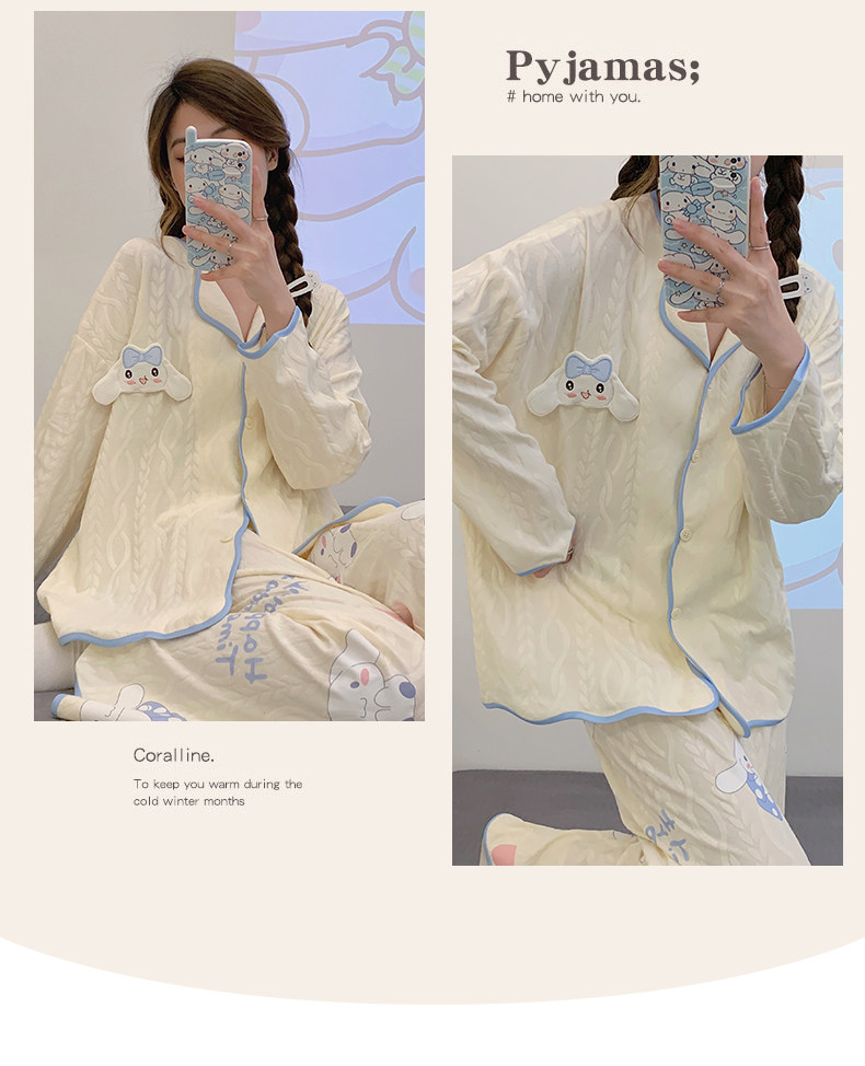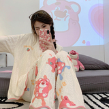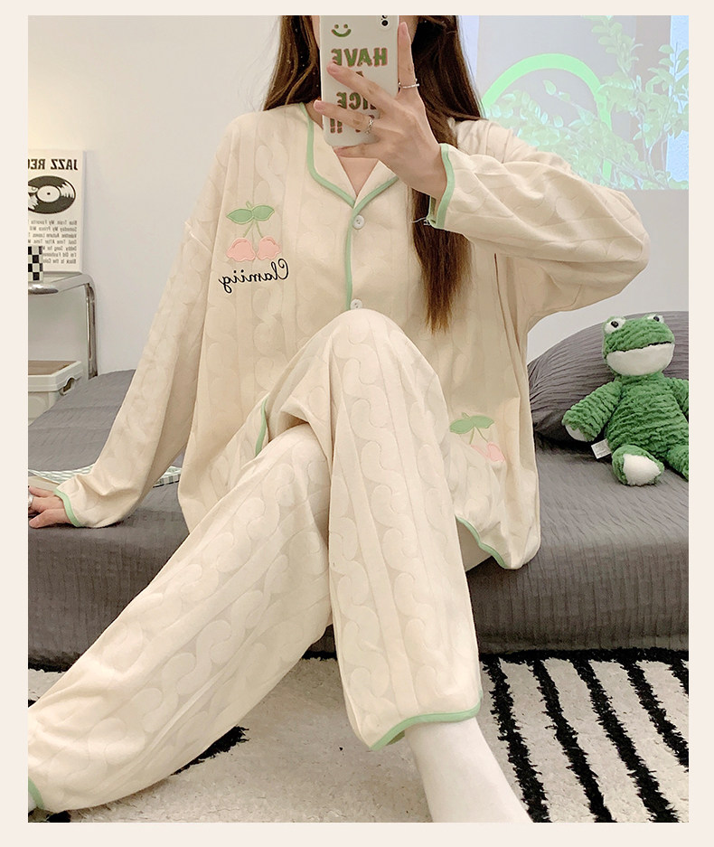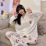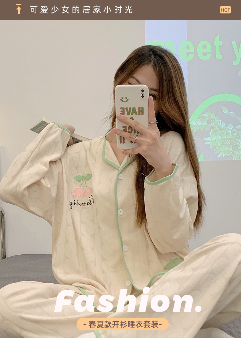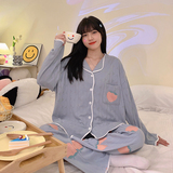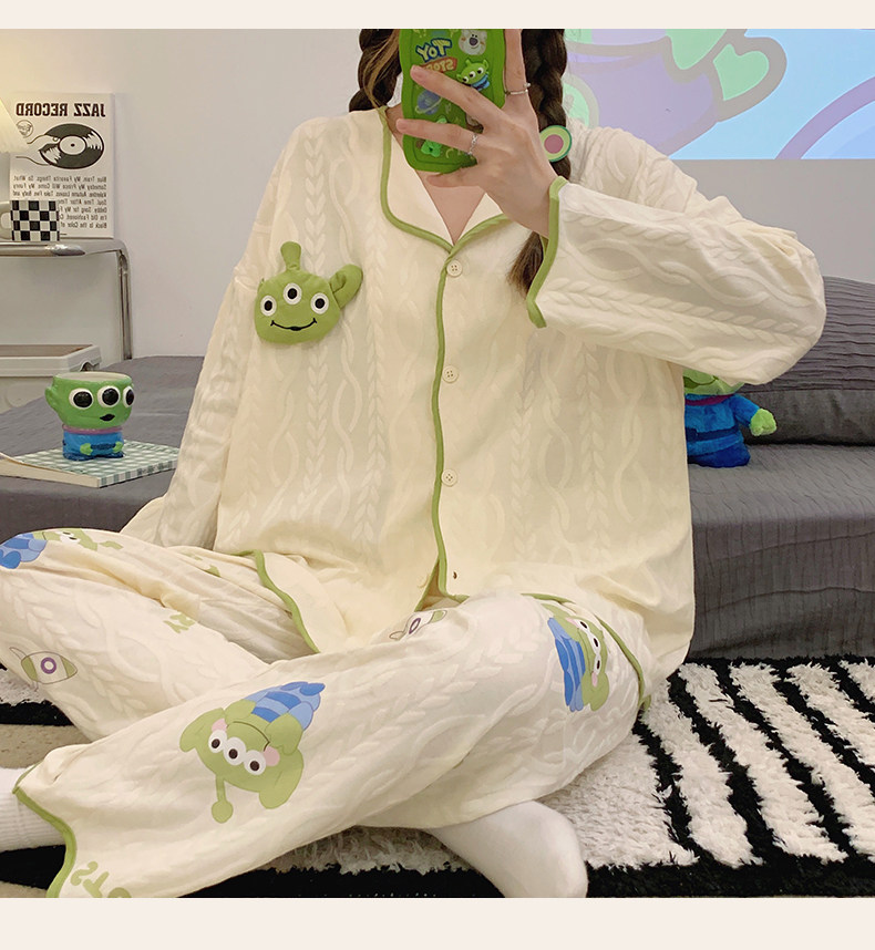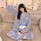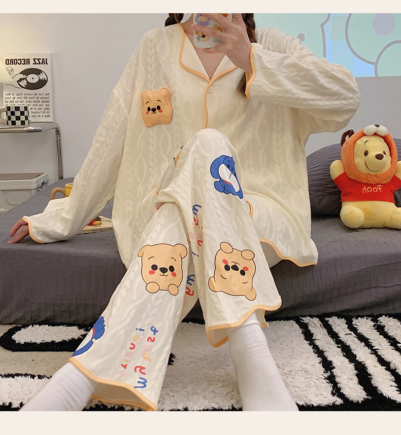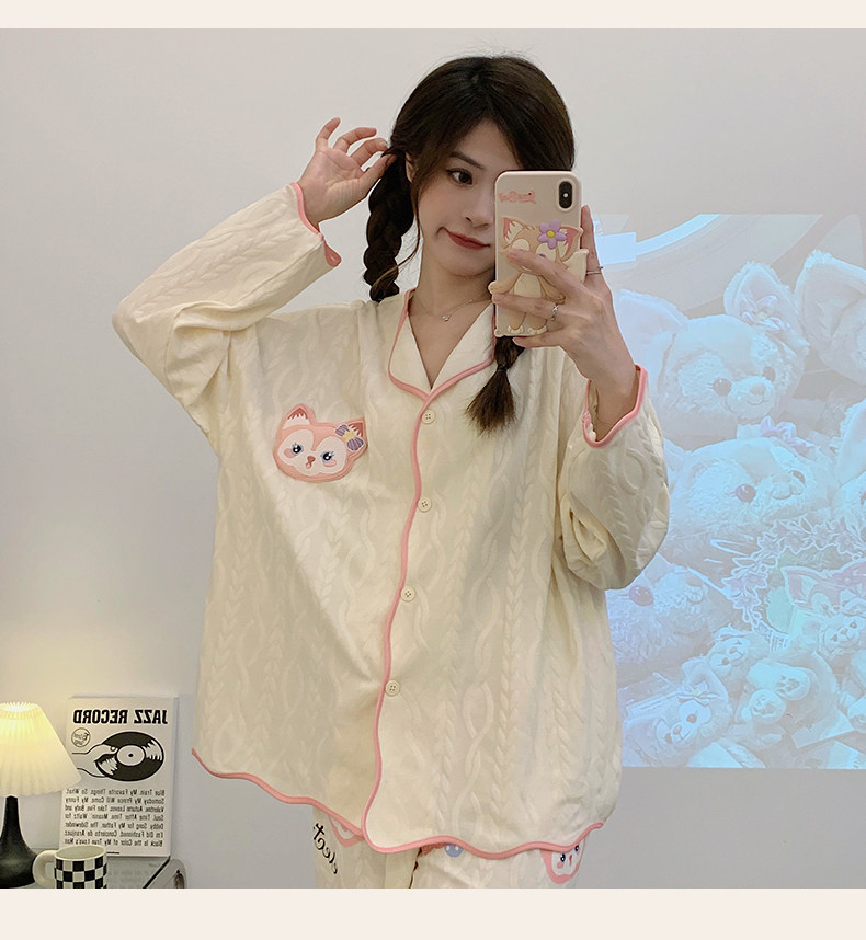 Пижама, весенний хлопковый милый брендовый лонгслив, демисезонный комплект, большой размер