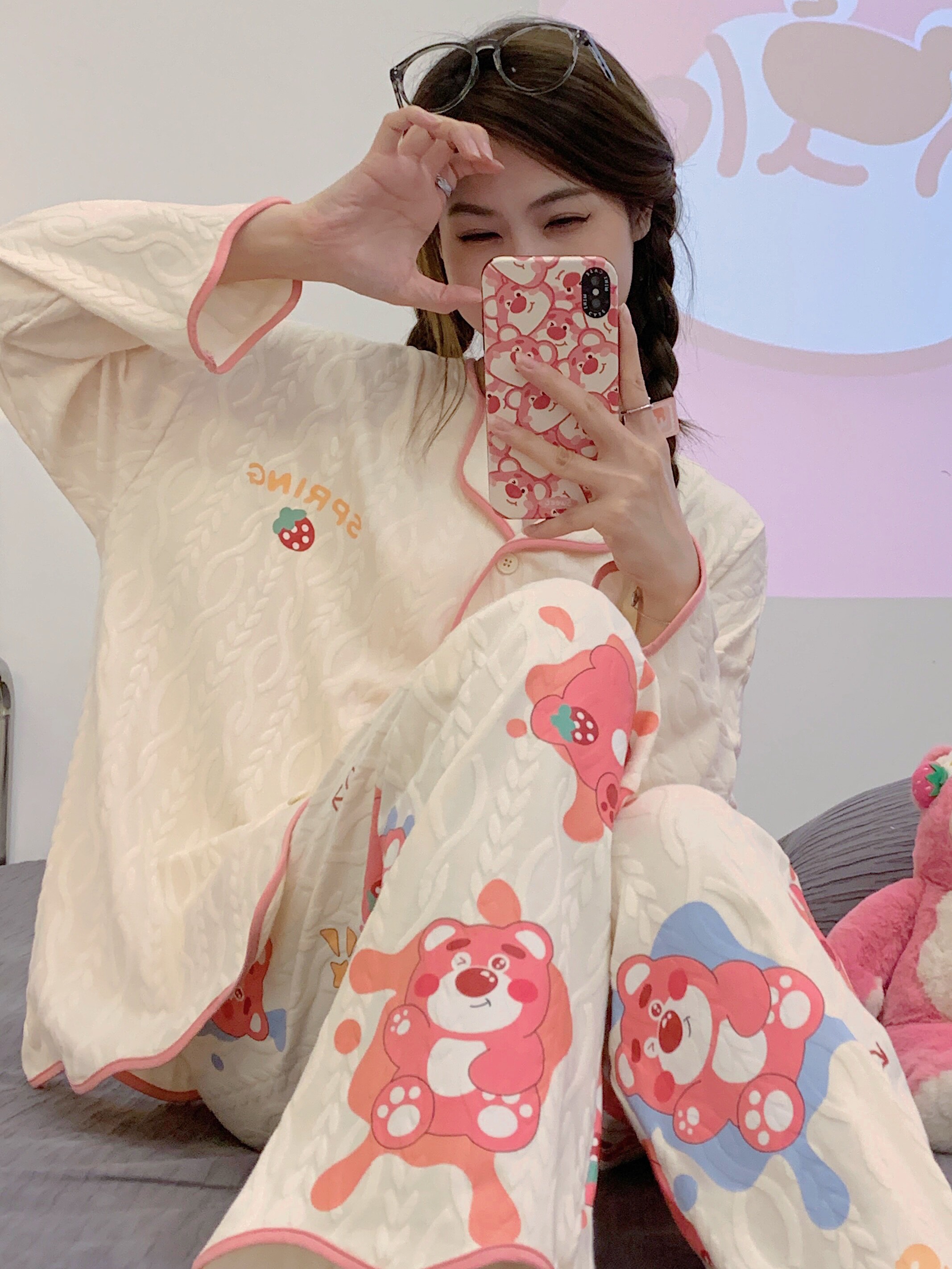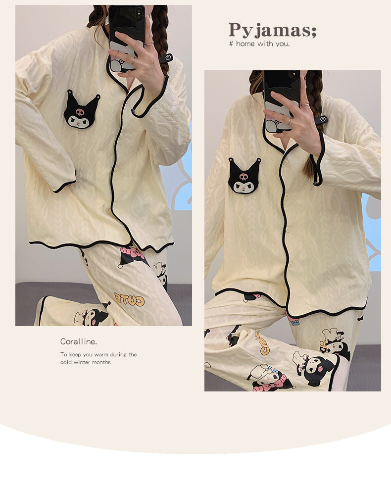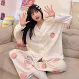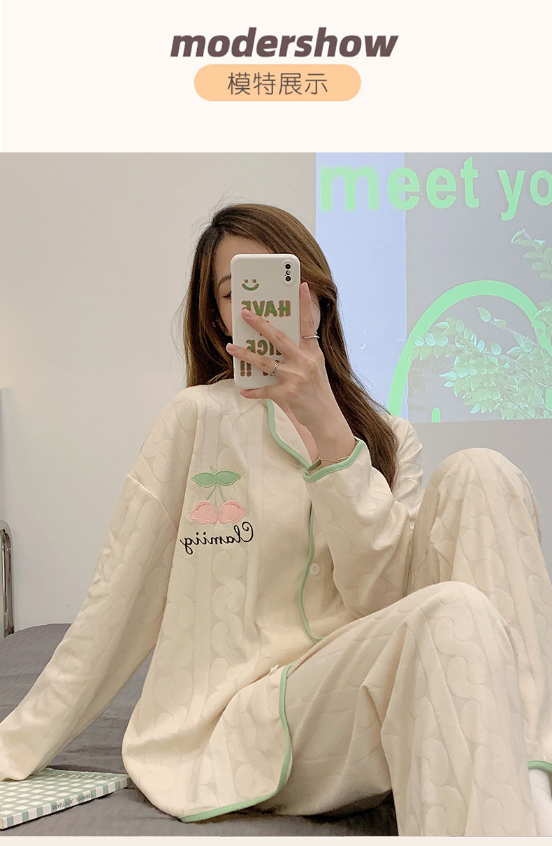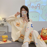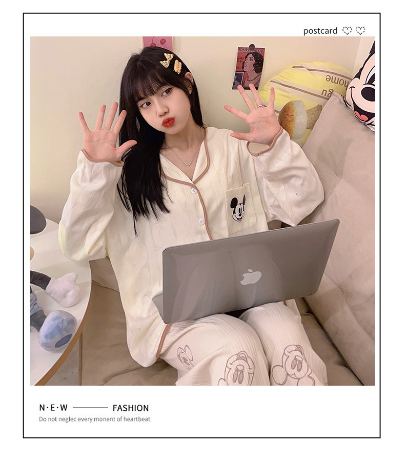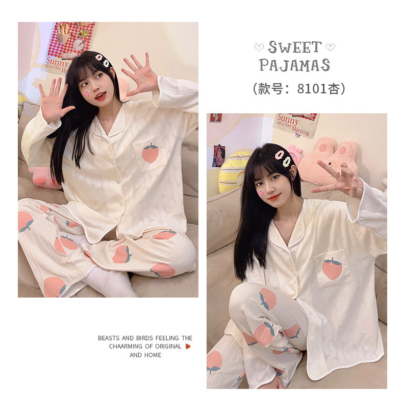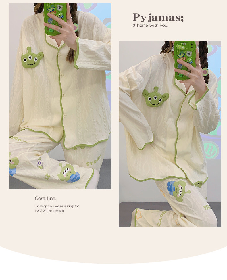 Пижама, весенний хлопковый милый брендовый лонгслив, демисезонный комплект, большой размер