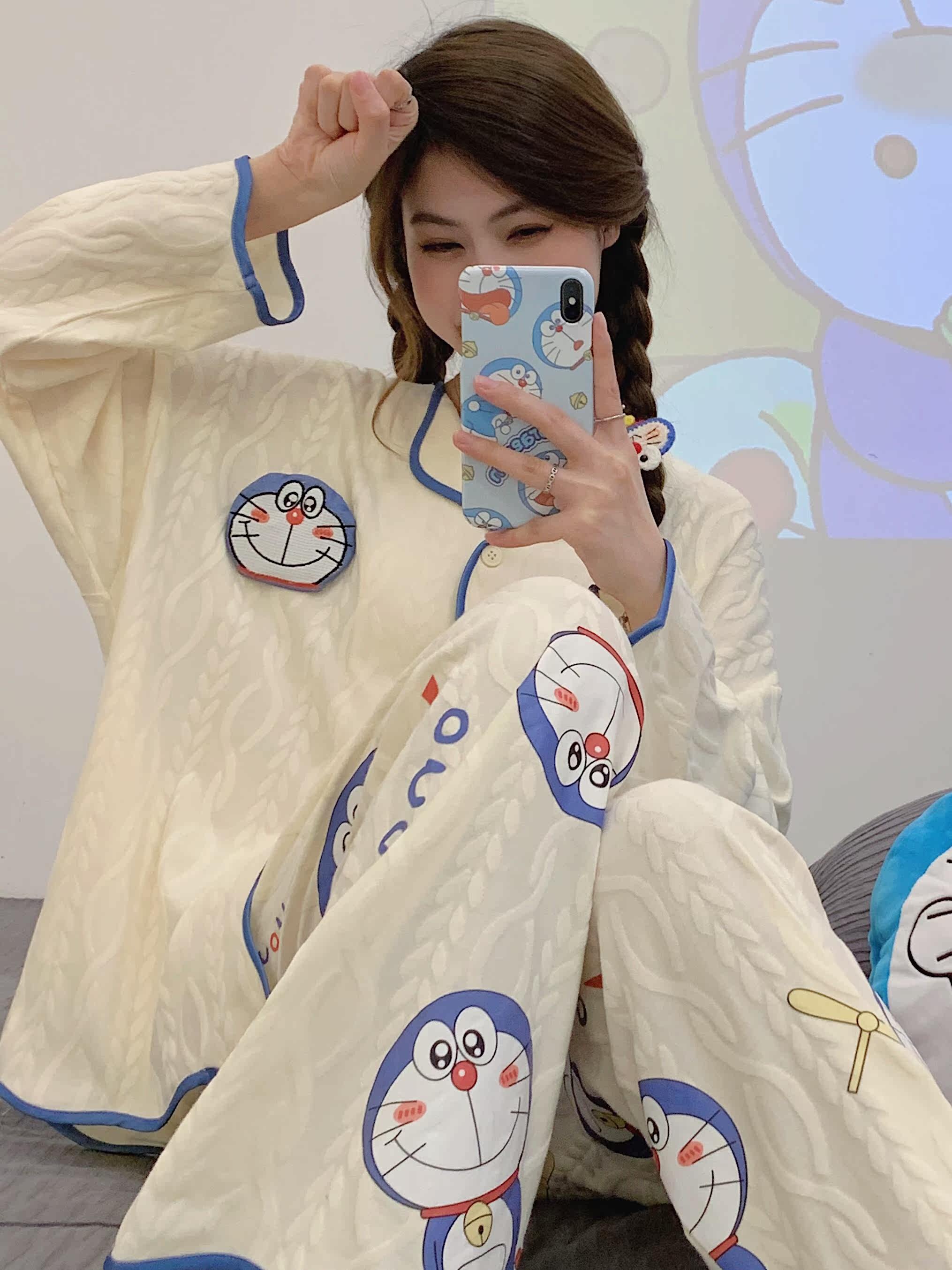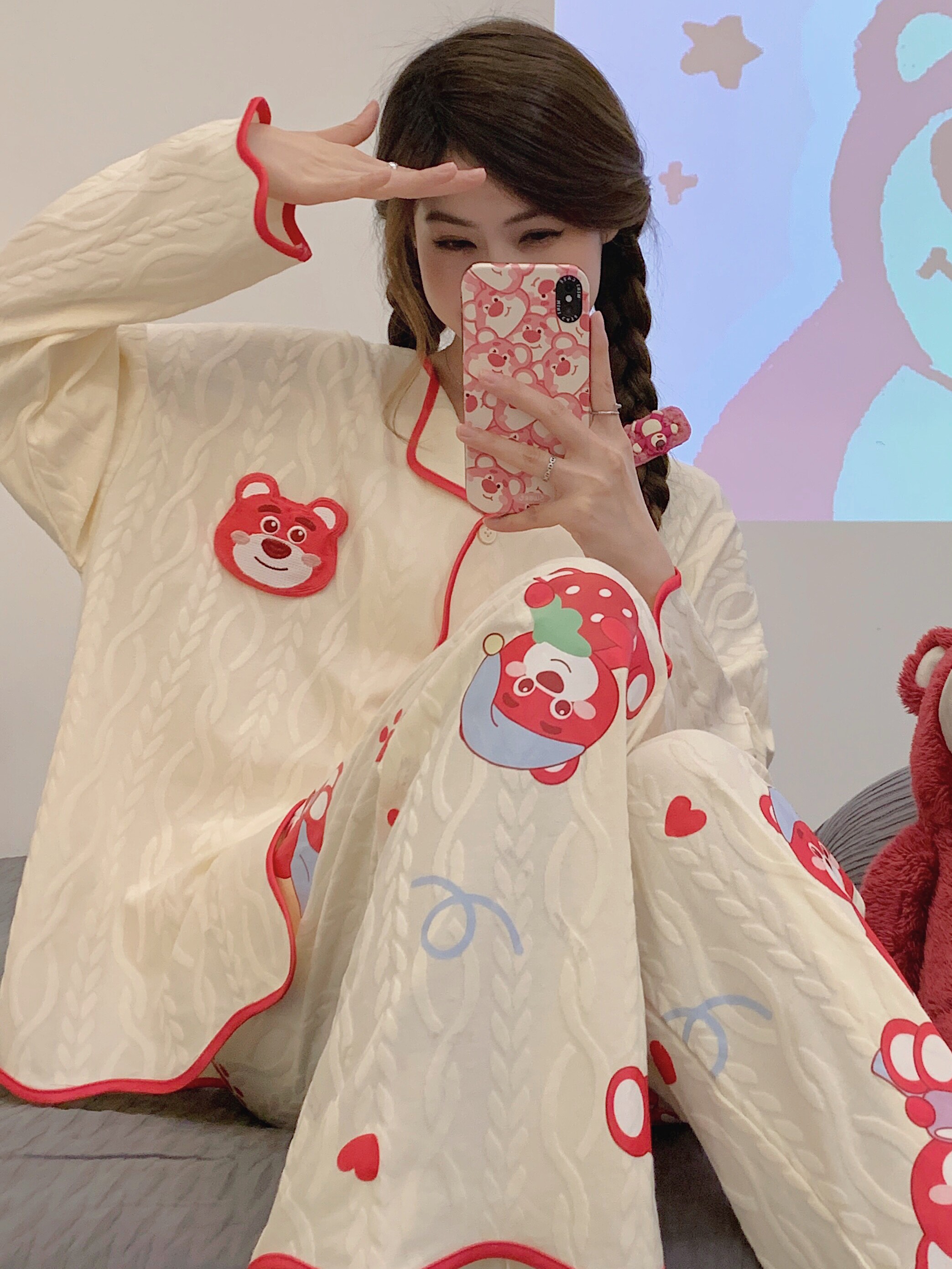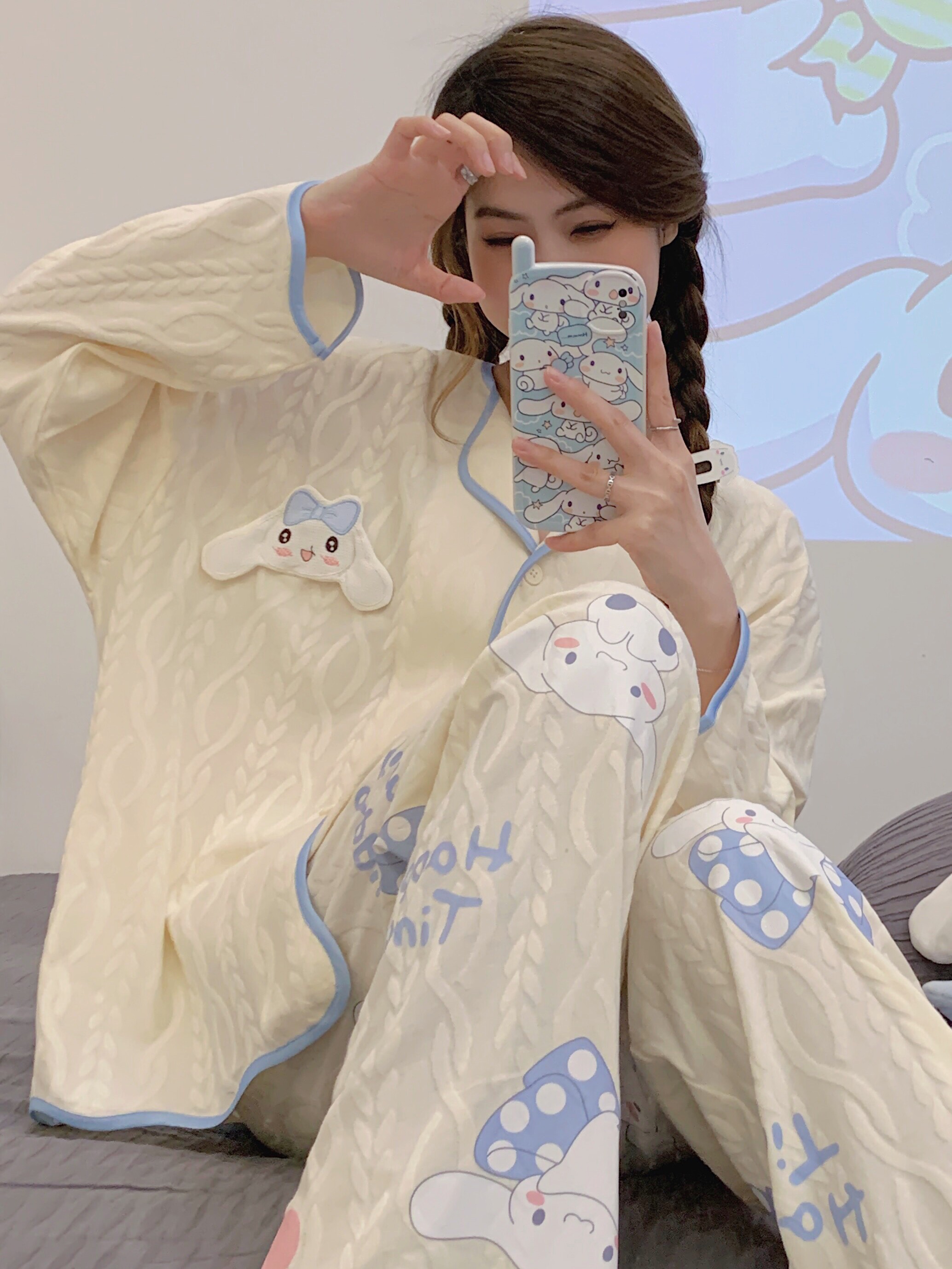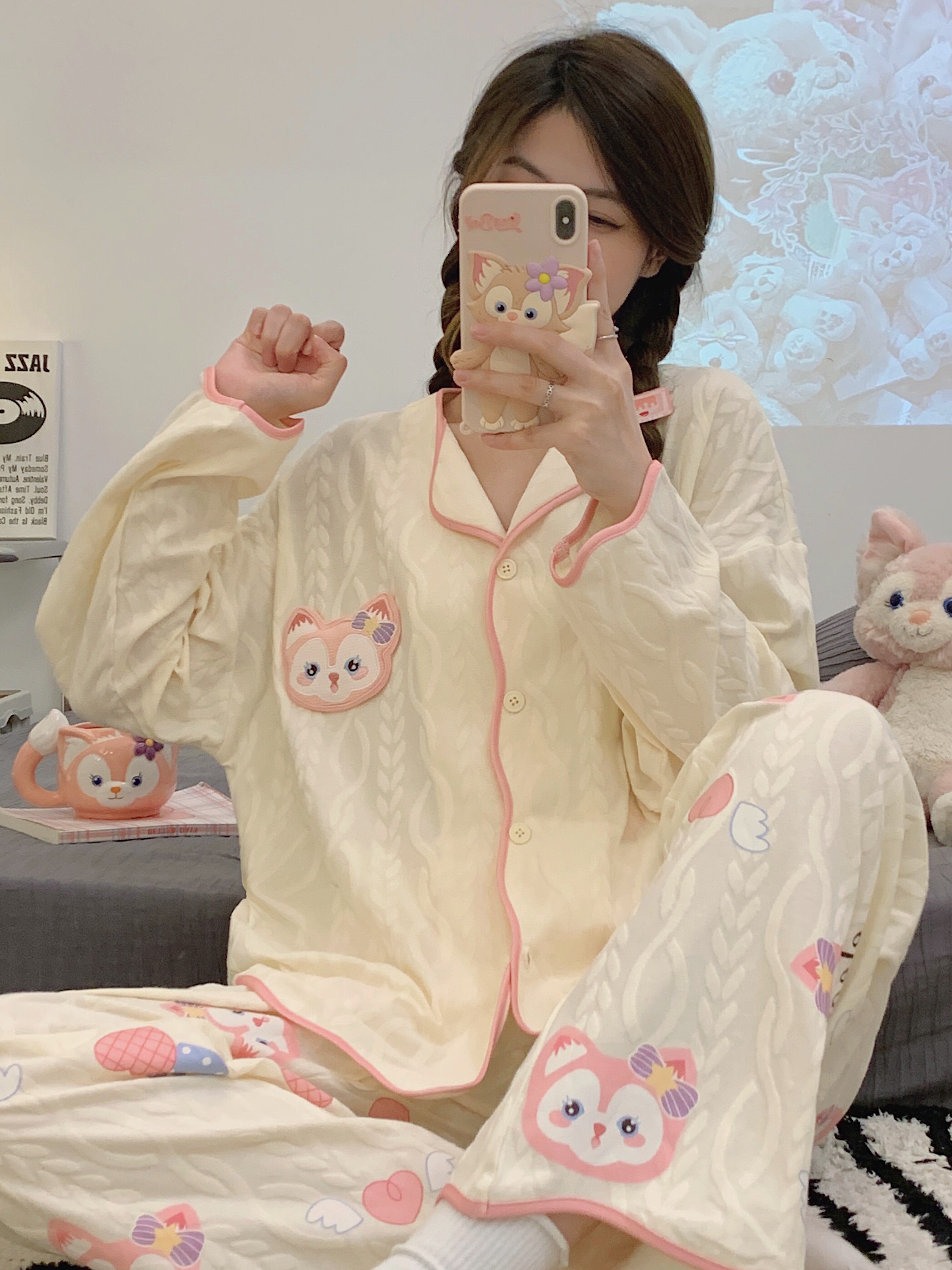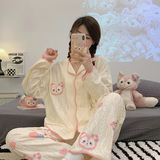 Пижама, весенний хлопковый милый брендовый лонгслив, демисезонный комплект, большой размер