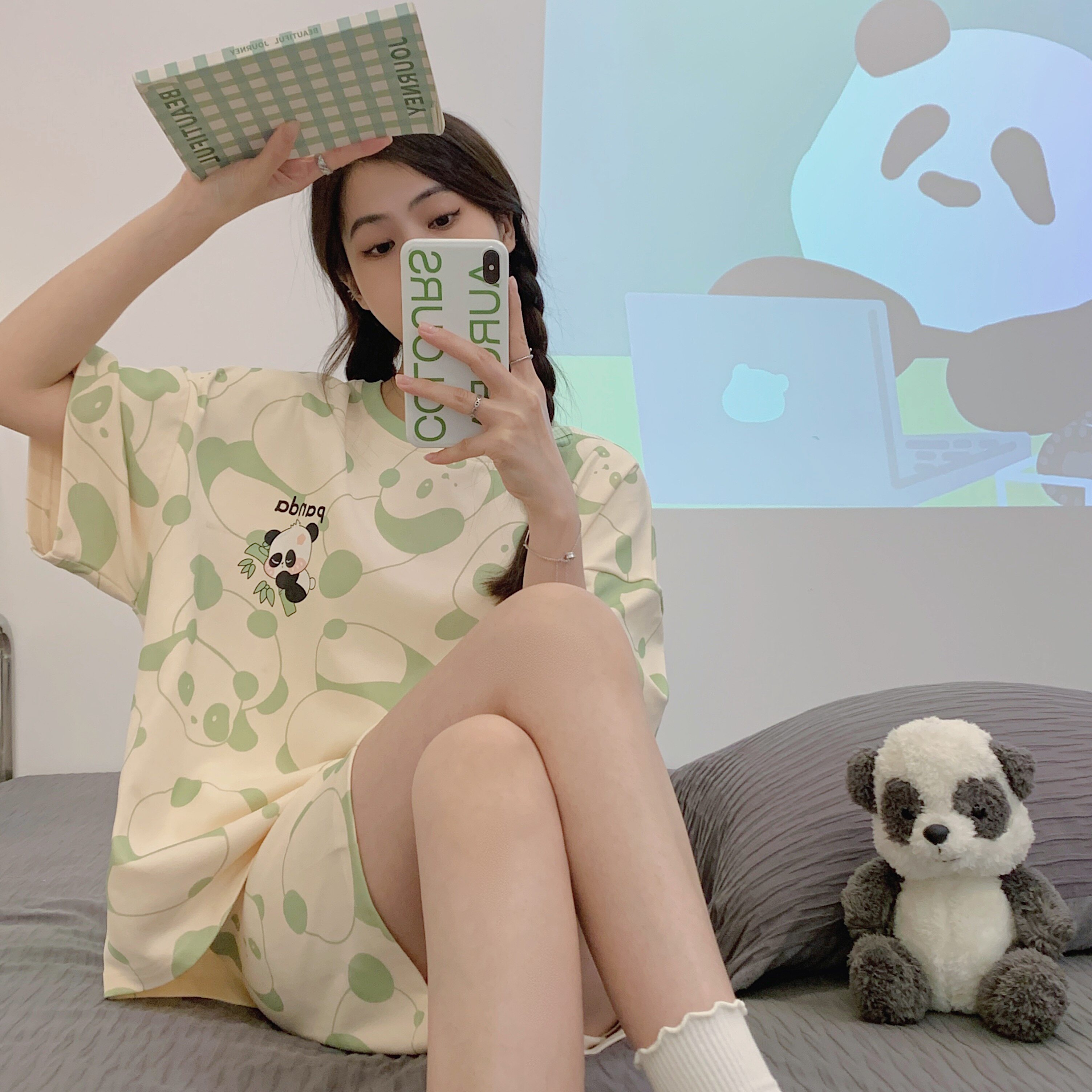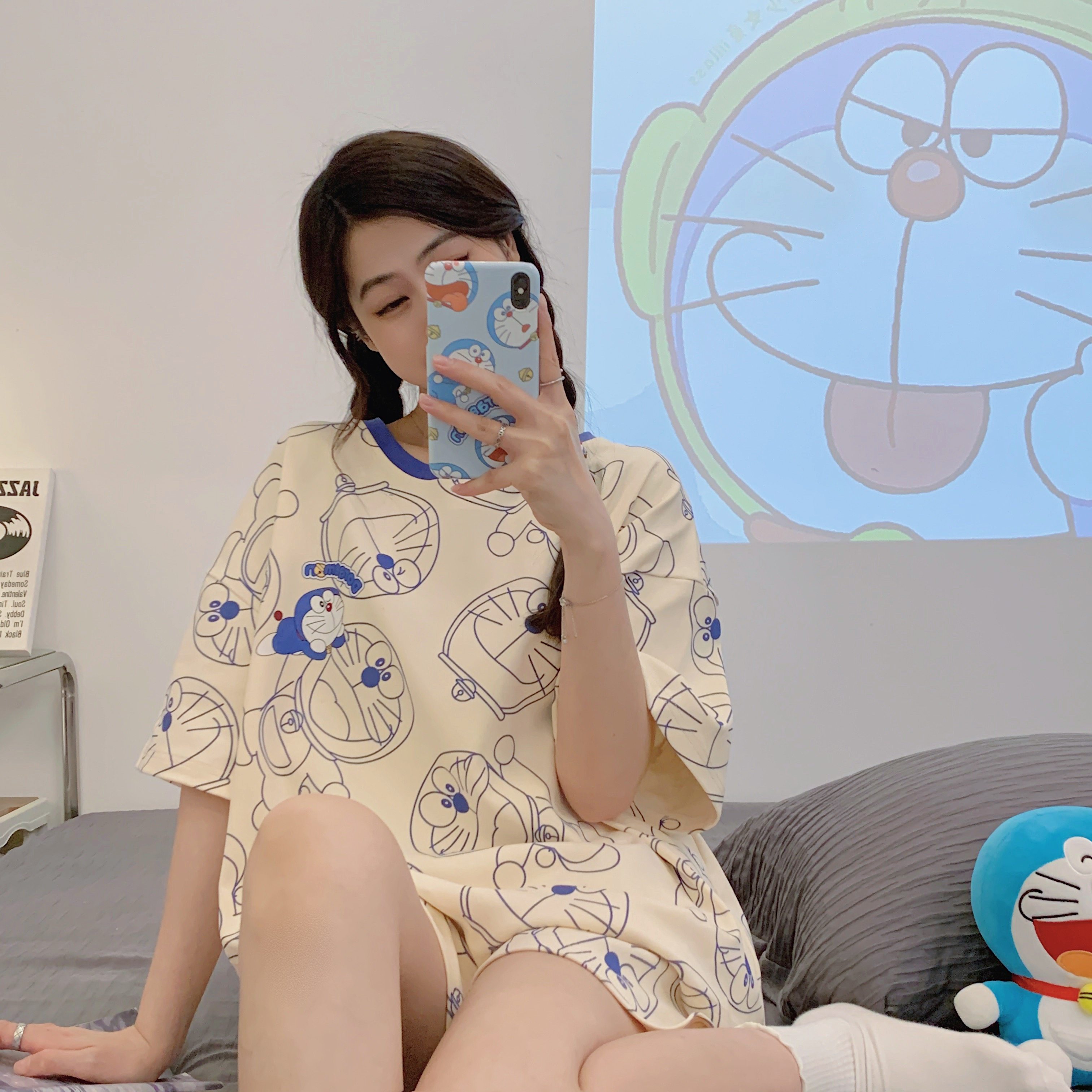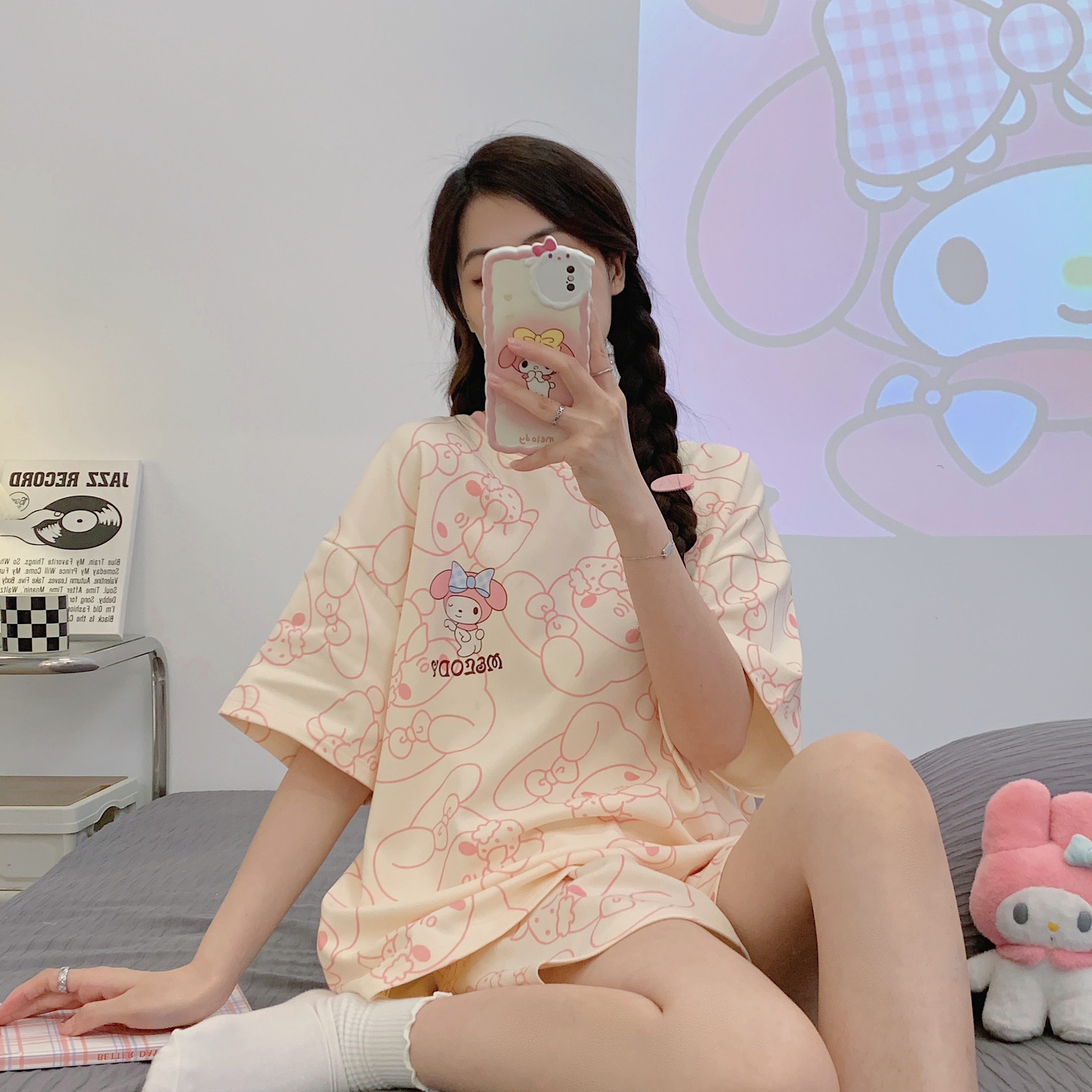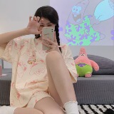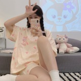 Мультяшная милая летняя пижама, хлопковый тонкий комплект для школьников и студентов, короткий рукав