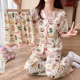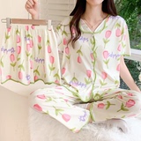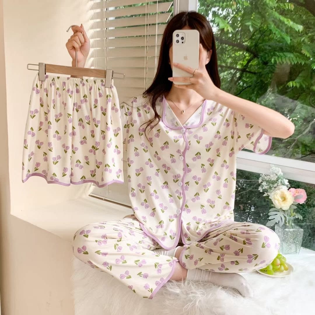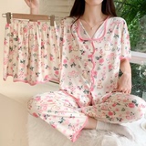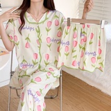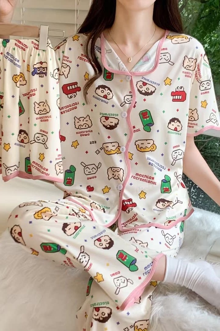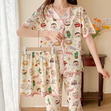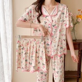 Хлопковая пижама, штаны, летний тонкий комплект, популярно в интернете, короткий рукав, 3 предмета