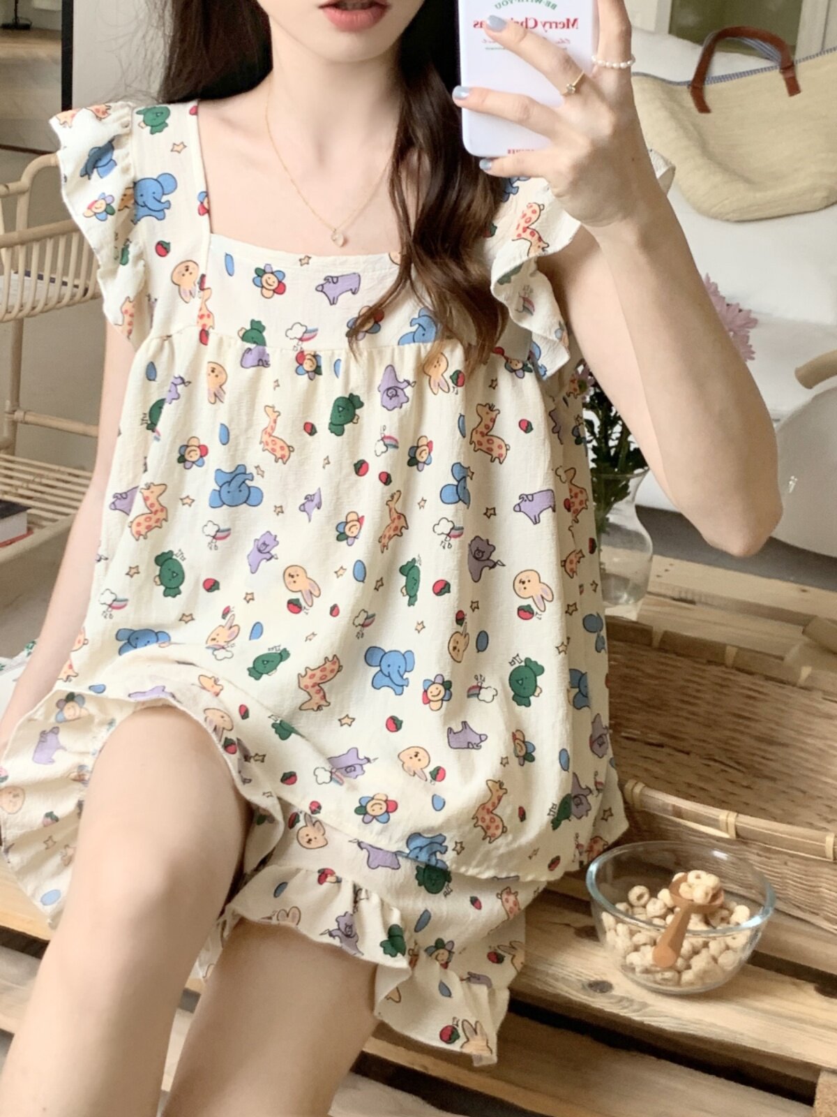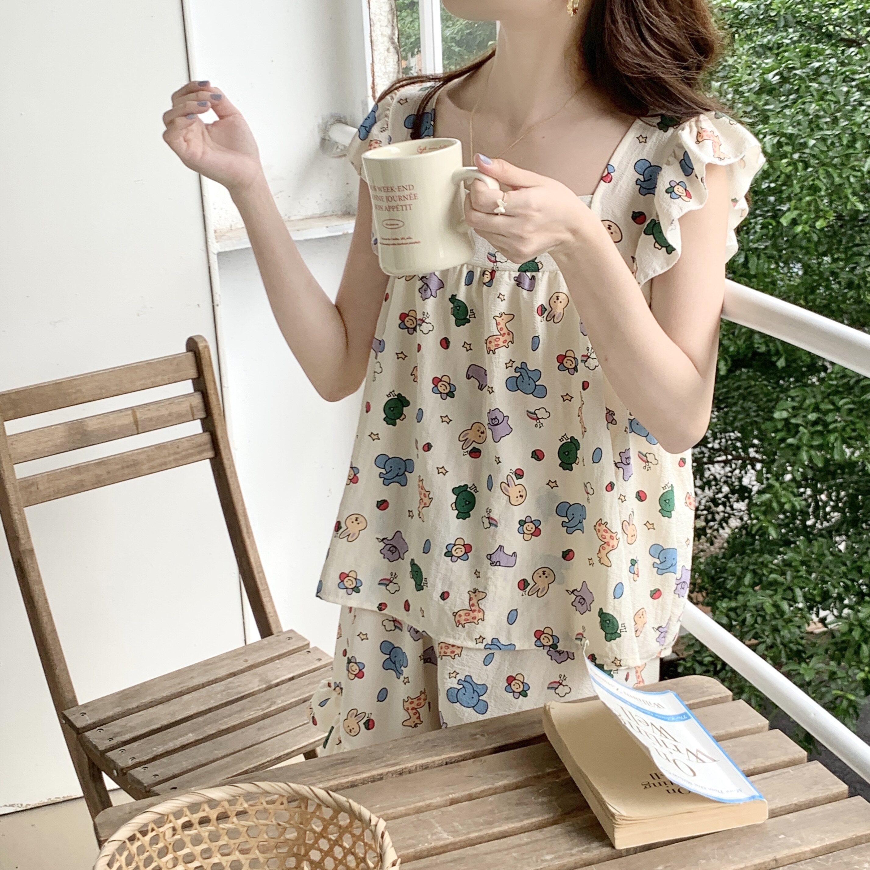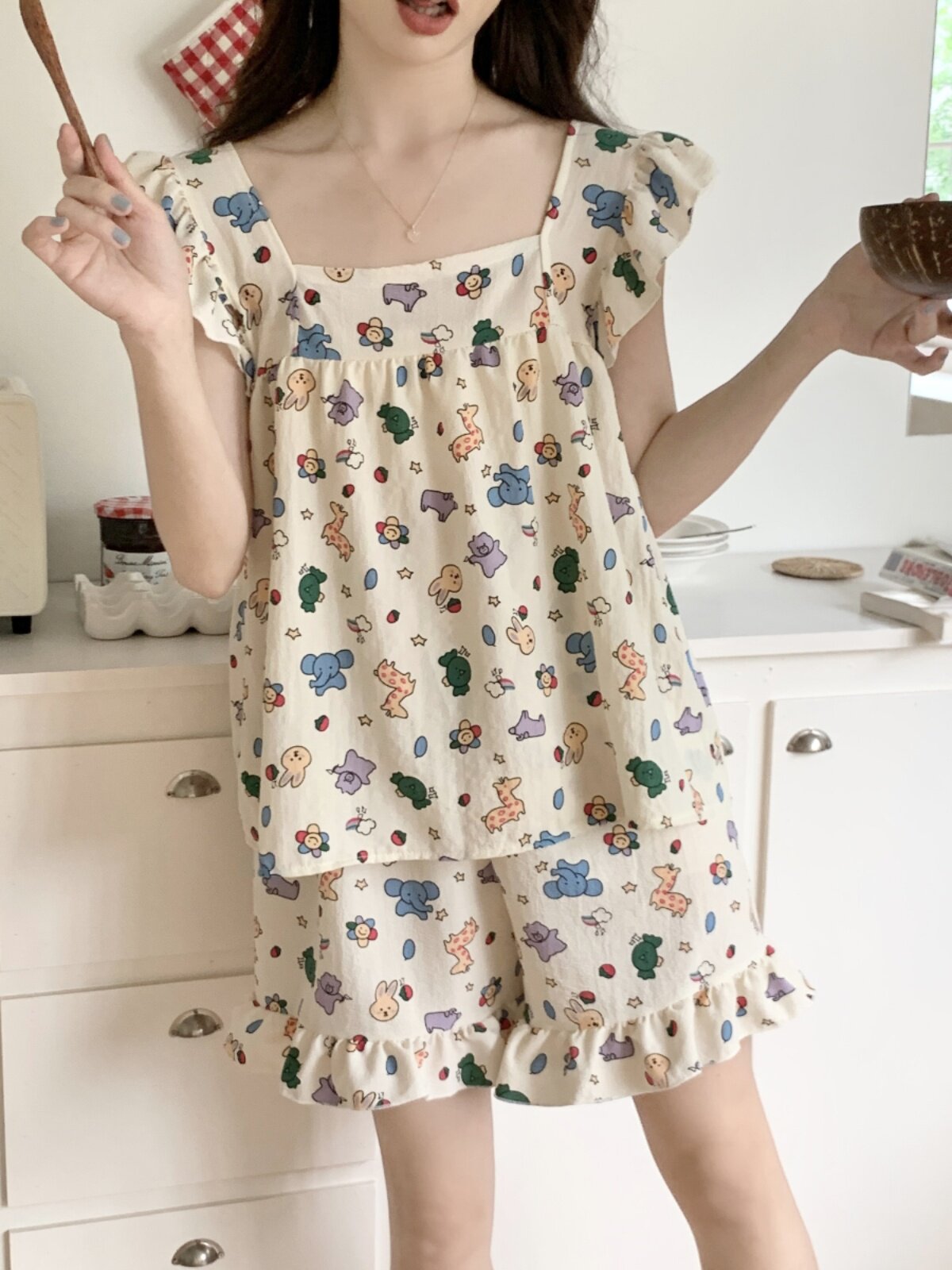 Жилет, шифоновая летняя пижама, милый комплект, короткий рукав, стиль