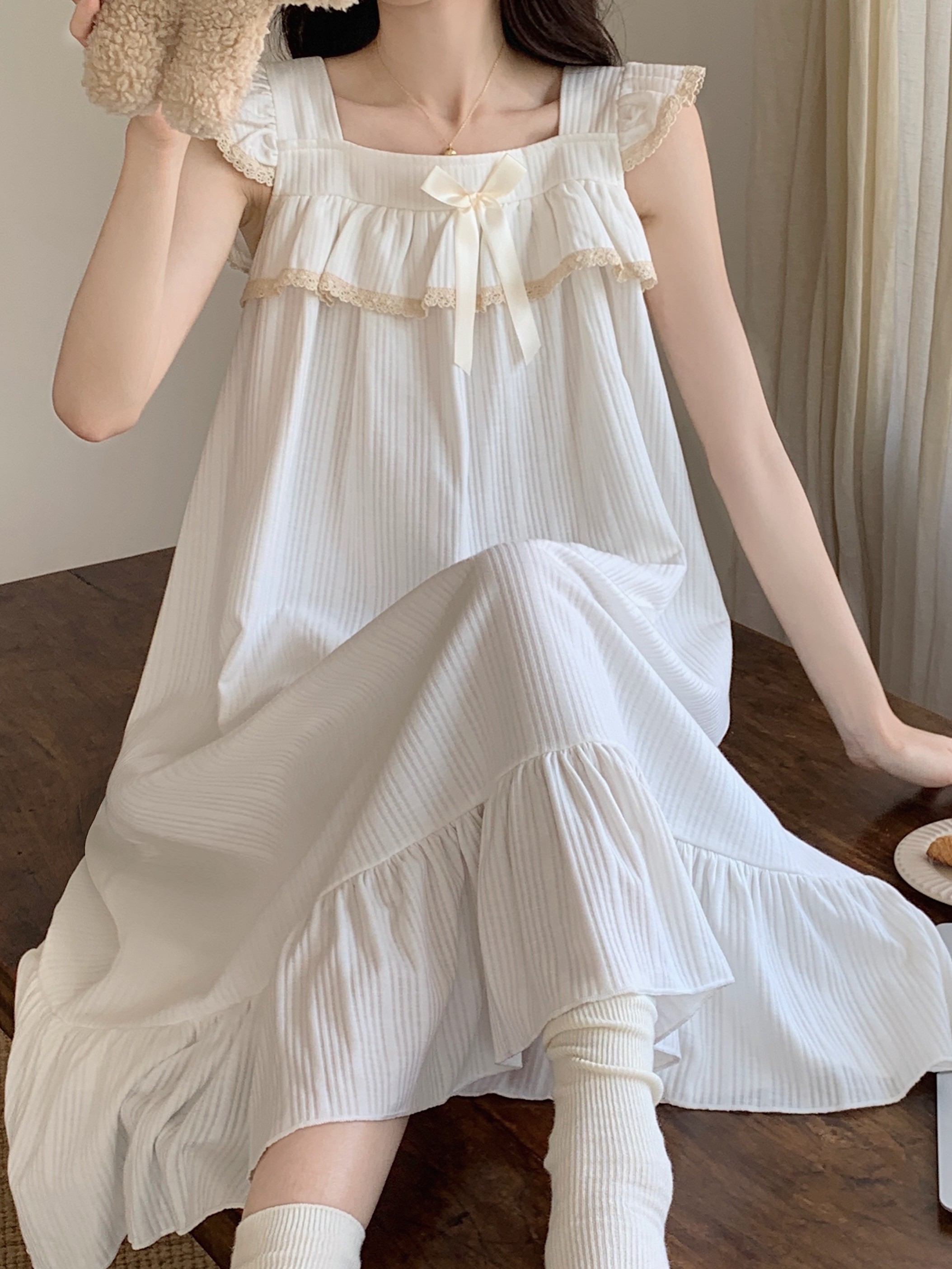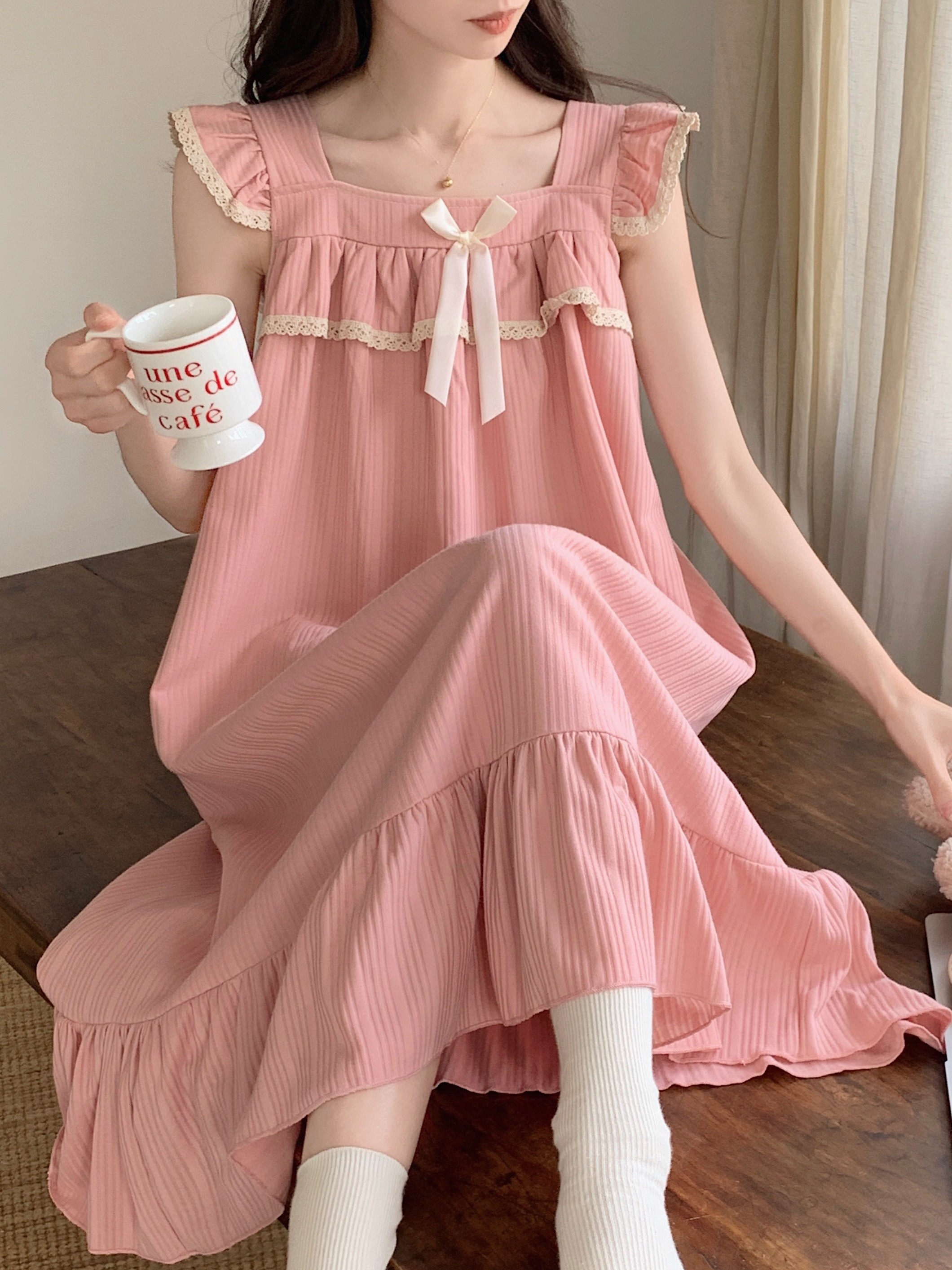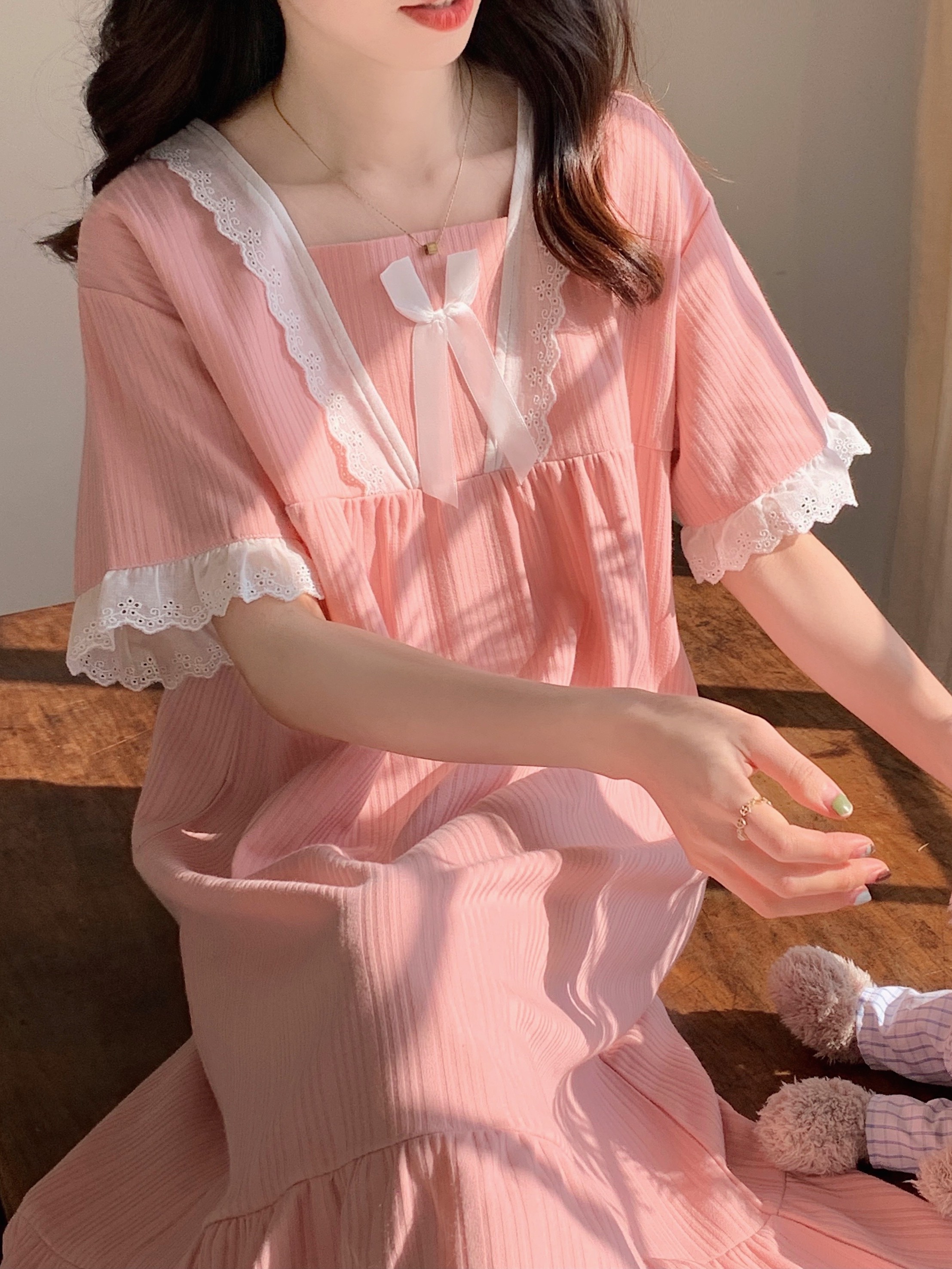 Топ с чашечками, пижама, хлопковая милая юбка, противоударное платье, эффект подтяжки, короткий рукав