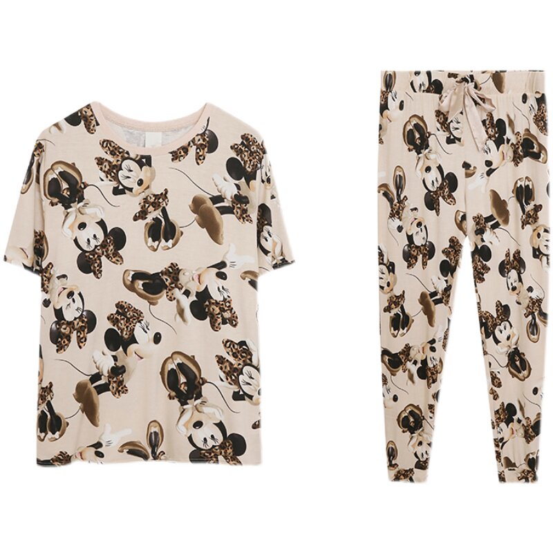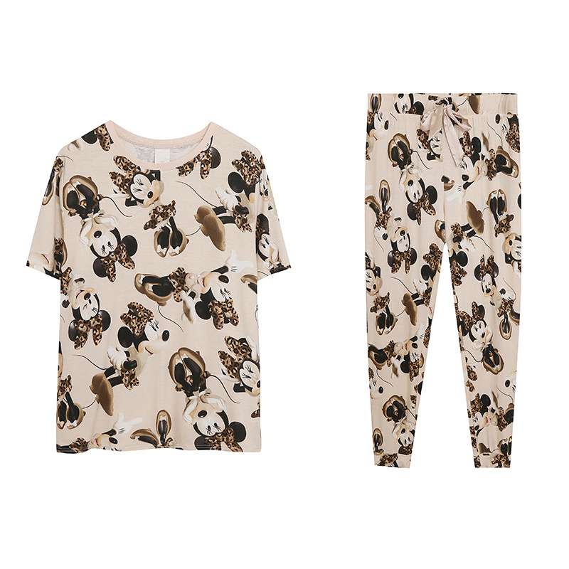 (Трансграничная торговля), милая мультяшная хлопковая футболка, комплект, пижама, короткий рукав, свободный крой